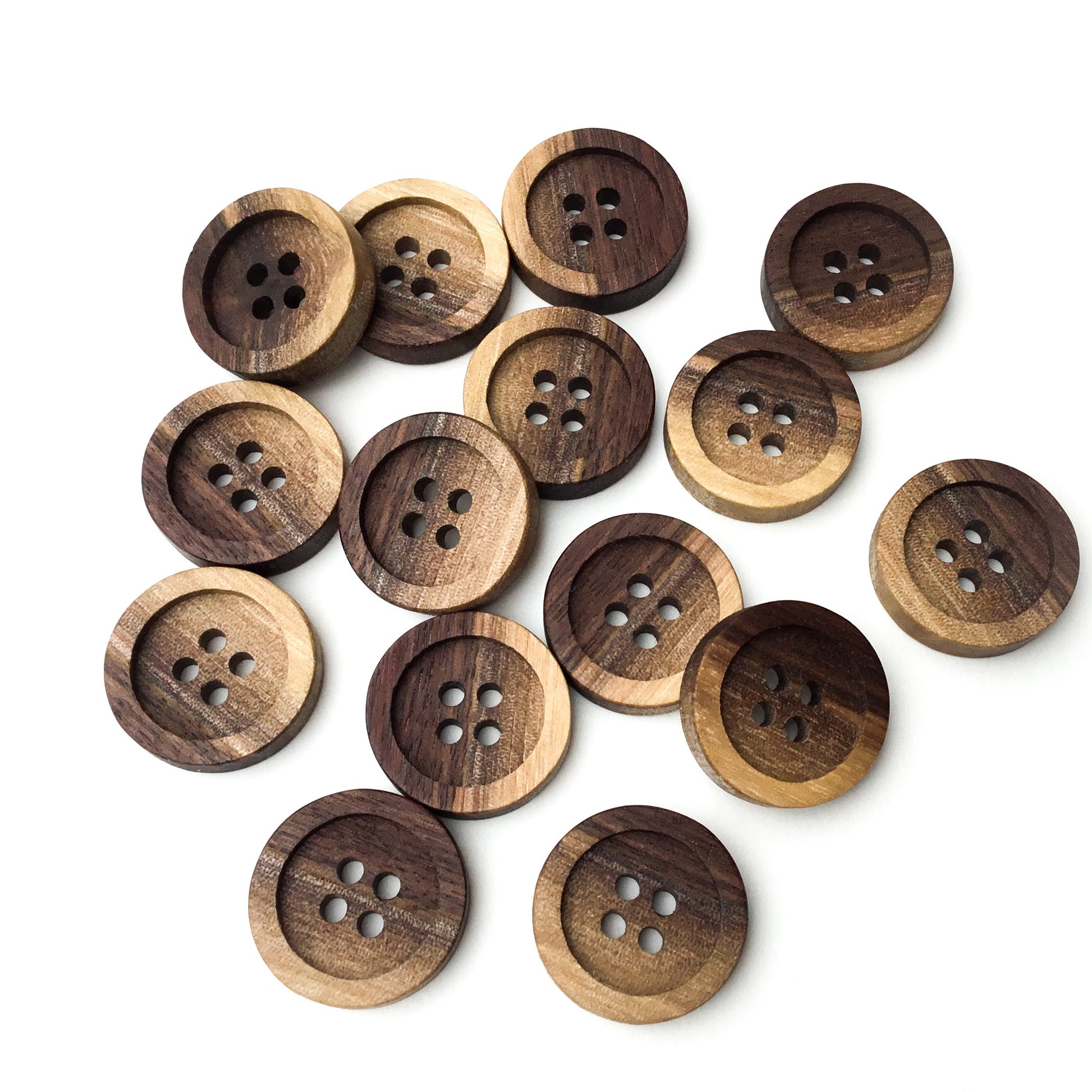 Four Hole Inset Button - Two-toned Black Walnut Wood - 4 sizes