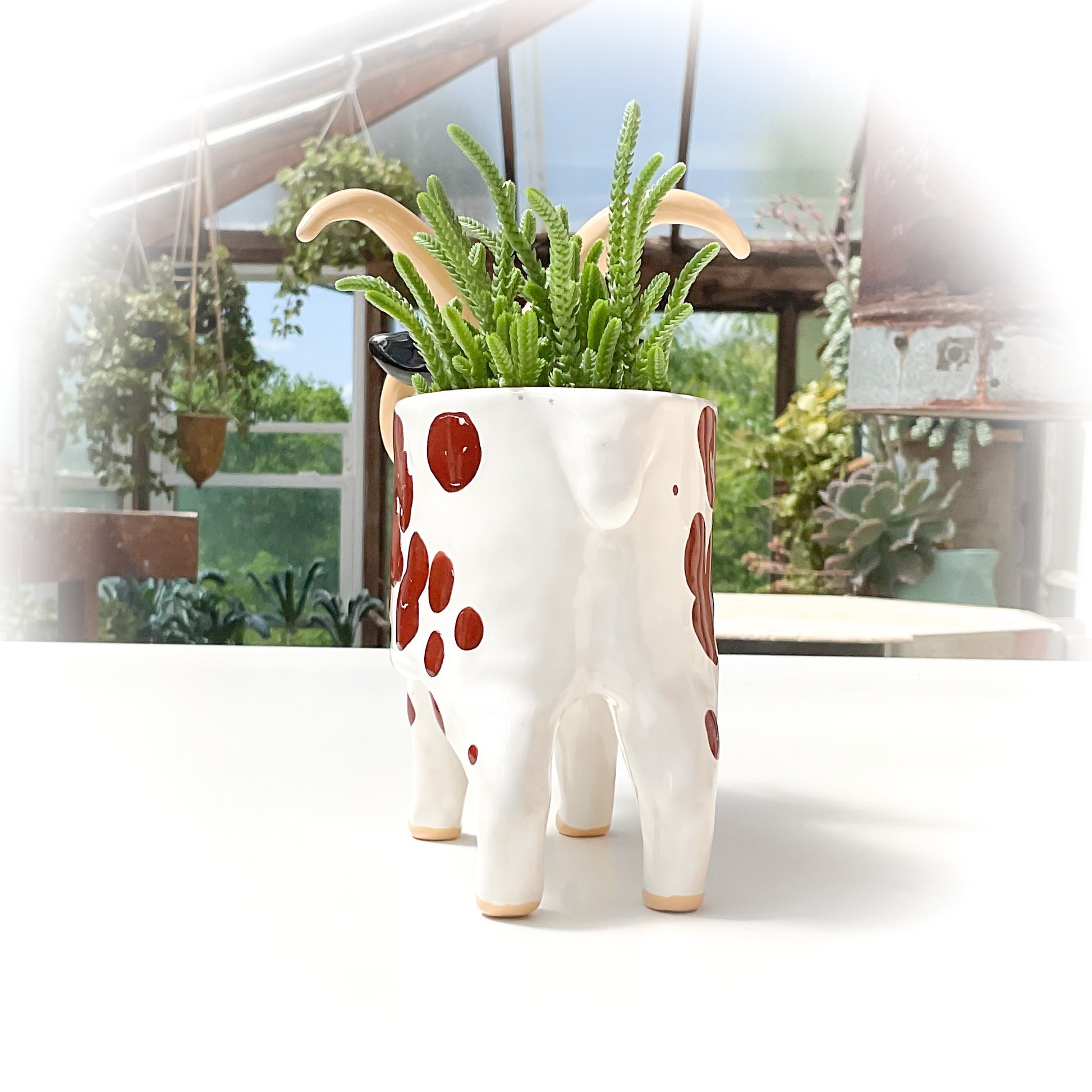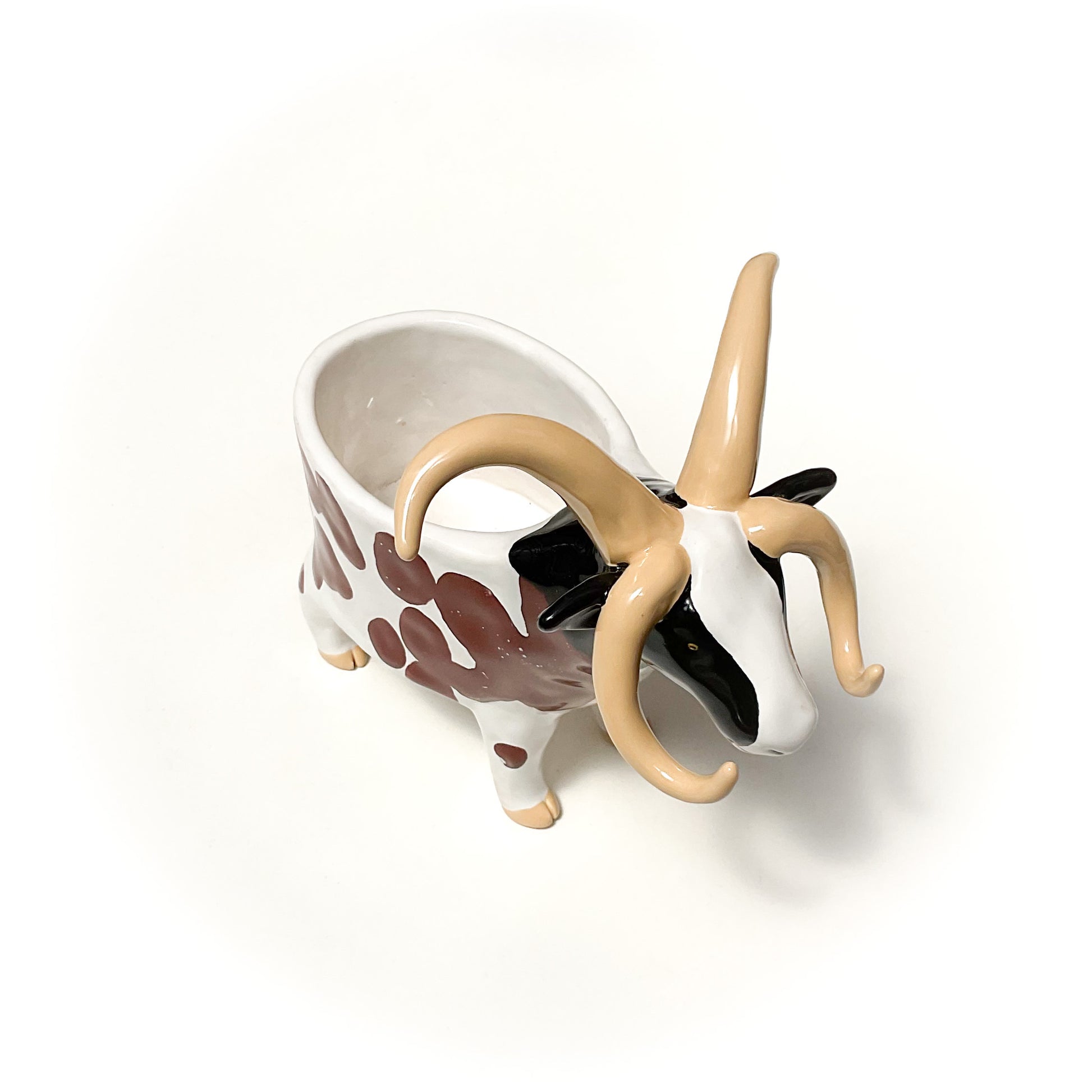 A ceramic Jacob sheep planter to pot up your favorite succulent or use as a small dish.