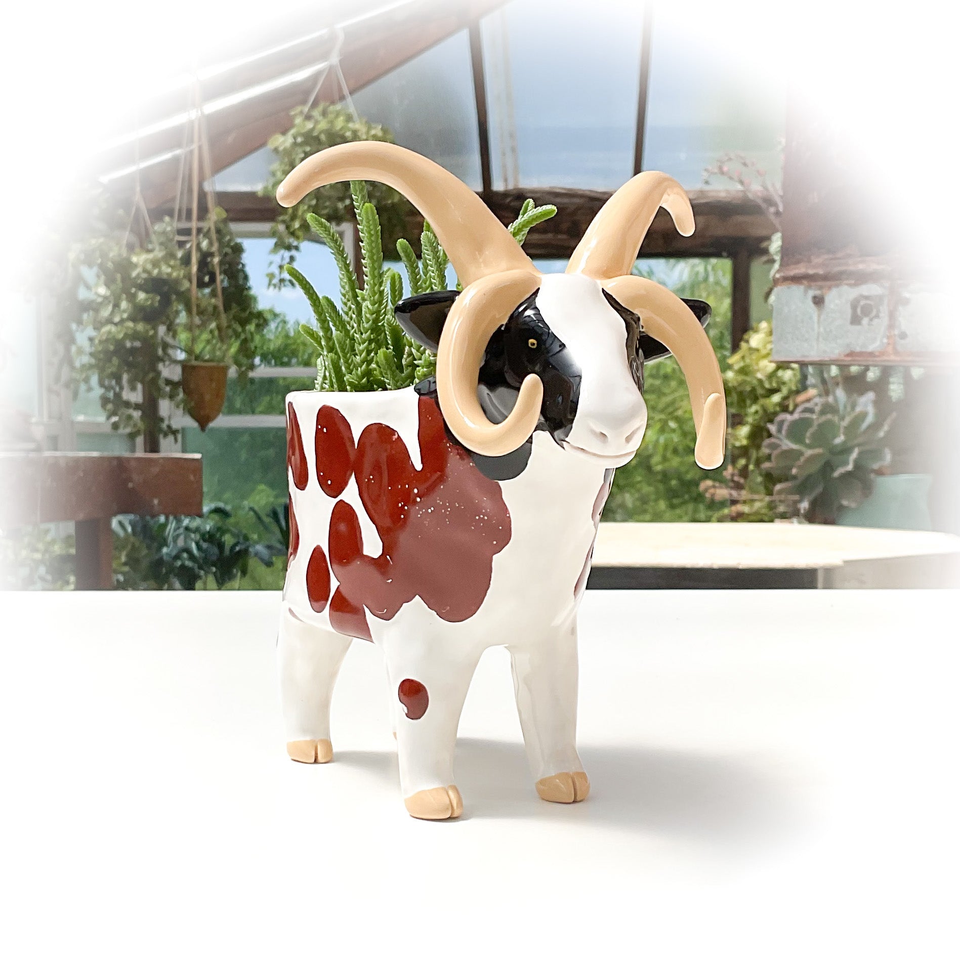 Four-Horned Jacob Sheep Pot - Ceramic Sheep Planter