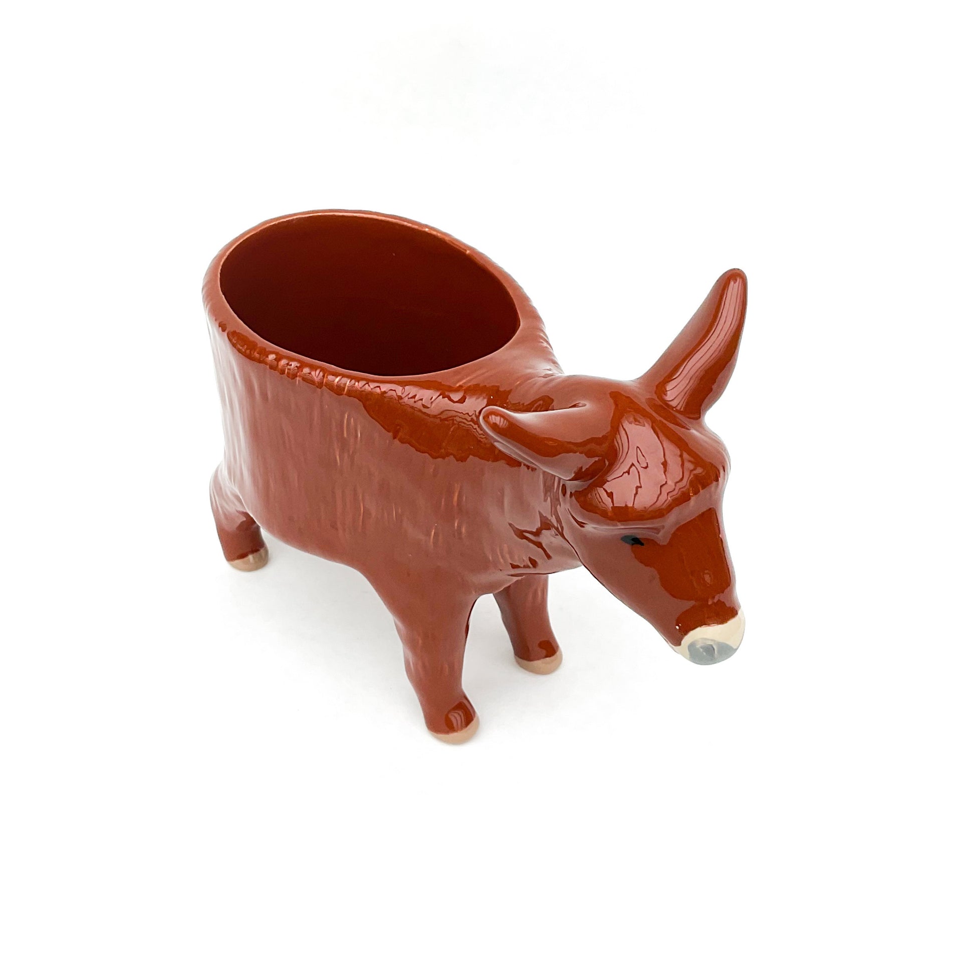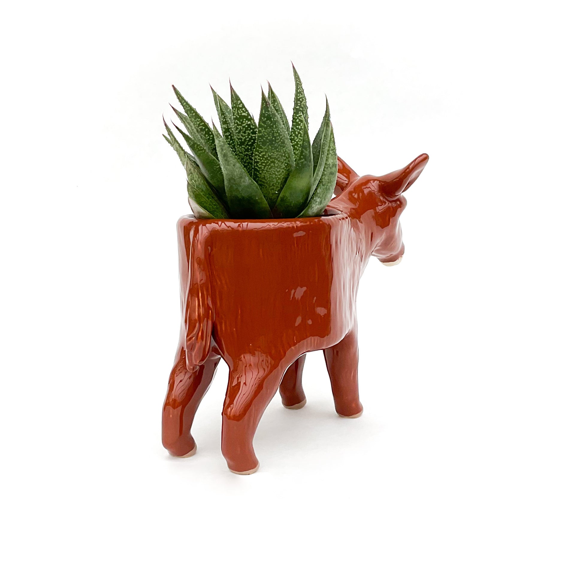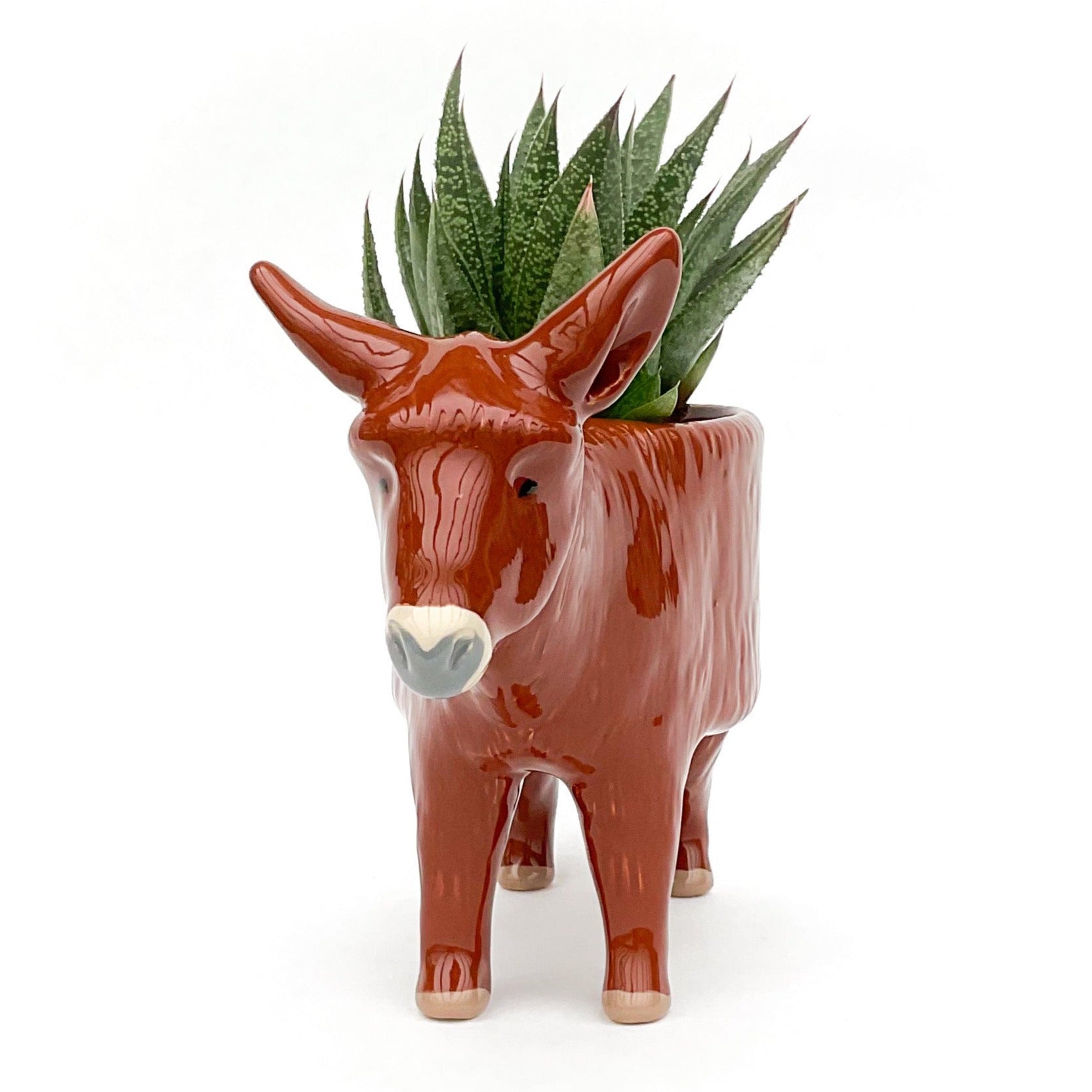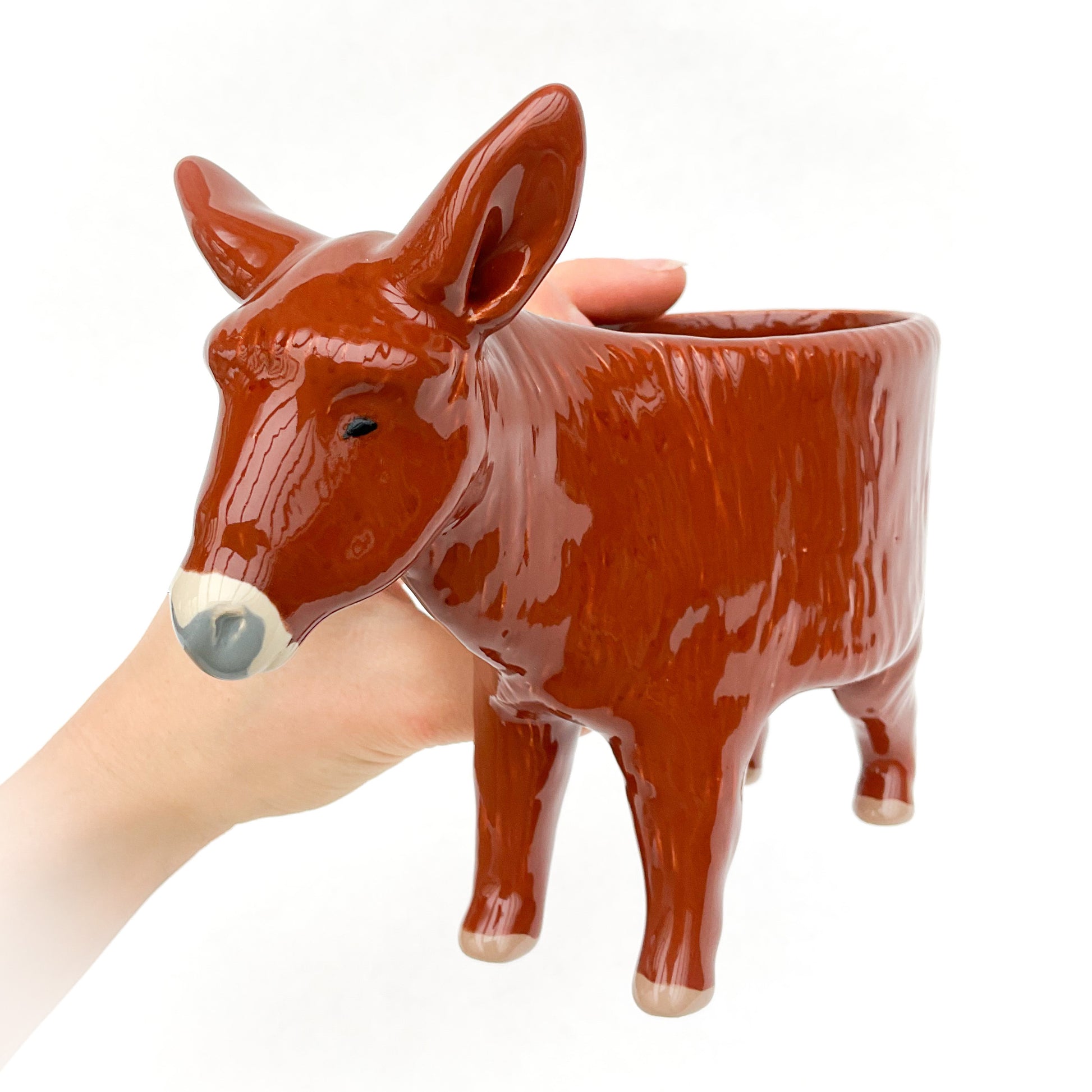 A sweet ceramic Poitou donkey planter to pot up your favorite plant. Learn more about this endangered donkey breed here.