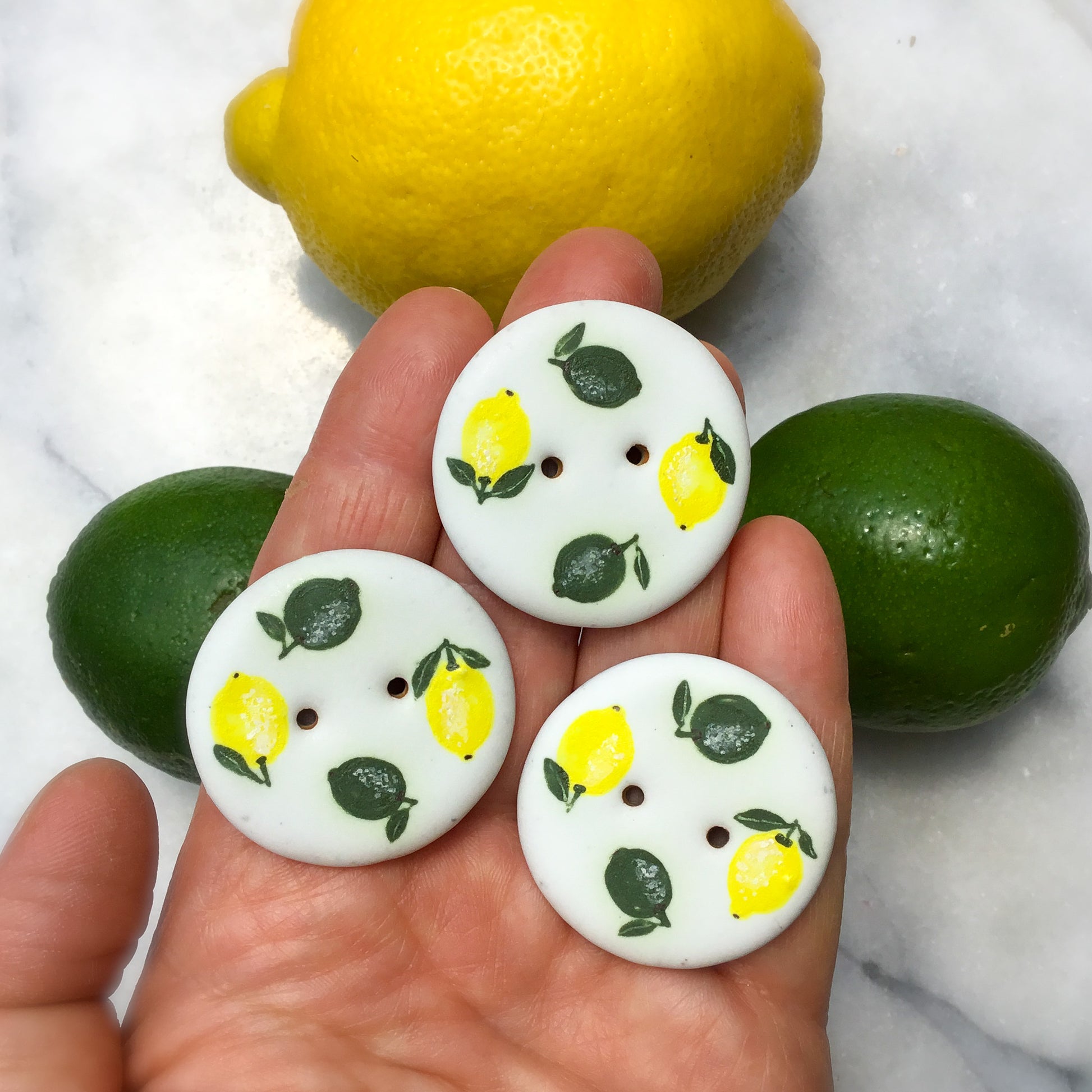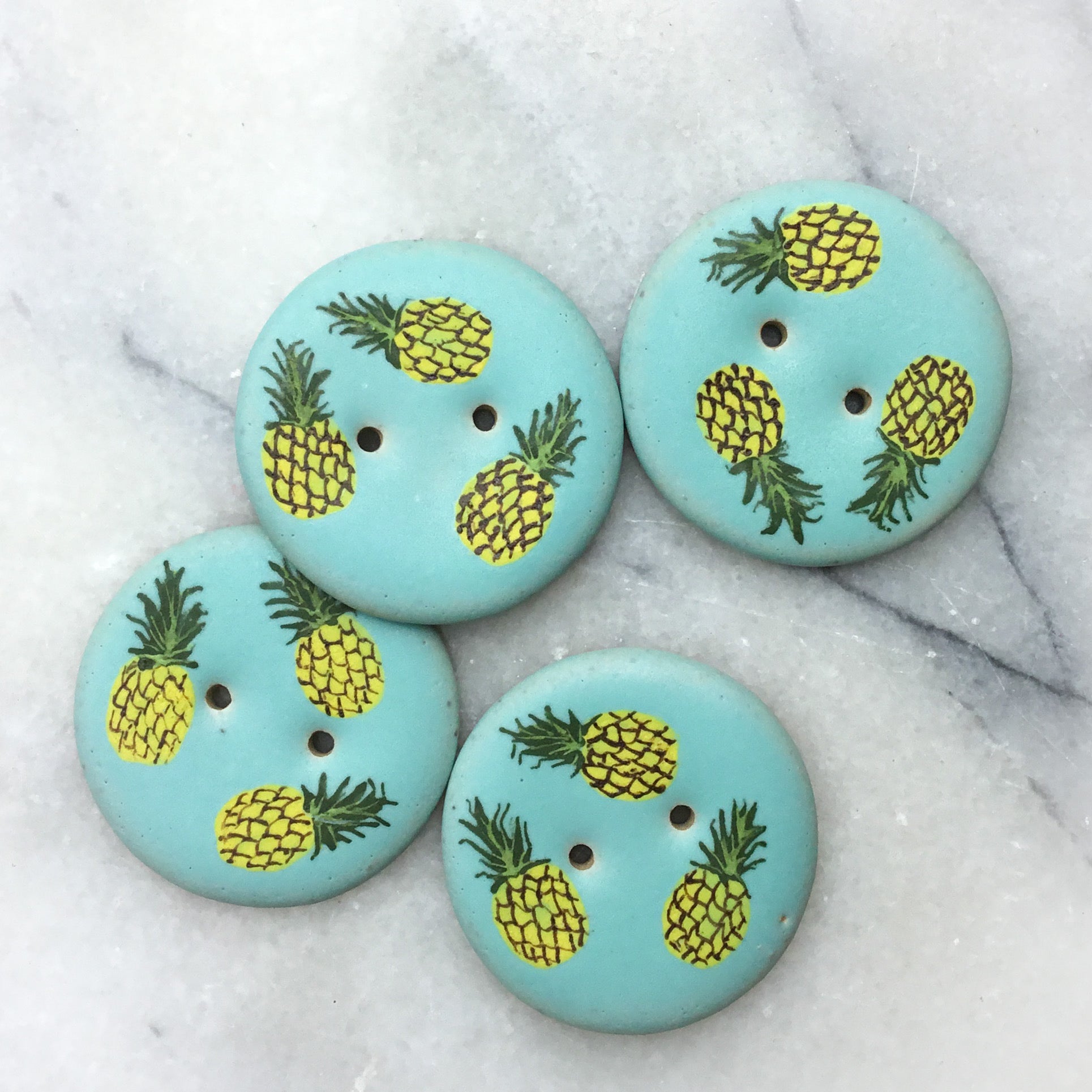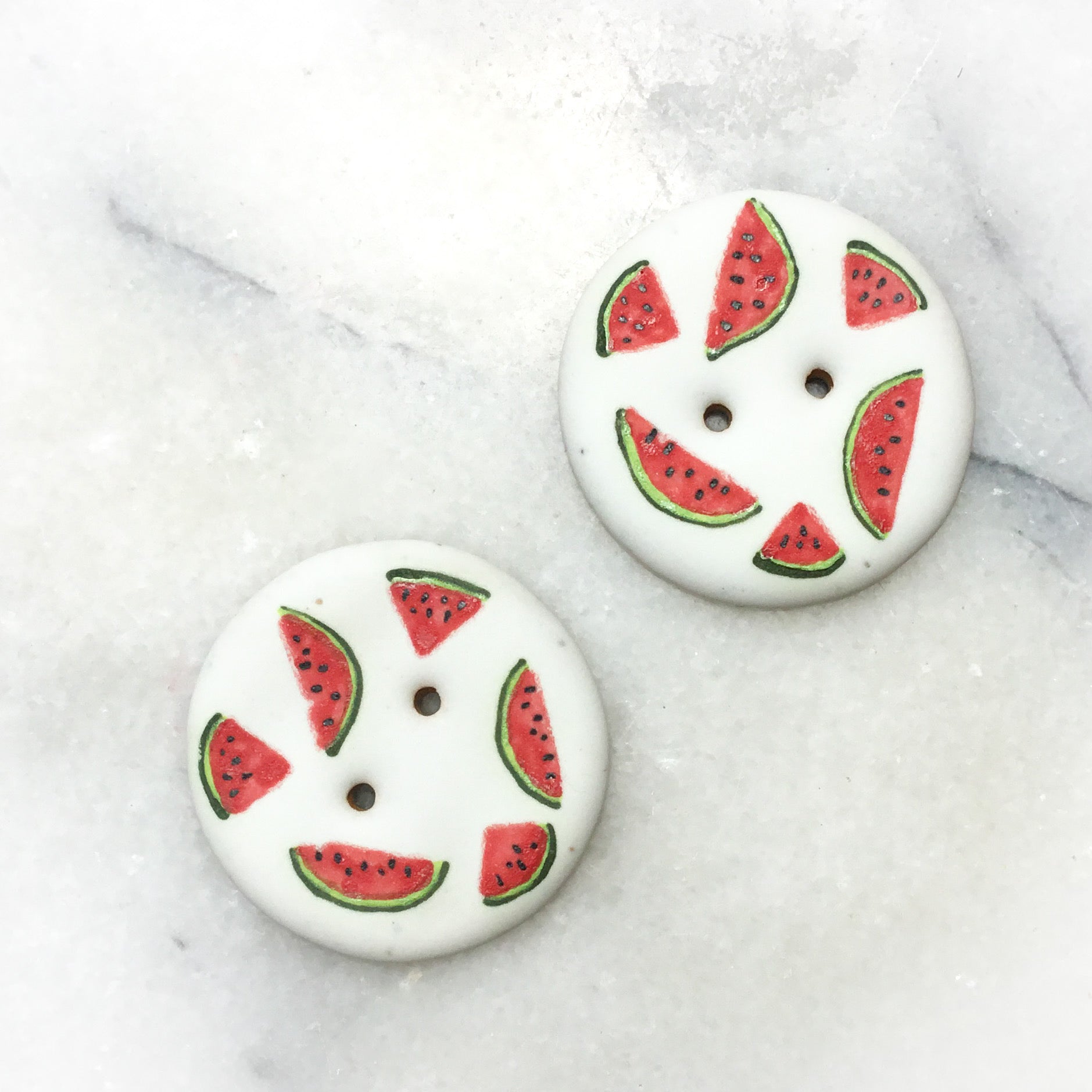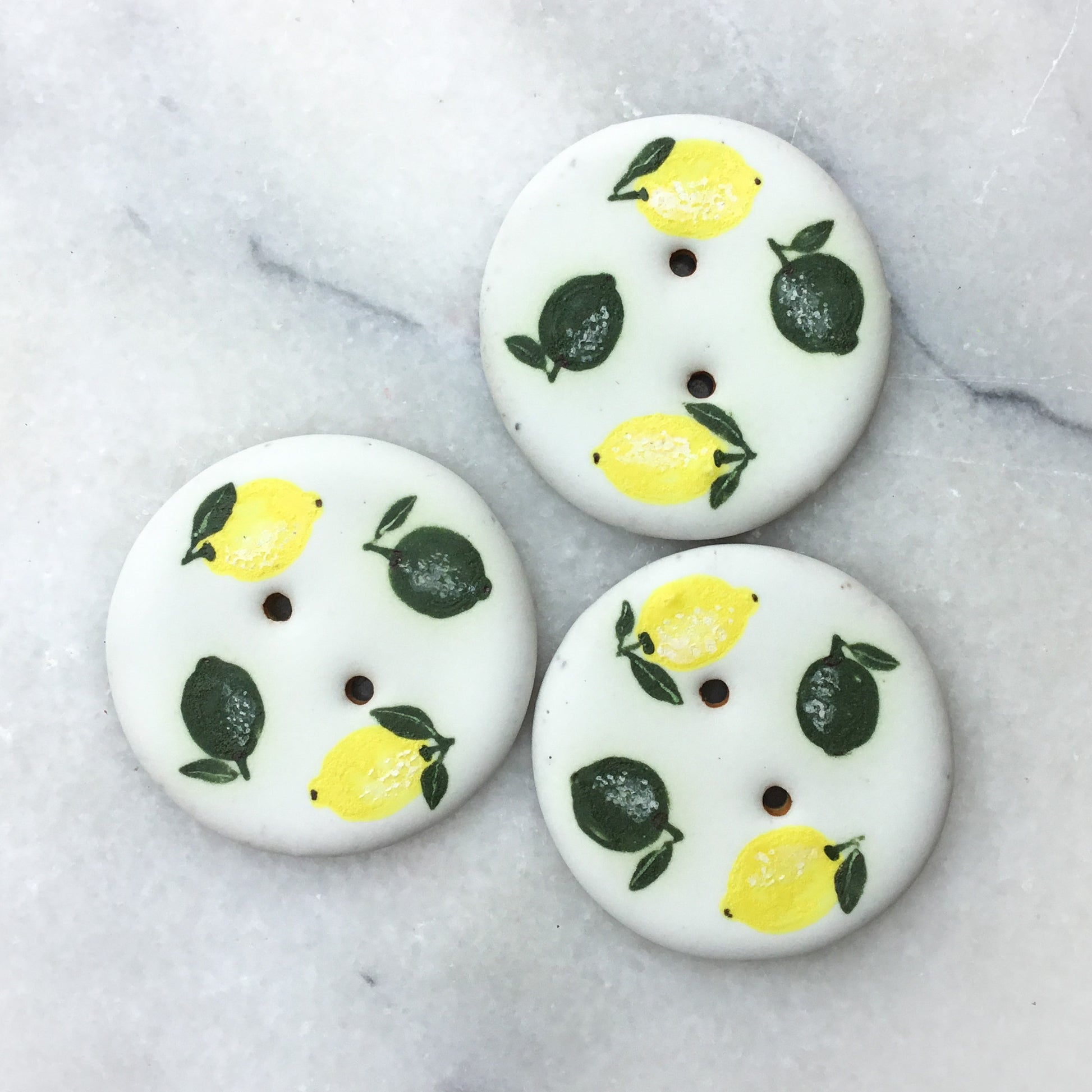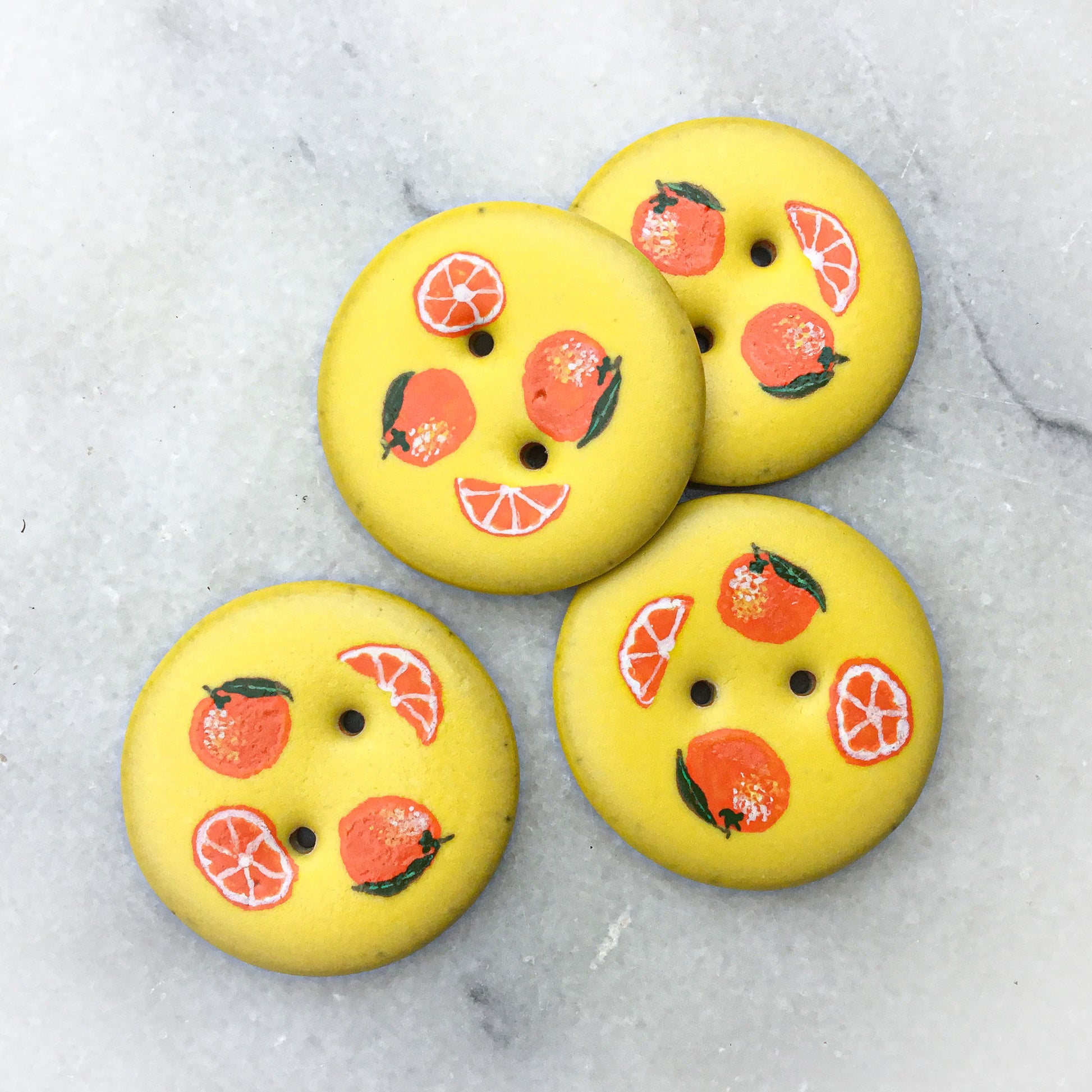 Each button and/or set is individually painted and one-of-a-kind. We sand all non-glazed edges for a smooth, snag-free surface.