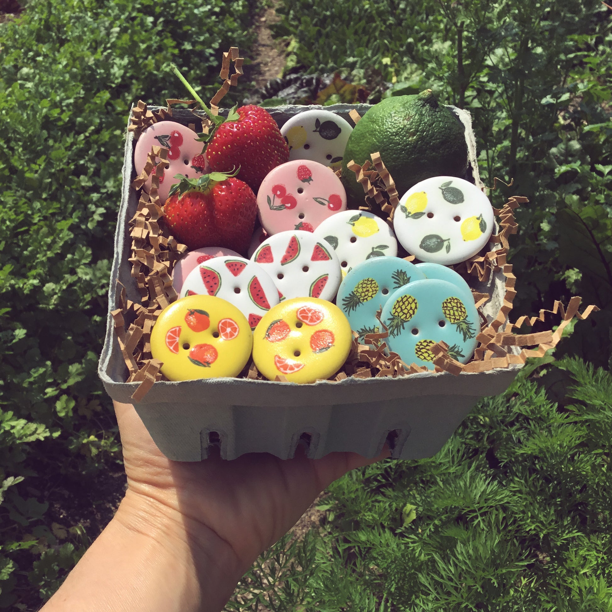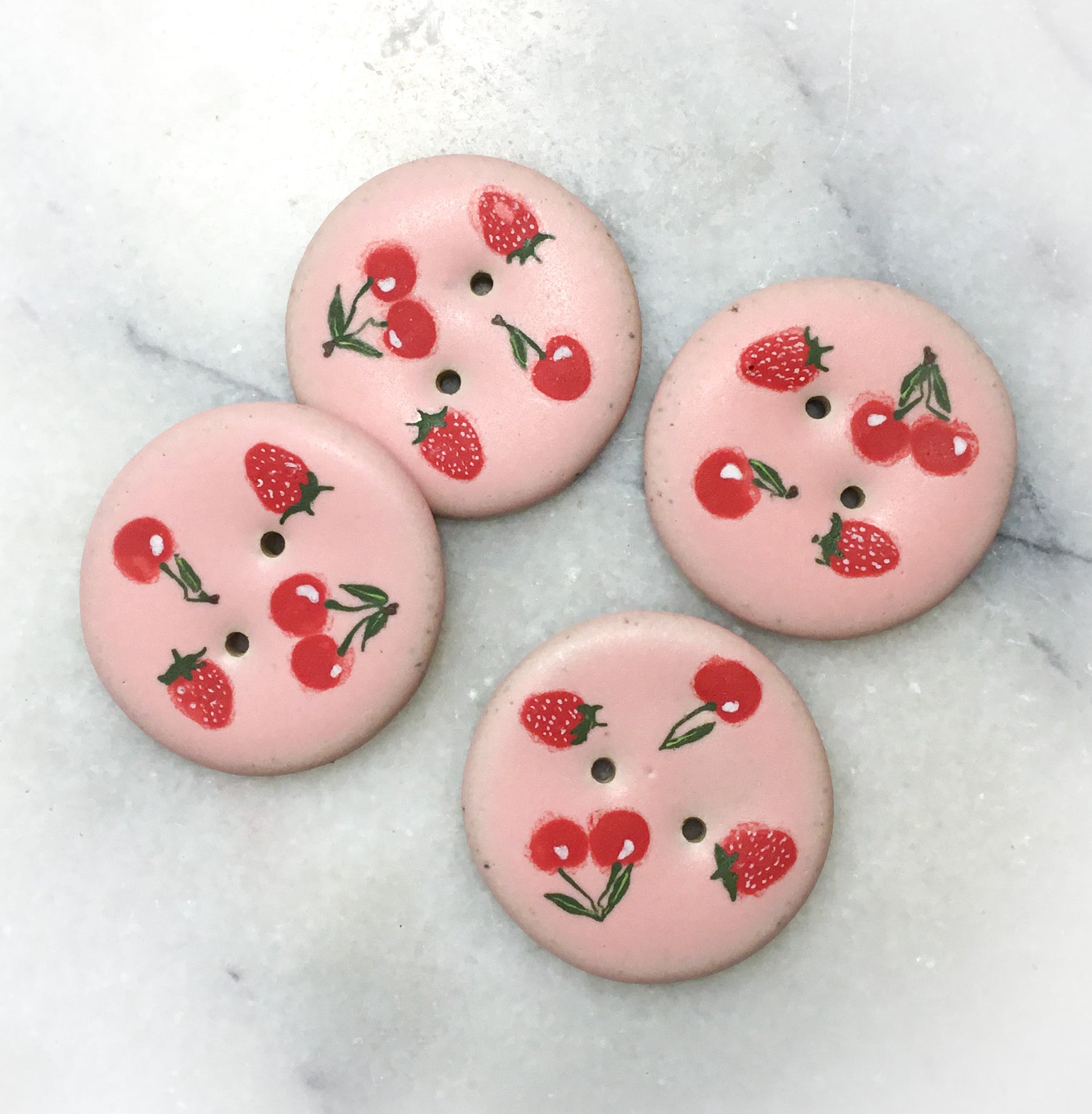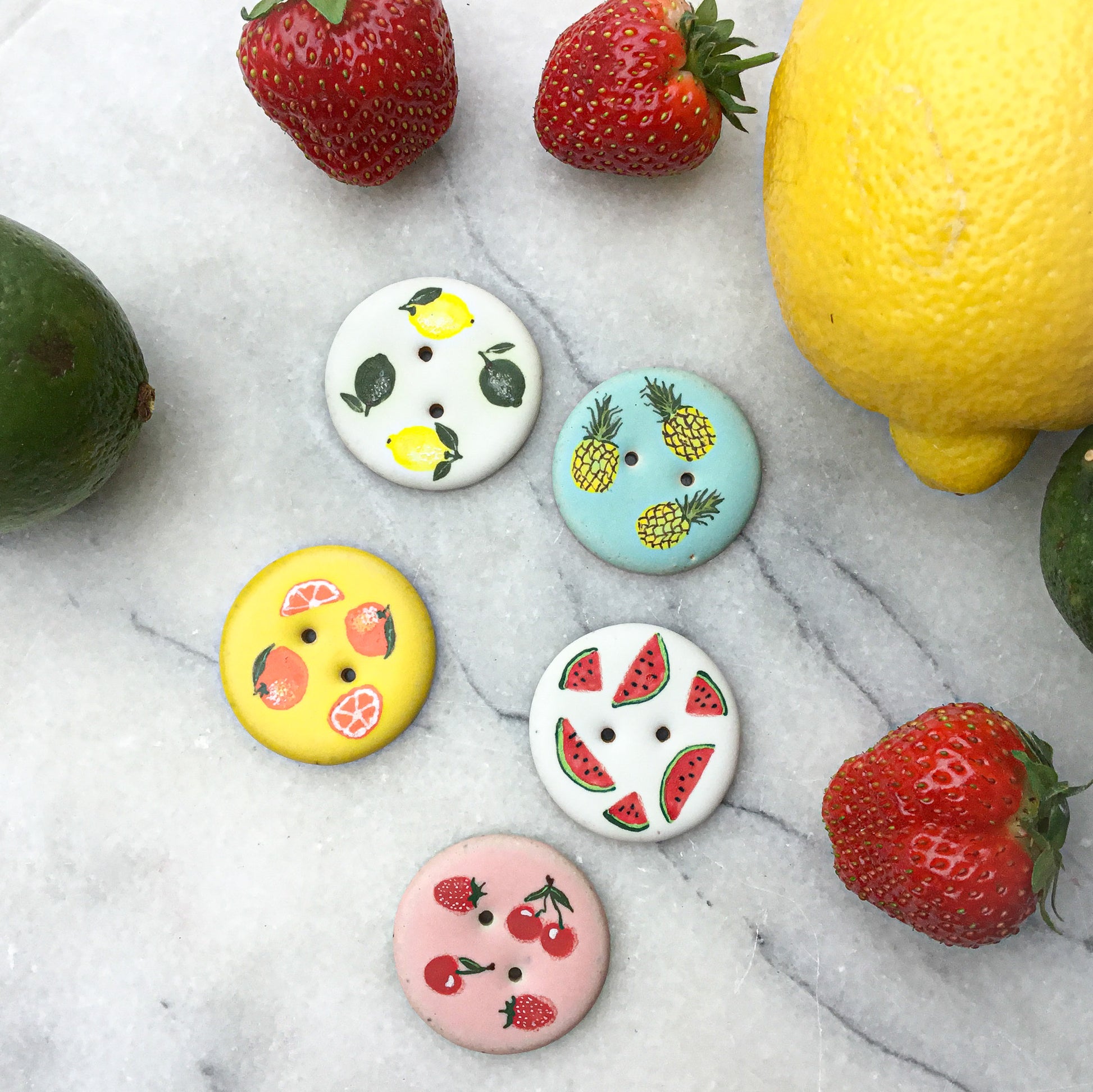 ‘Fruit Salad’ Stoneware Fruit Buttons 1-3/8”