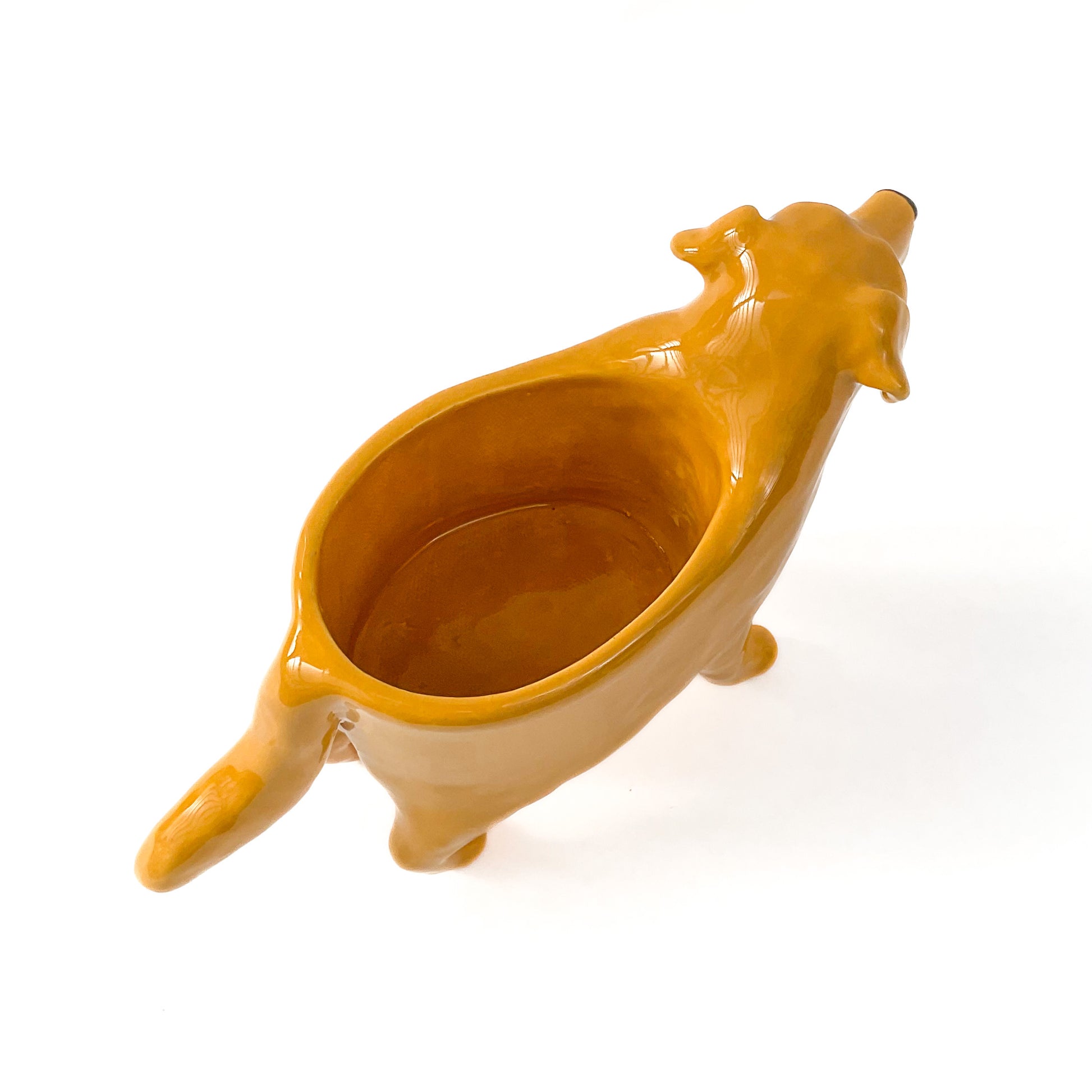 A ceramic Labrador dog planter to pot up your favorite plant. This dog pot would also make a sweet candy or keepsake bowl.