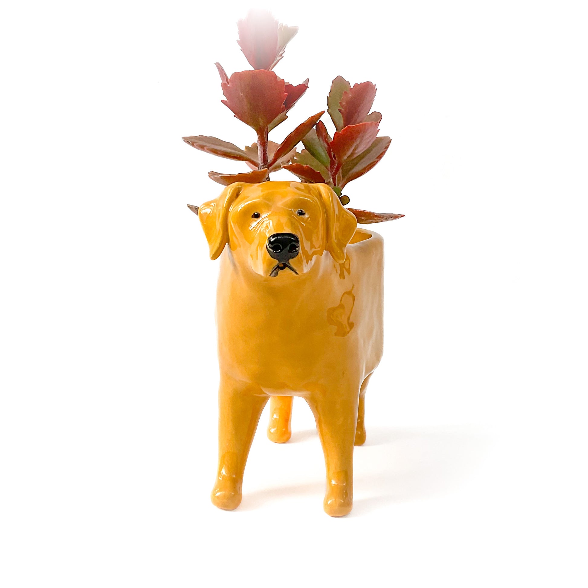 Golden Lab Dog Planter - Ceramic Dog Plant Pot