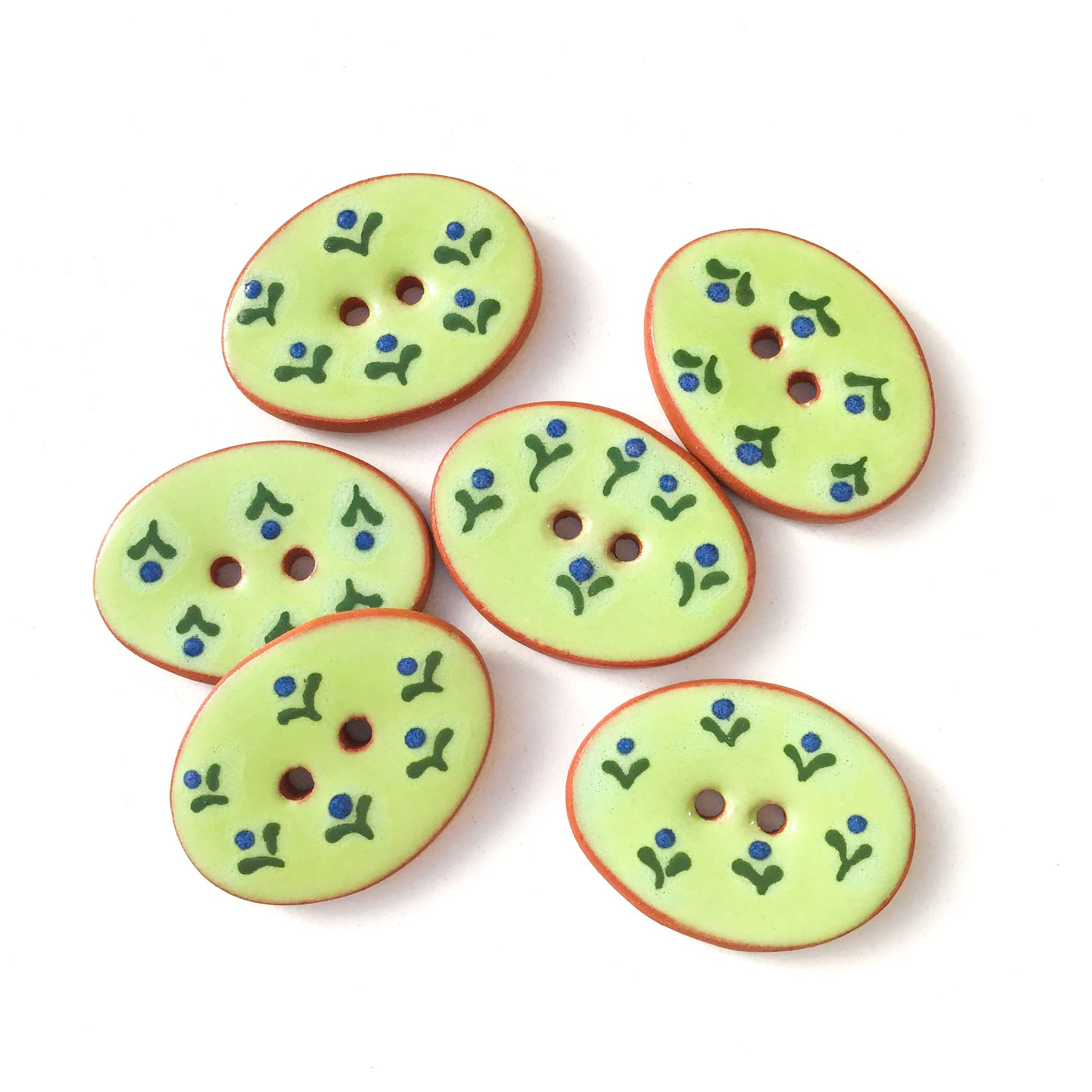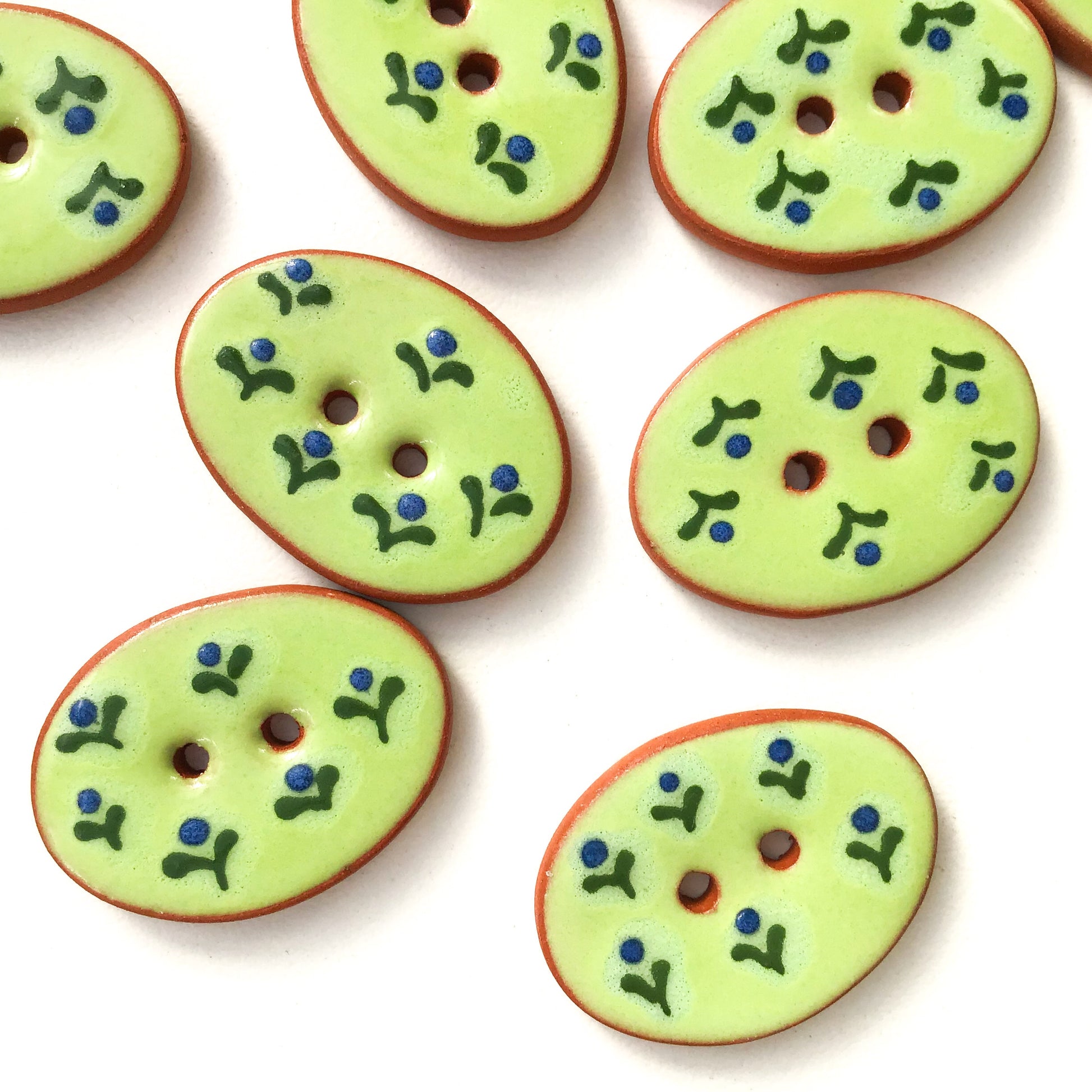These ceramic buttons are fresh and fun with their light green background and small blue floral print. They'd make a beautiful addition to your handwork!