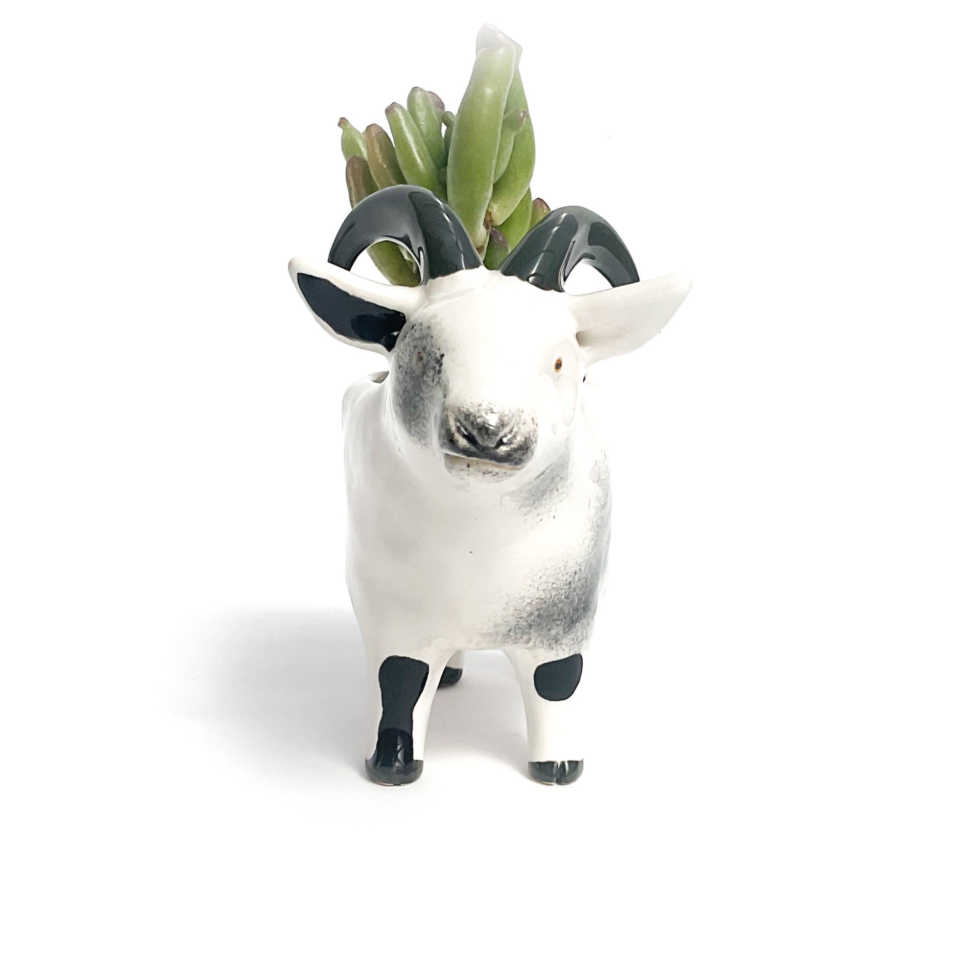 A little ceramic pygmy goat planter to pot up your favorite succulent.
