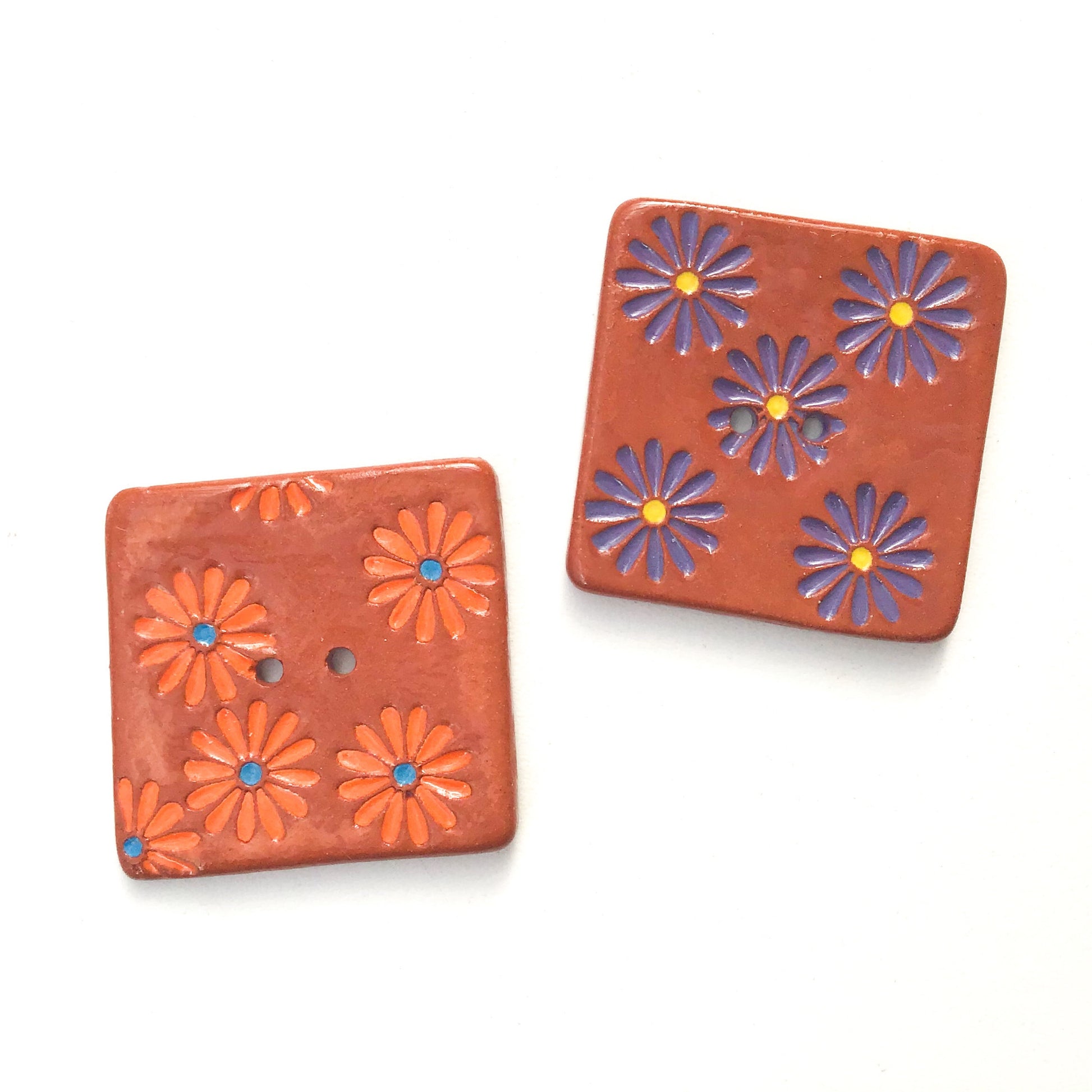 Each button and/or set is individually painted and one-of-a-kind. We sand all non-glazed edges for a smooth, snag-free surface.