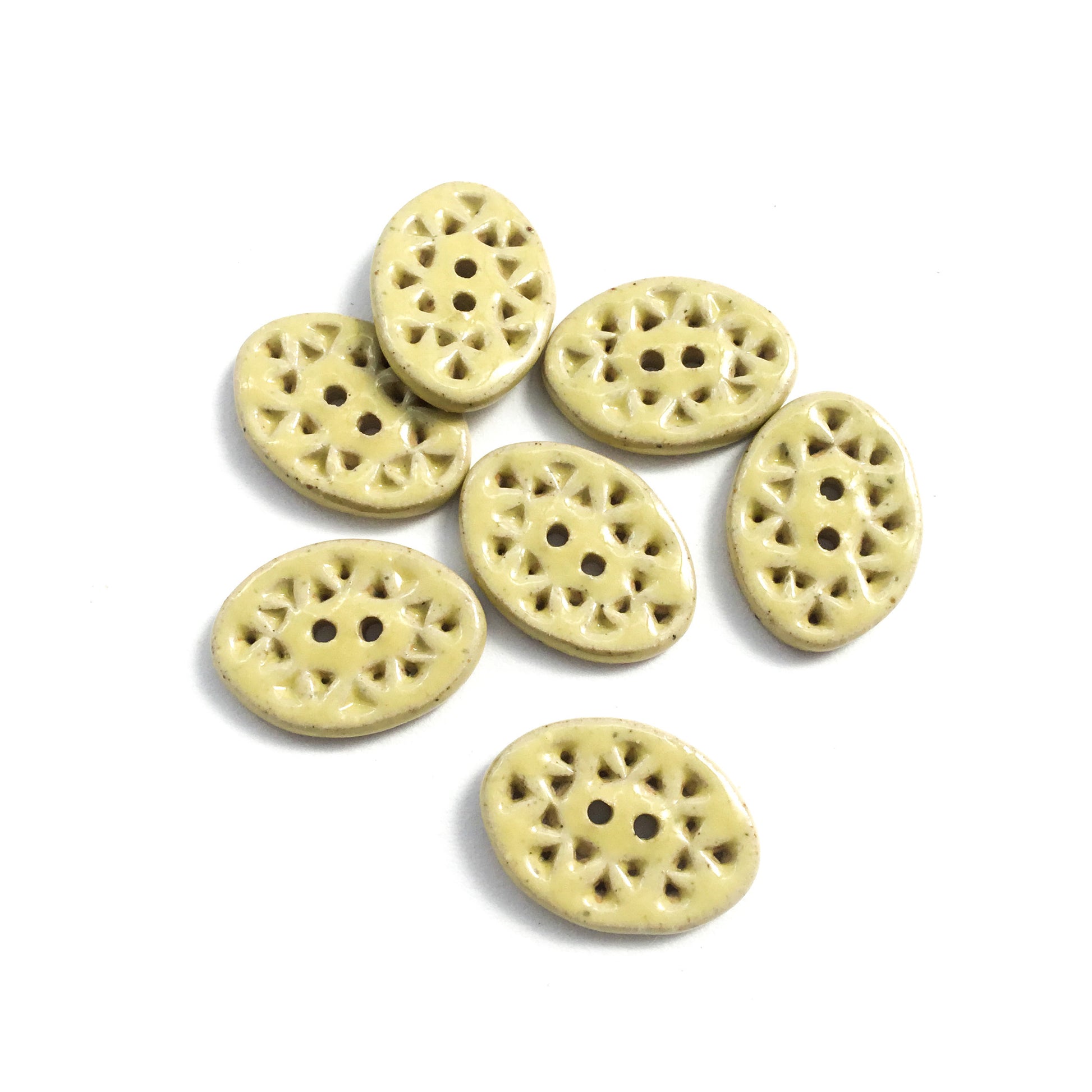 Hand Stamped Light Yellow Stoneware Buttons 5/8" x 7/8" - 7 Pack