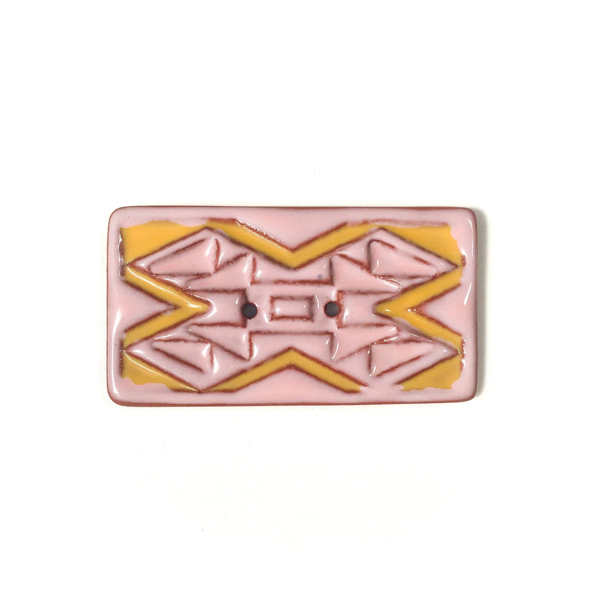Hand Stamped Quilt Block Button - Extra Large Art Button - 1 3/16" x 2 1/4"