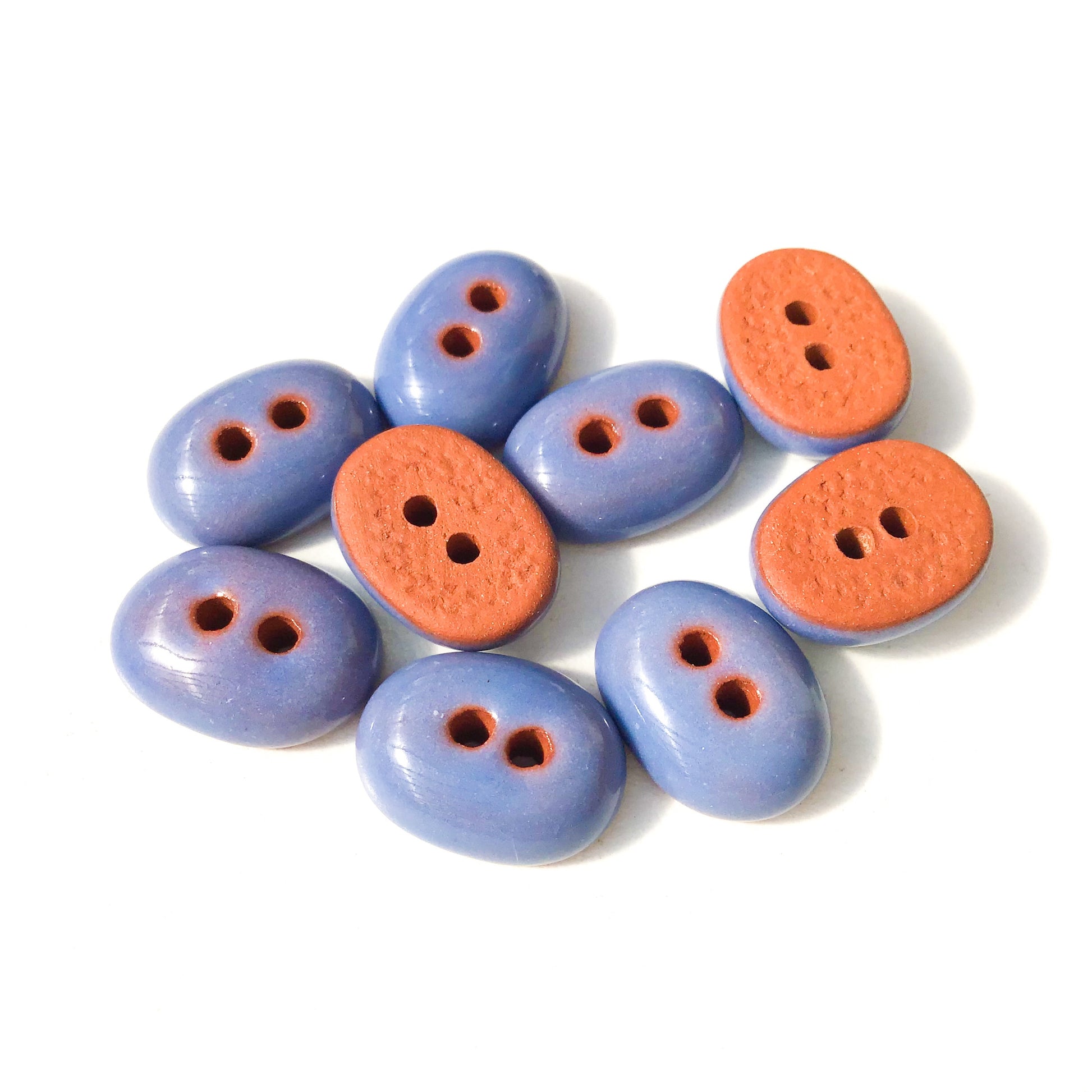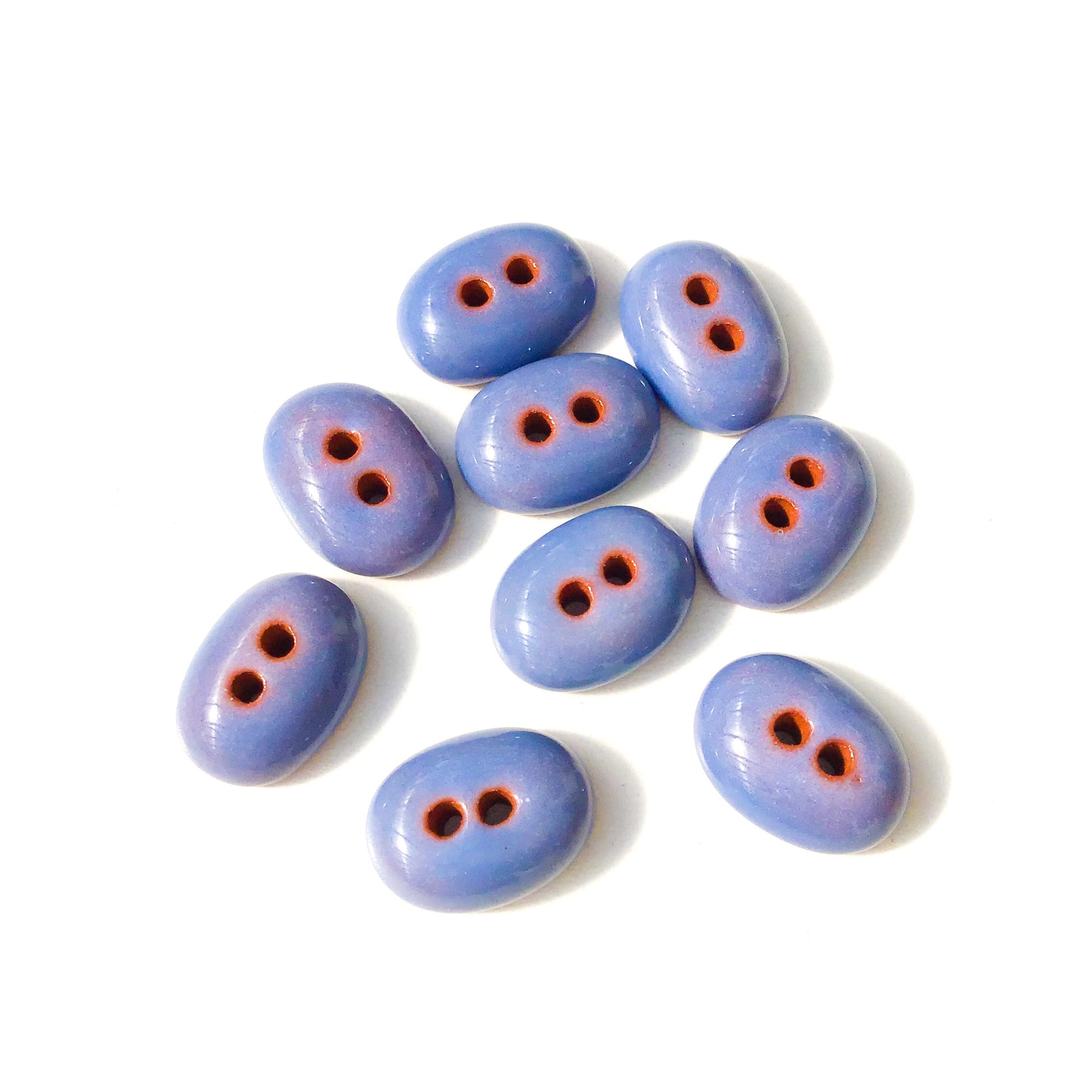 These oval ceramic buttons have a lovely shade of purple colored glaze. The underlying red clay body adds extra depth and richness to the button while the rounded edges give them an attractive 'pillowed' appearance. They'll add a beautiful touch to your handwork!