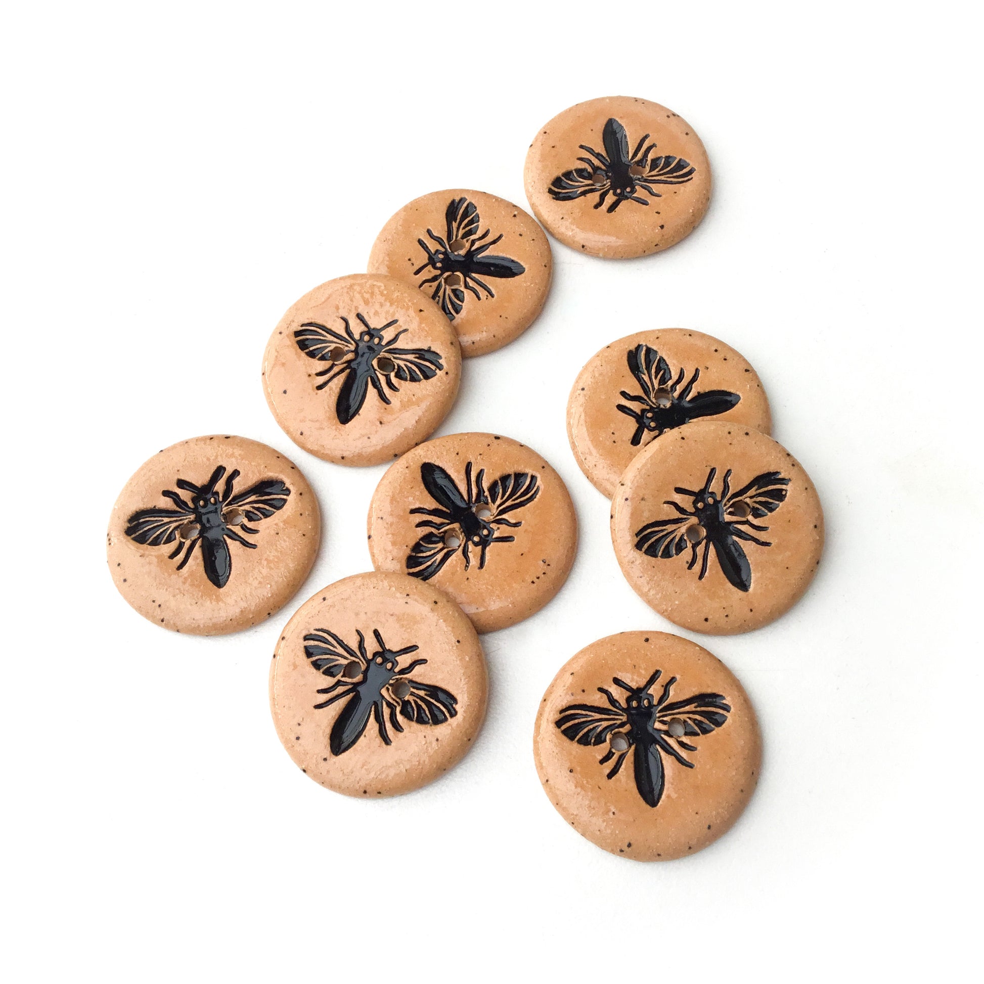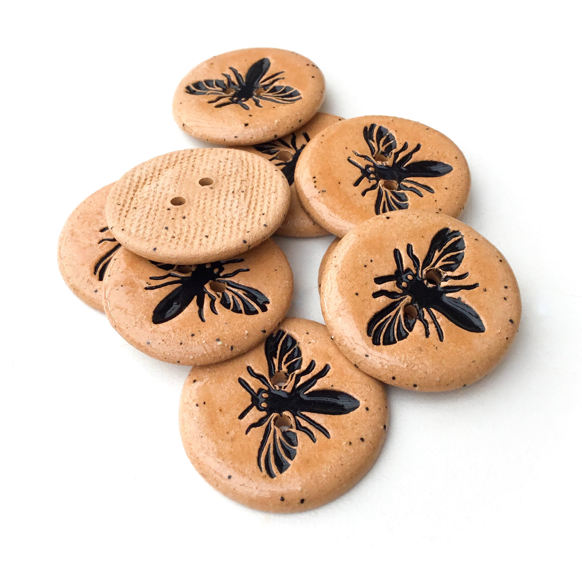 These honeybee buttons on brown clay with black flecks will add a sweet and natural touch to your project!