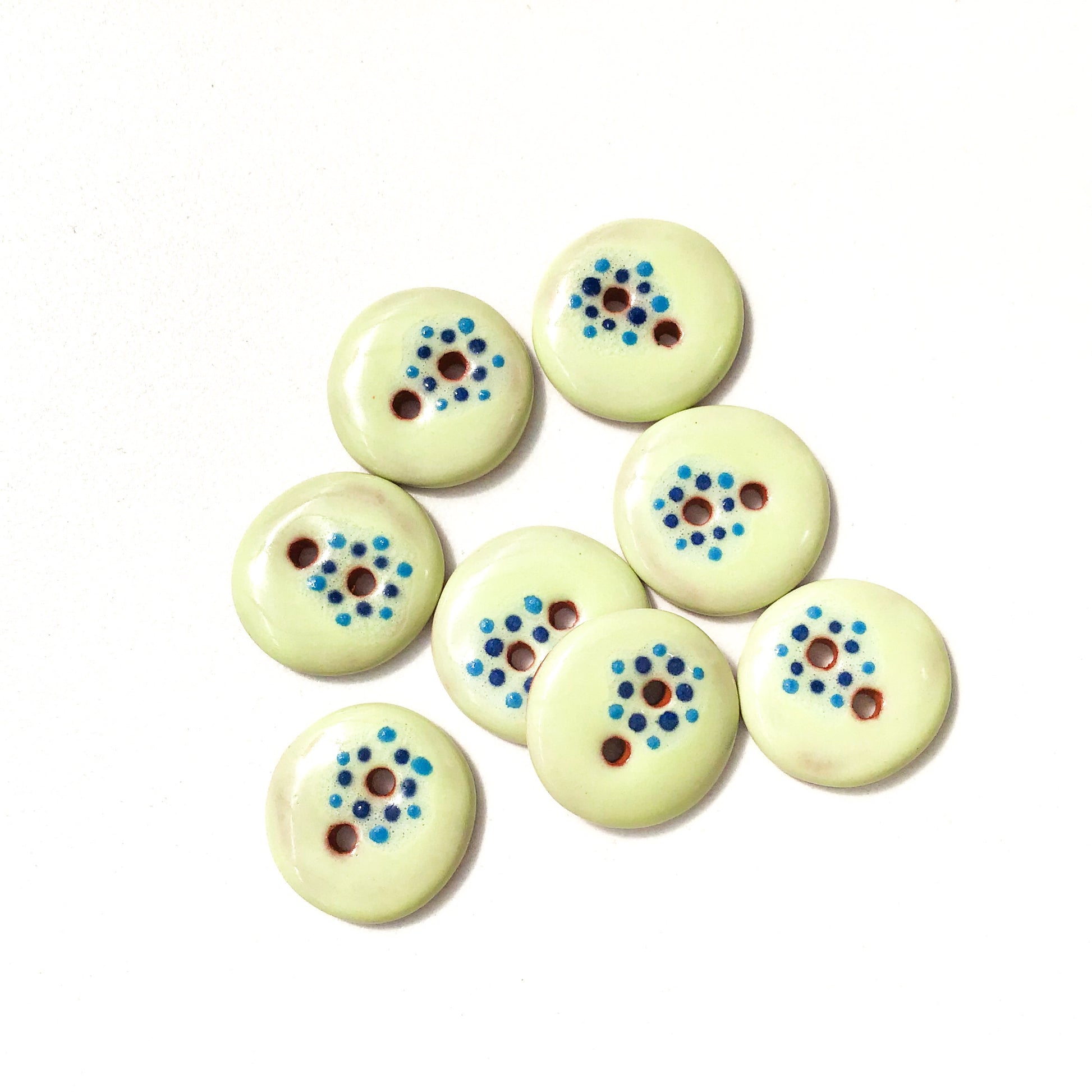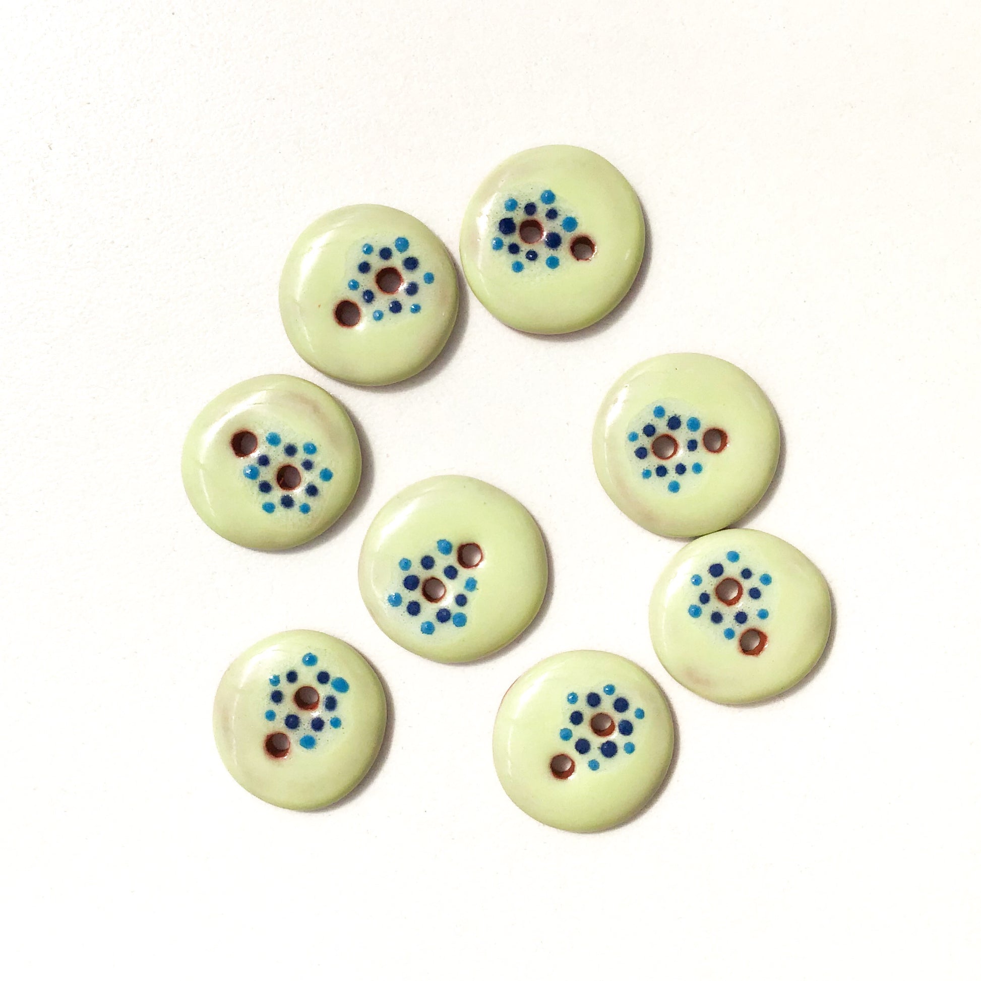 Honeydew "Spark" Ceramic Buttons - Yellow / Green Clay Buttons - 5/8" - 8 Pack