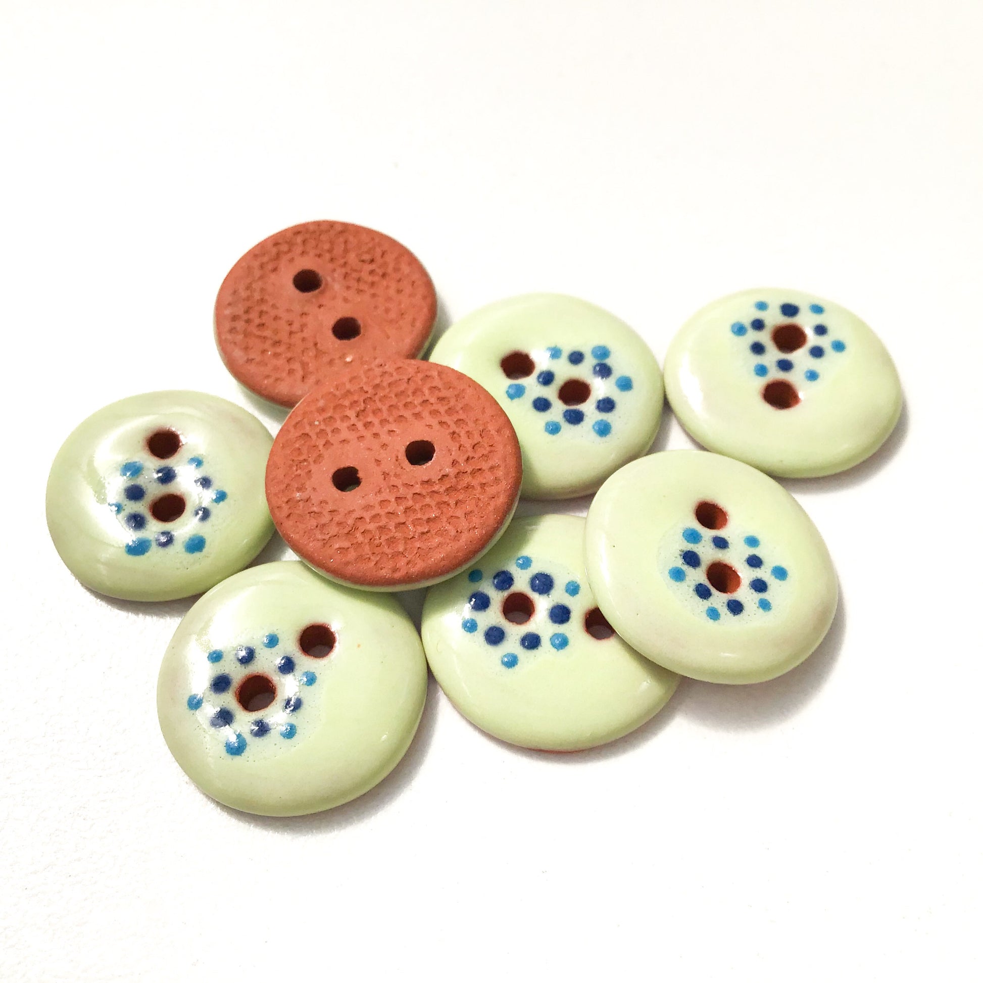 Each button and/or set is individually painted and one-of-a-kind. We sand all non-glazed edges for a smooth, snag-free surface.