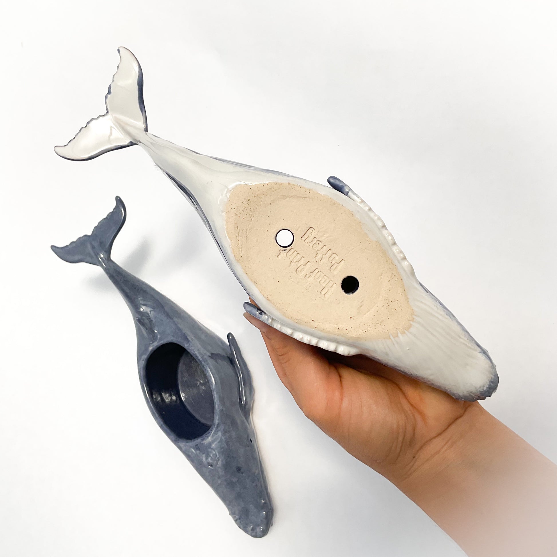 These beautiful humpback whale planters are great for potting up your favorite plant. They also make for a fun coffee table bowl to hold salt water taffy or a pillar candle.