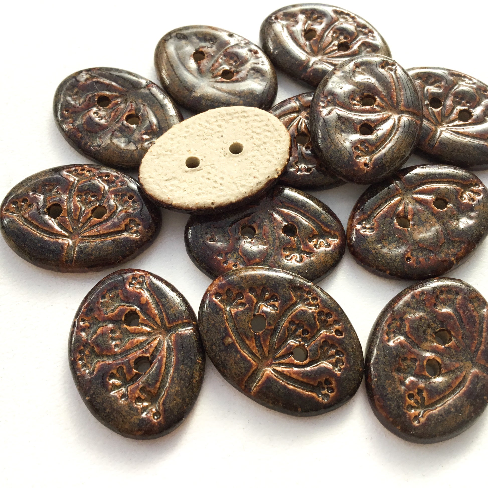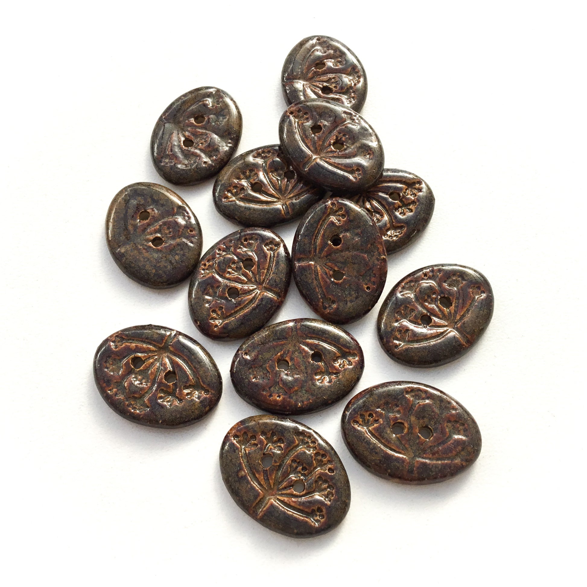 Add a handmade touch to your project with these sweet hand stamped stoneware buttons. Each features a delicate umbel-shaped floral design, perfect for giving a unique look to any creation.