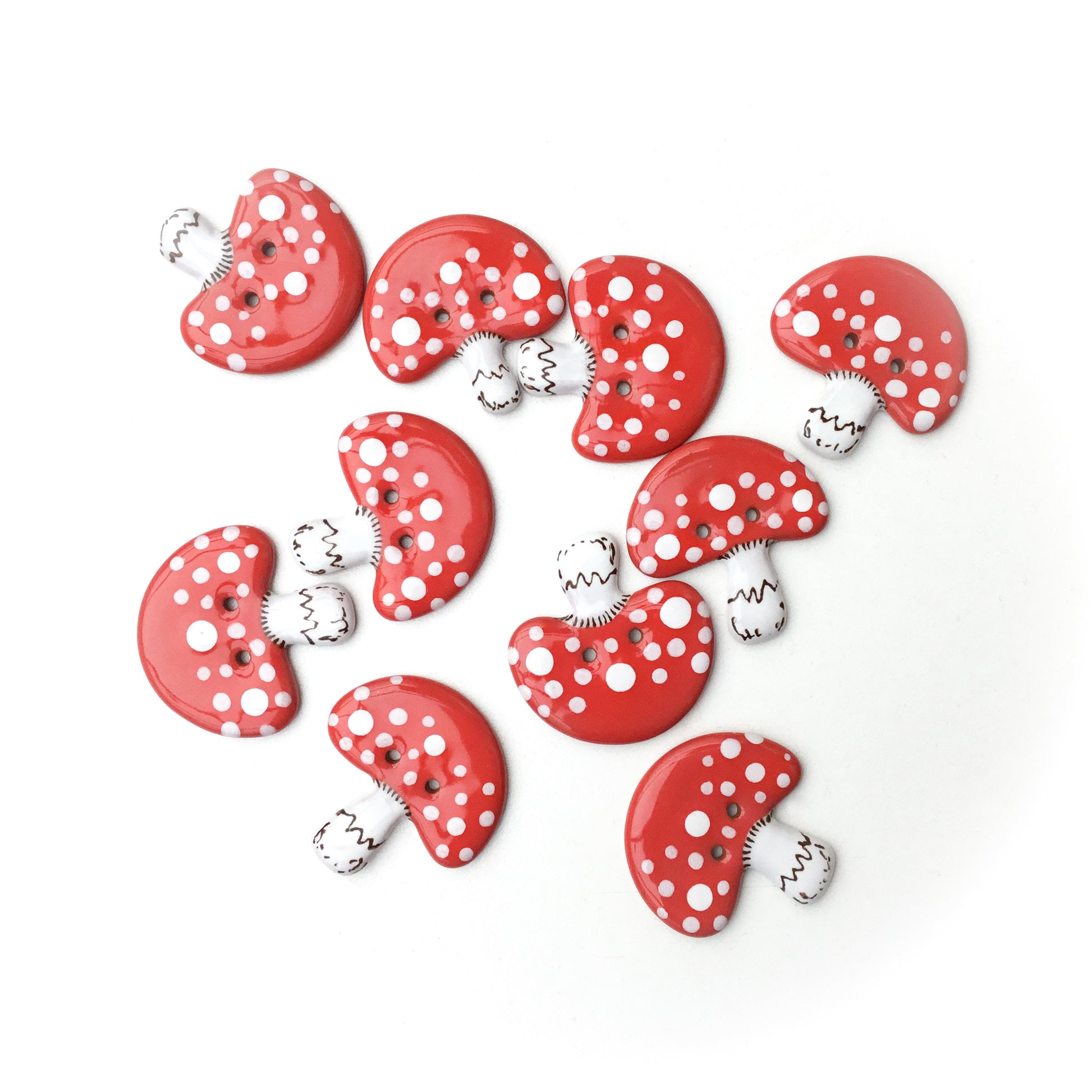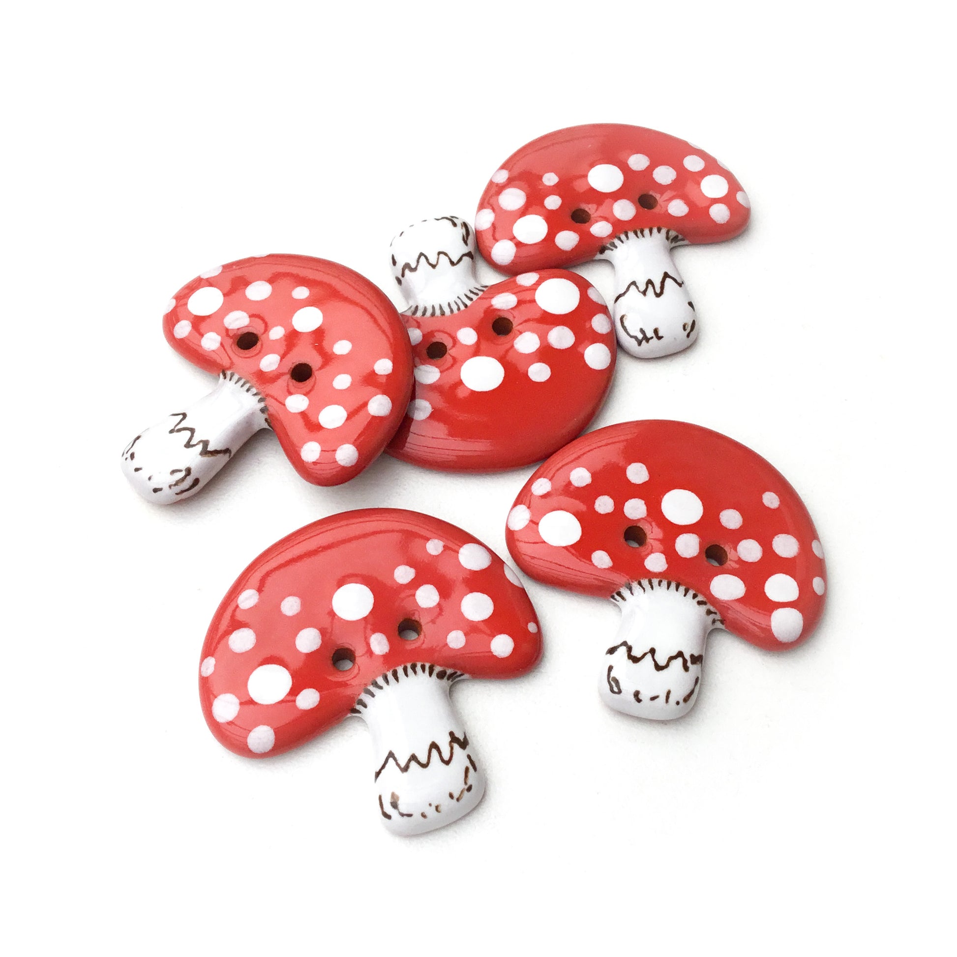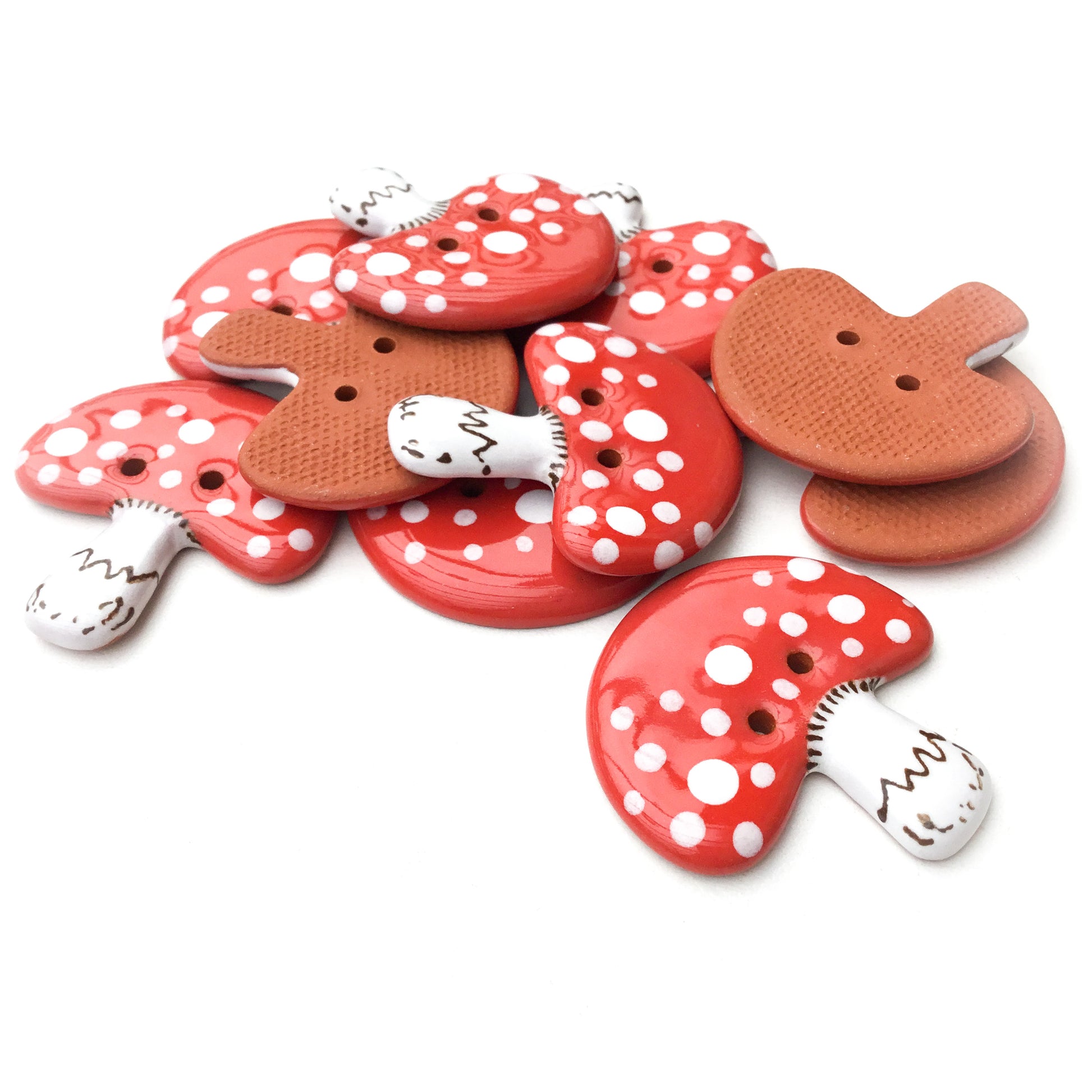 These extra large ceramic buttons are sweet and fun, measuring almost 1.5" from top to bottom and side to side. They'll add a playful touch to any project for the mushroom and nature lover!