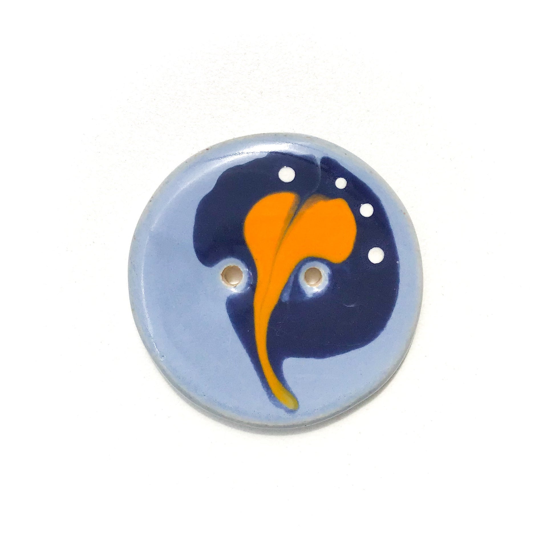 Blue & Orange 'Paisley' Button - Large Ceramic Button - 1 7/16"