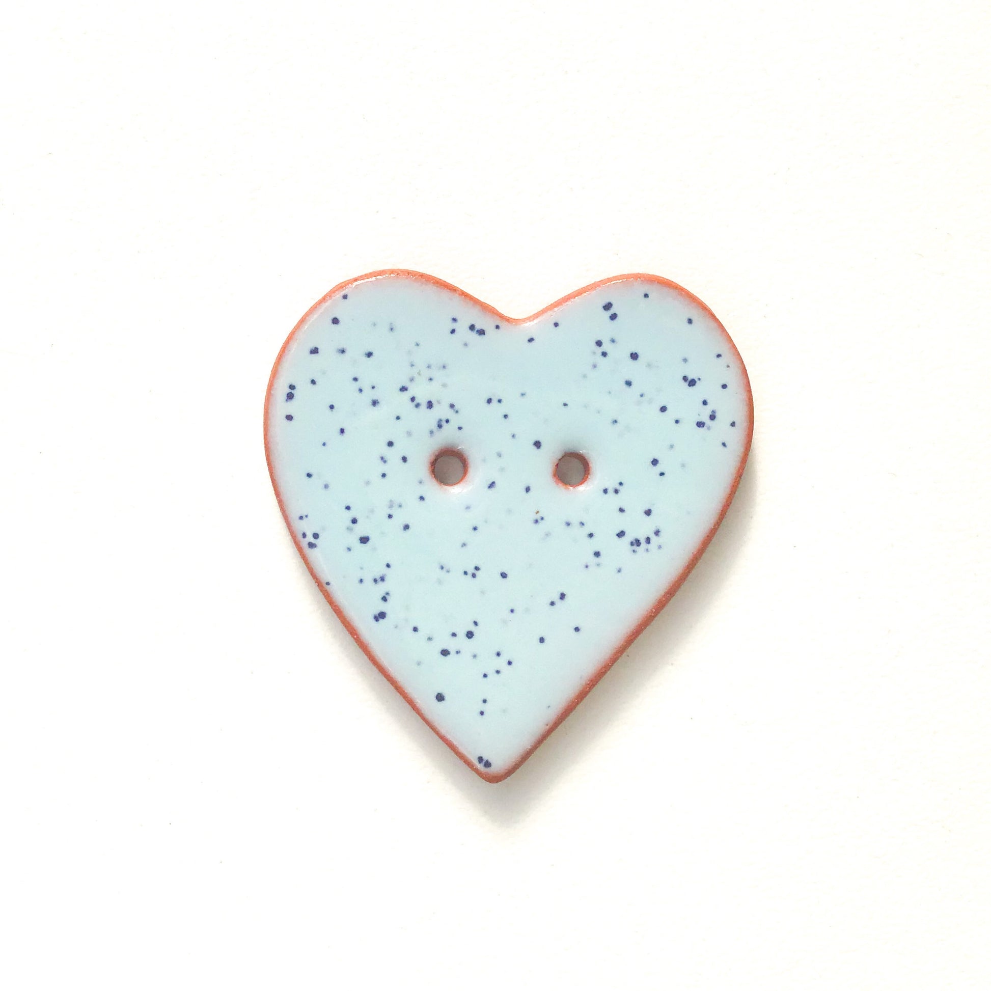 Large Speckled Blue Heart Buttons - Ceramic Heart Button - Sky Blue - 1 3/8"
