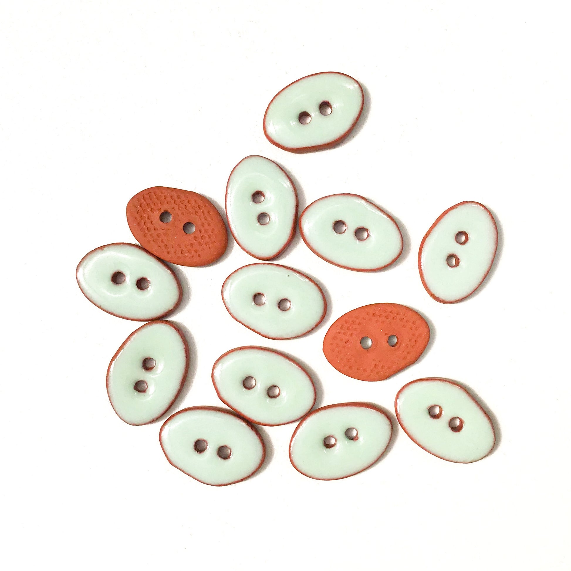 Light Aqua Oval Clay Buttons on Terracotta - 1/2" x 3/4"