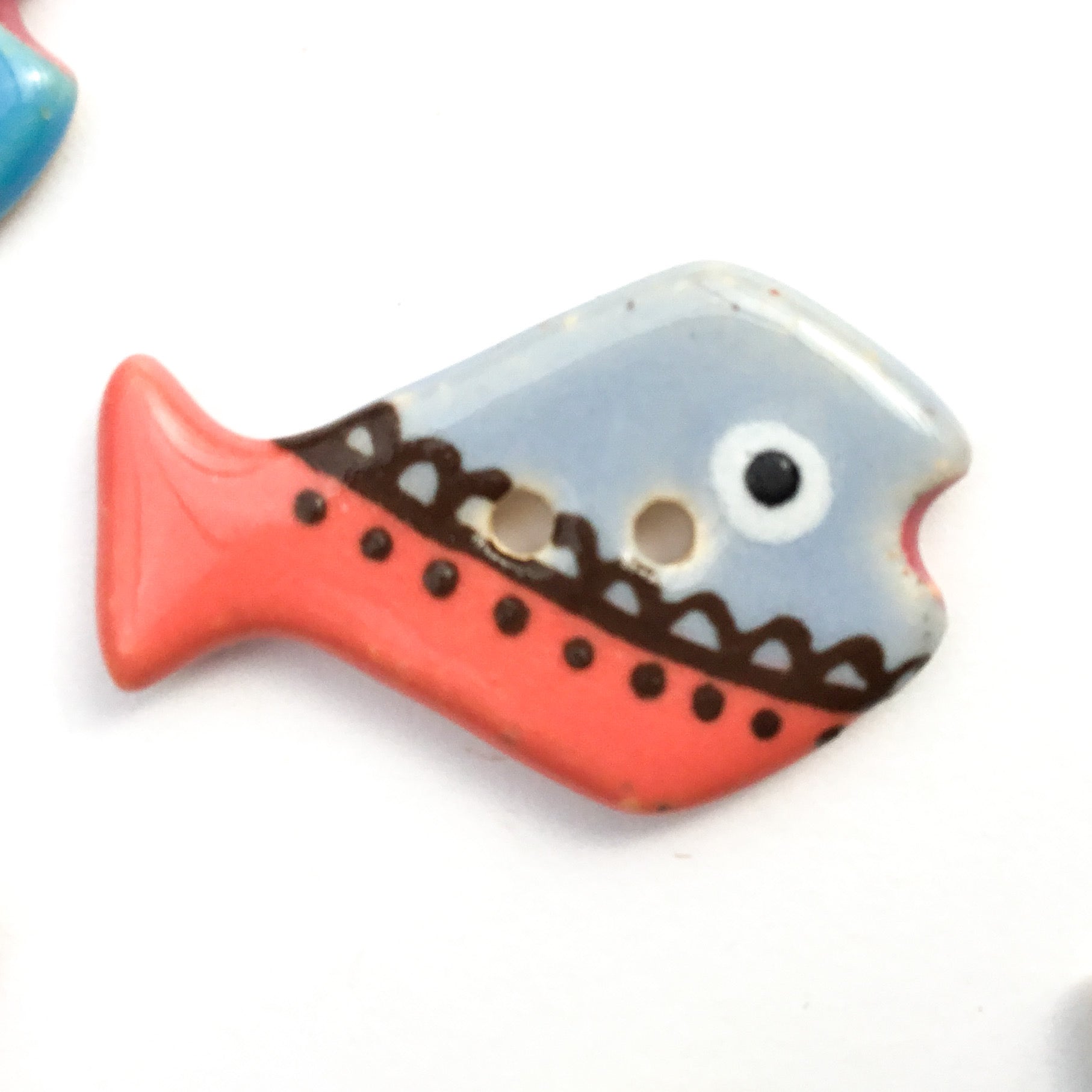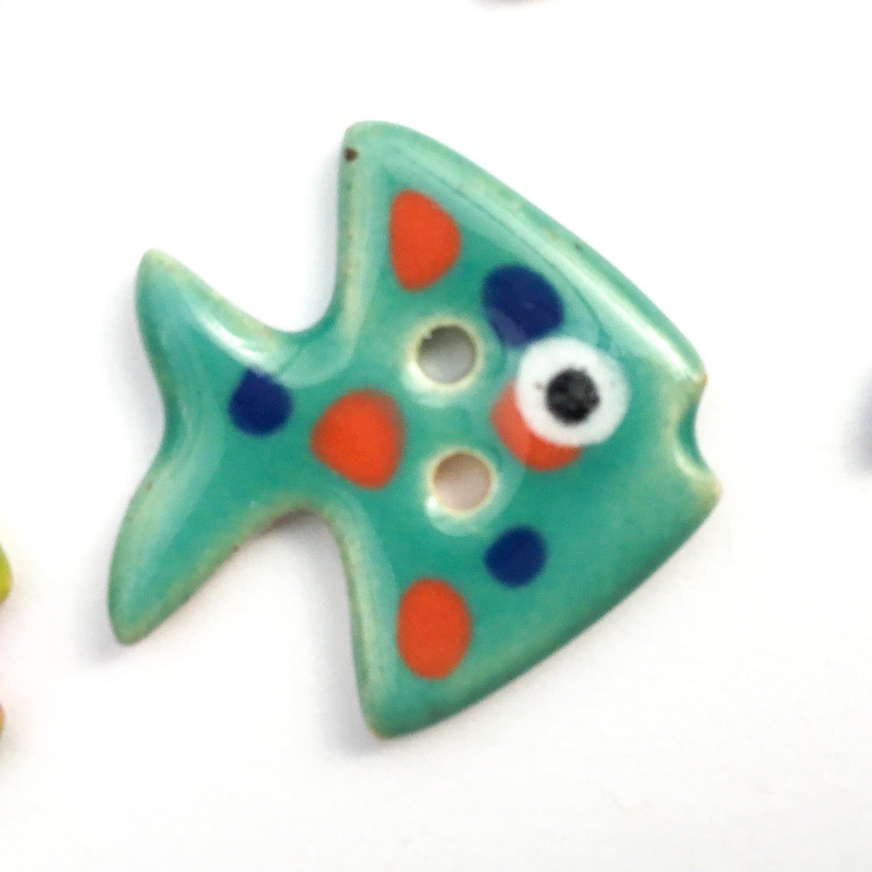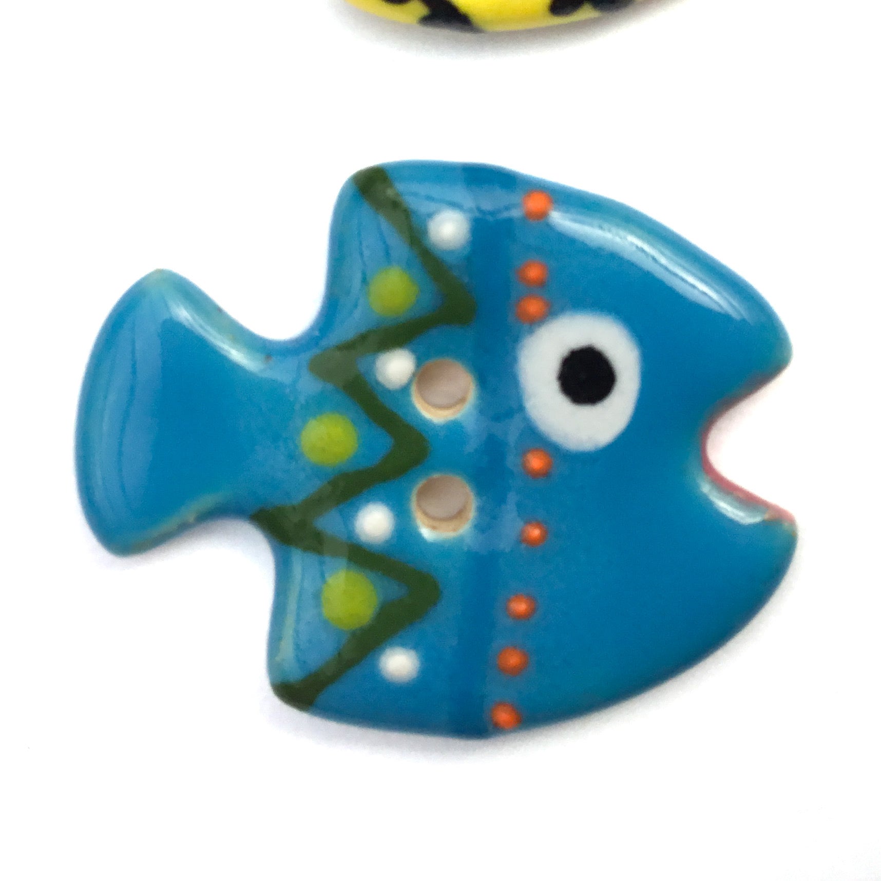 I love my turquoise school of fish button, it's expertly crafted and Looks even cuter than the Pictures!