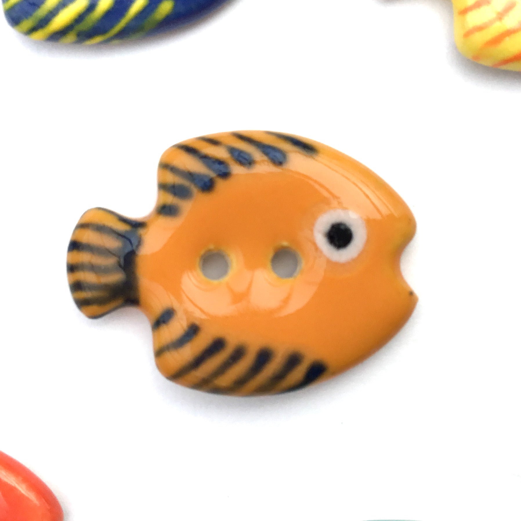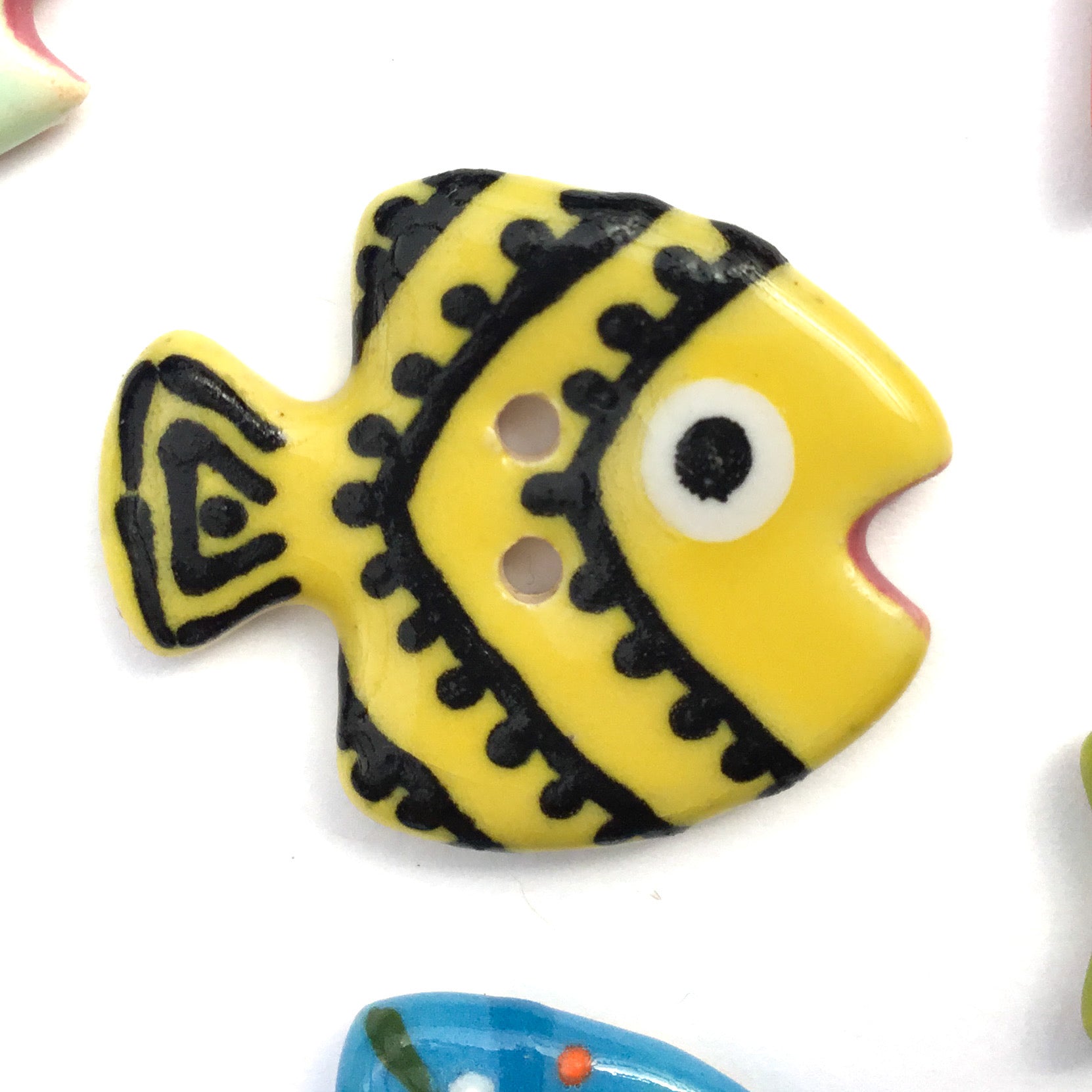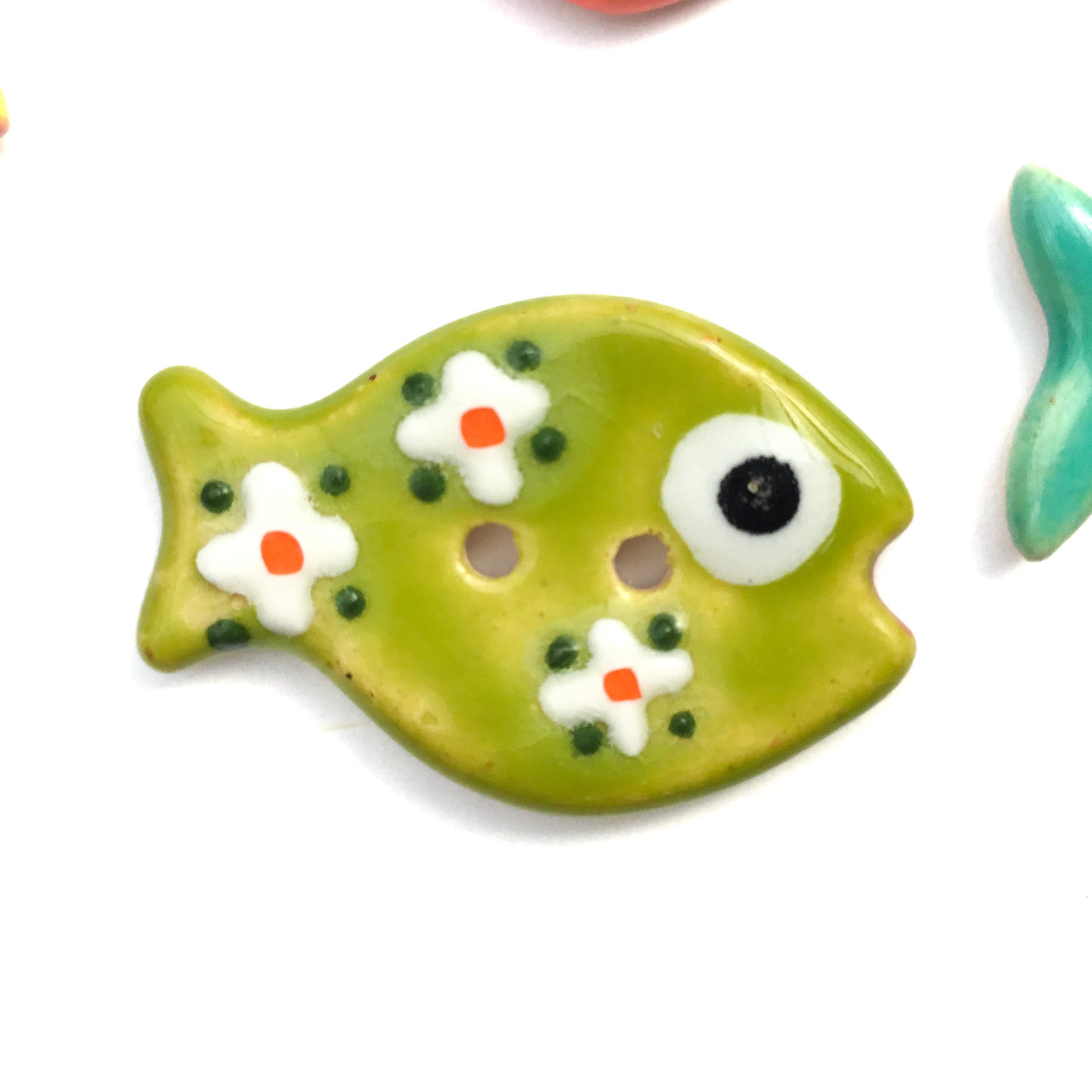I love my turquoise school of fish button, it's expertly crafted and Looks even cuter than the Pictures!