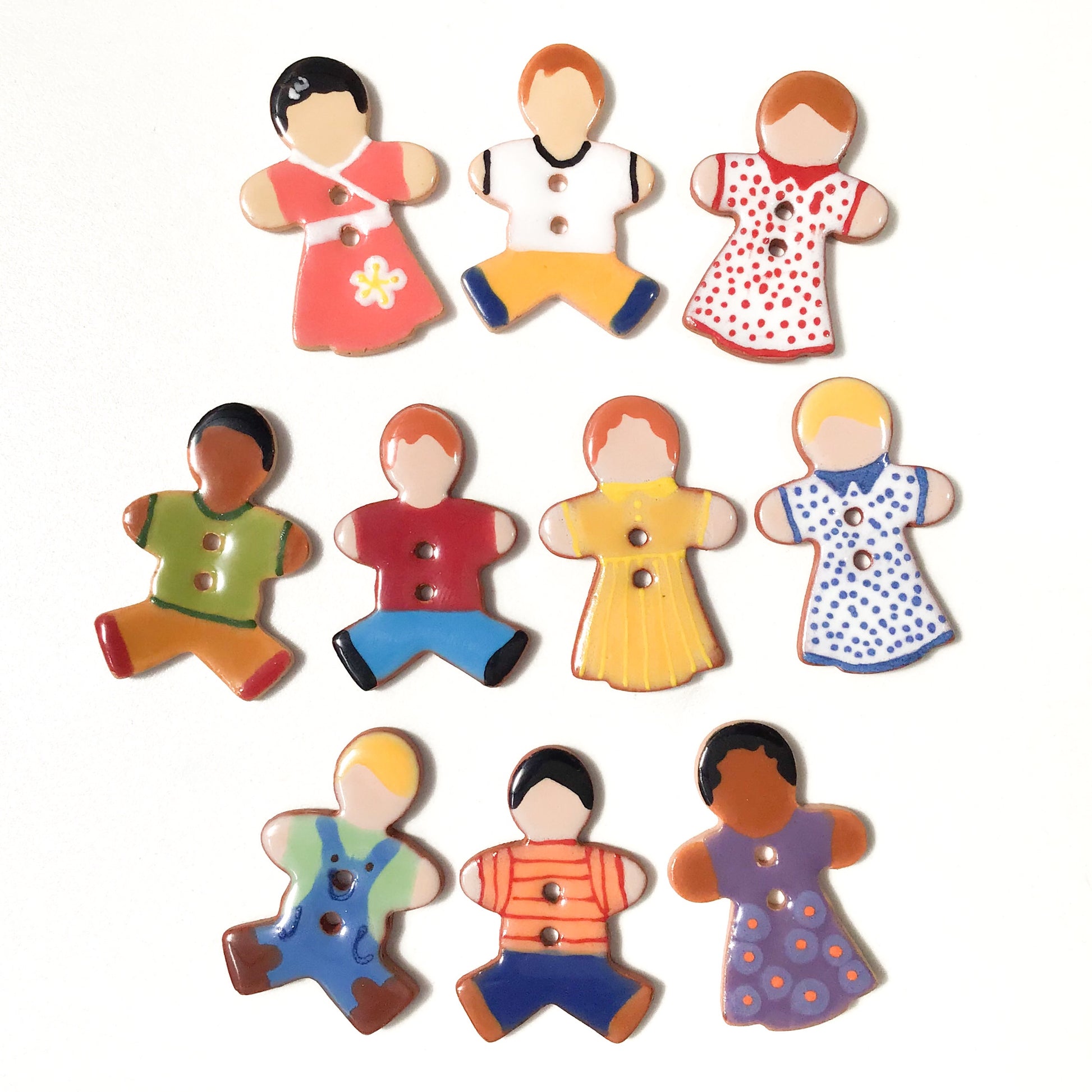 Little Wee Folk Buttons - Waldorf Inspired Ceramic Buttons - 1" x 1 3/8"