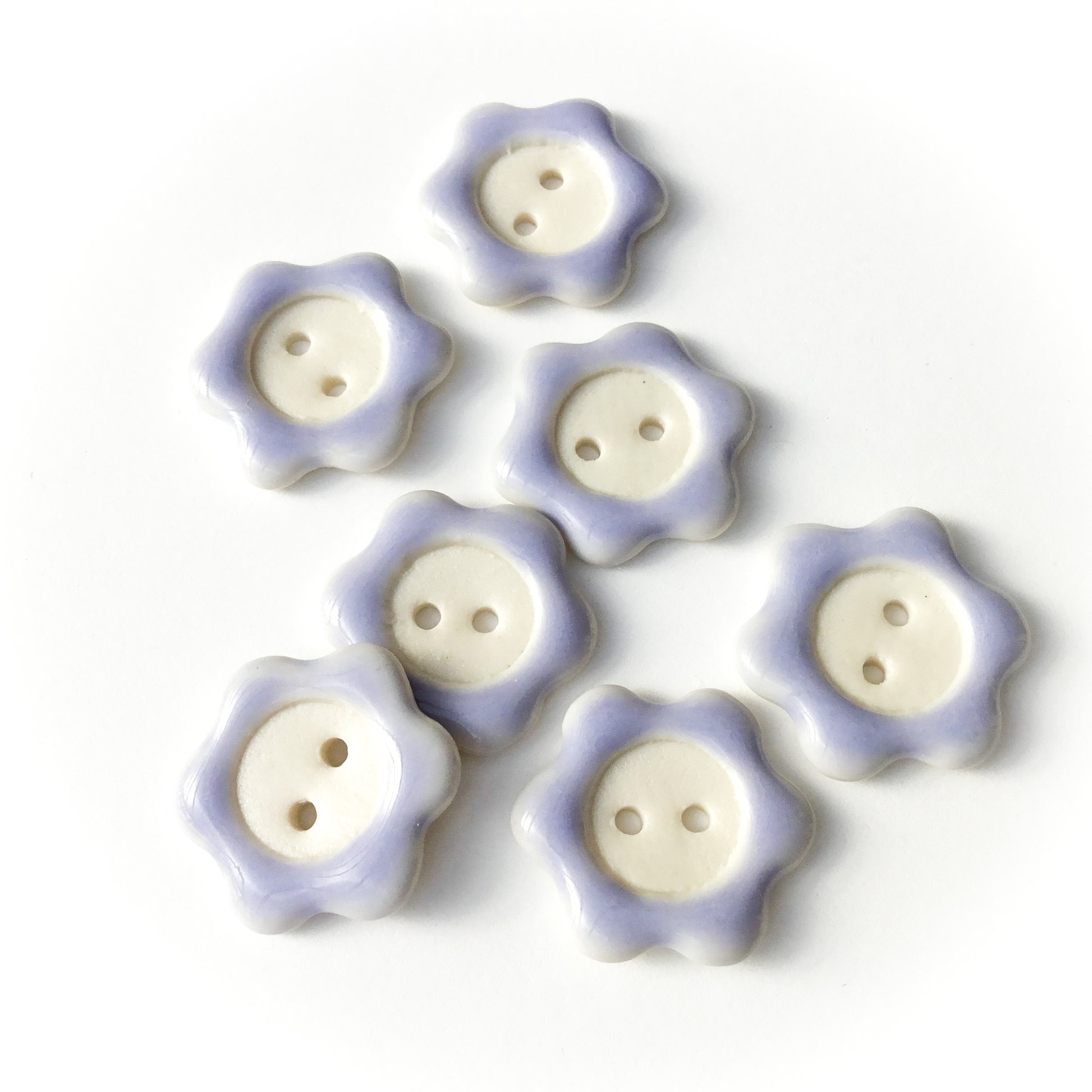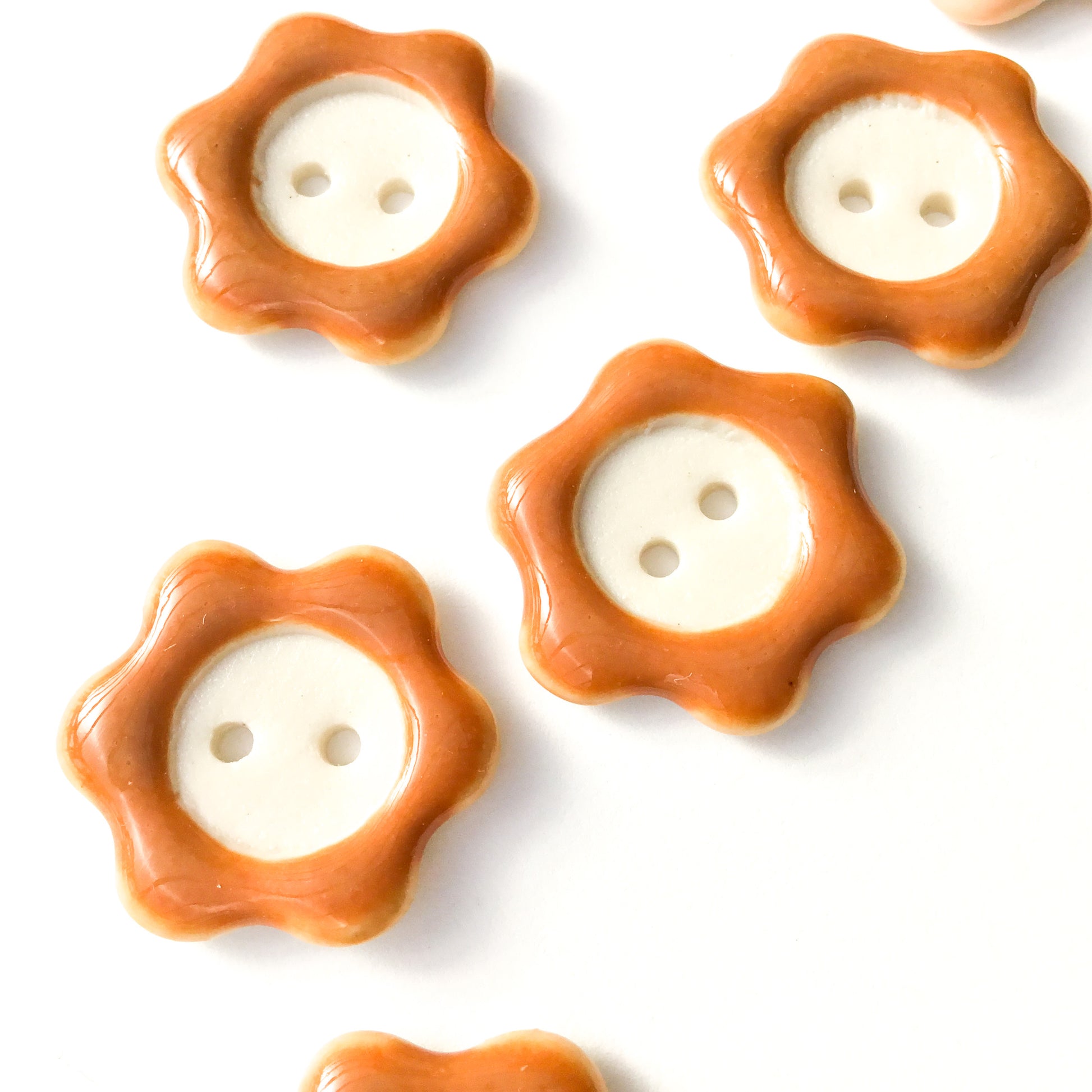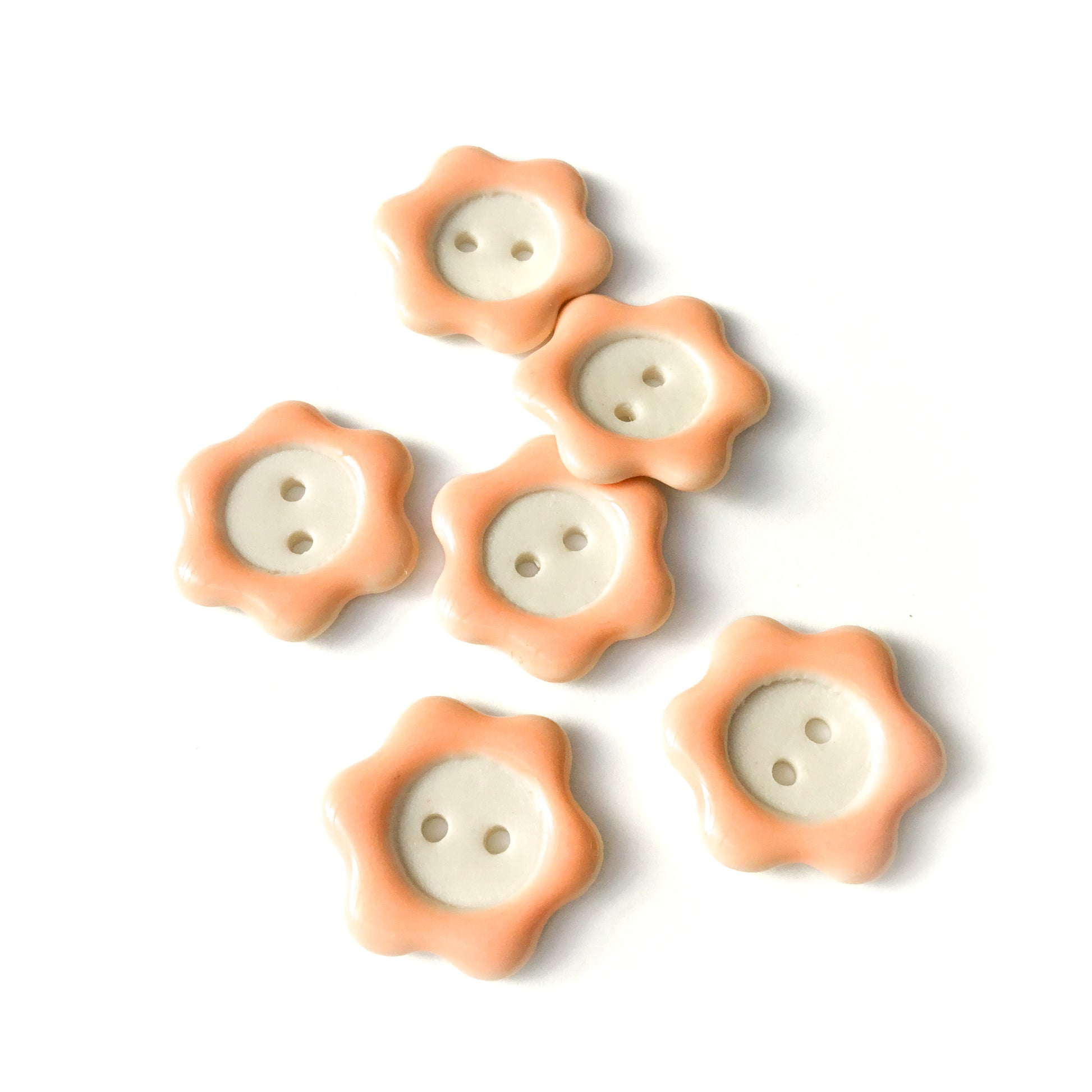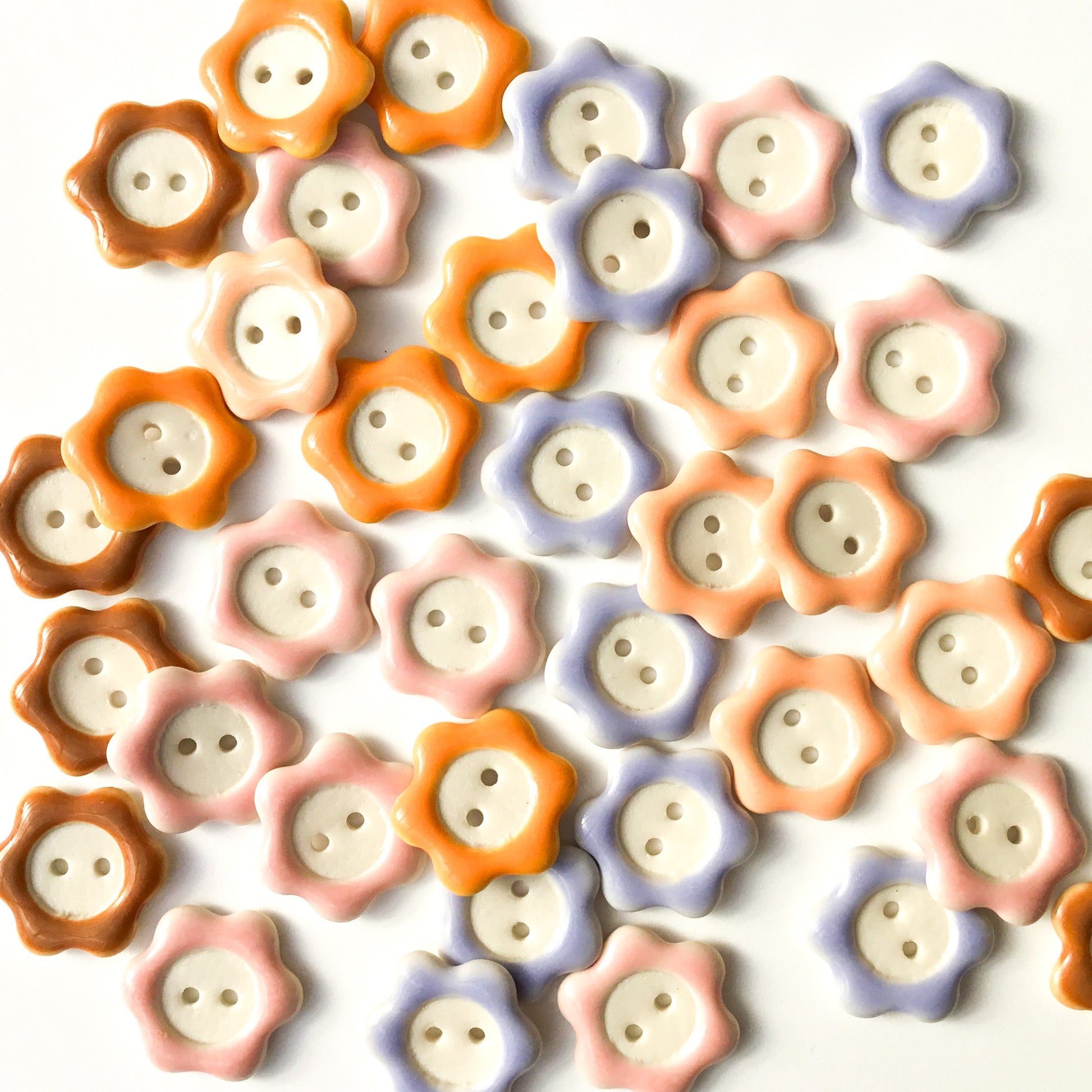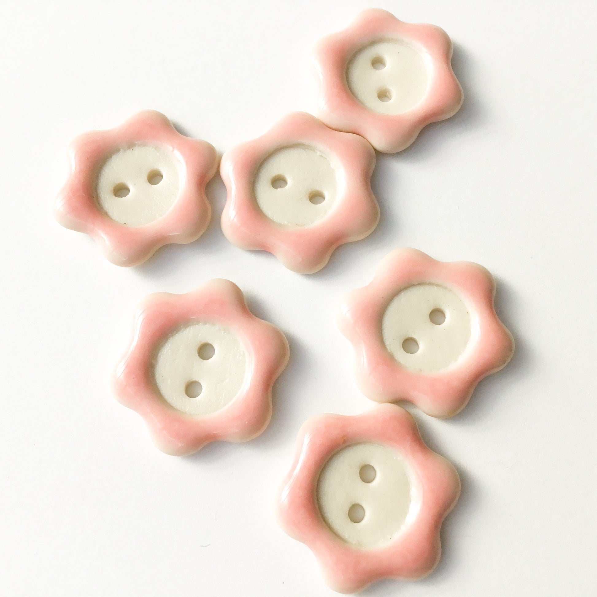 Each button and/or set is individually painted and one-of-a-kind. We sand all non-glazed edges for a smooth, snag-free surface.