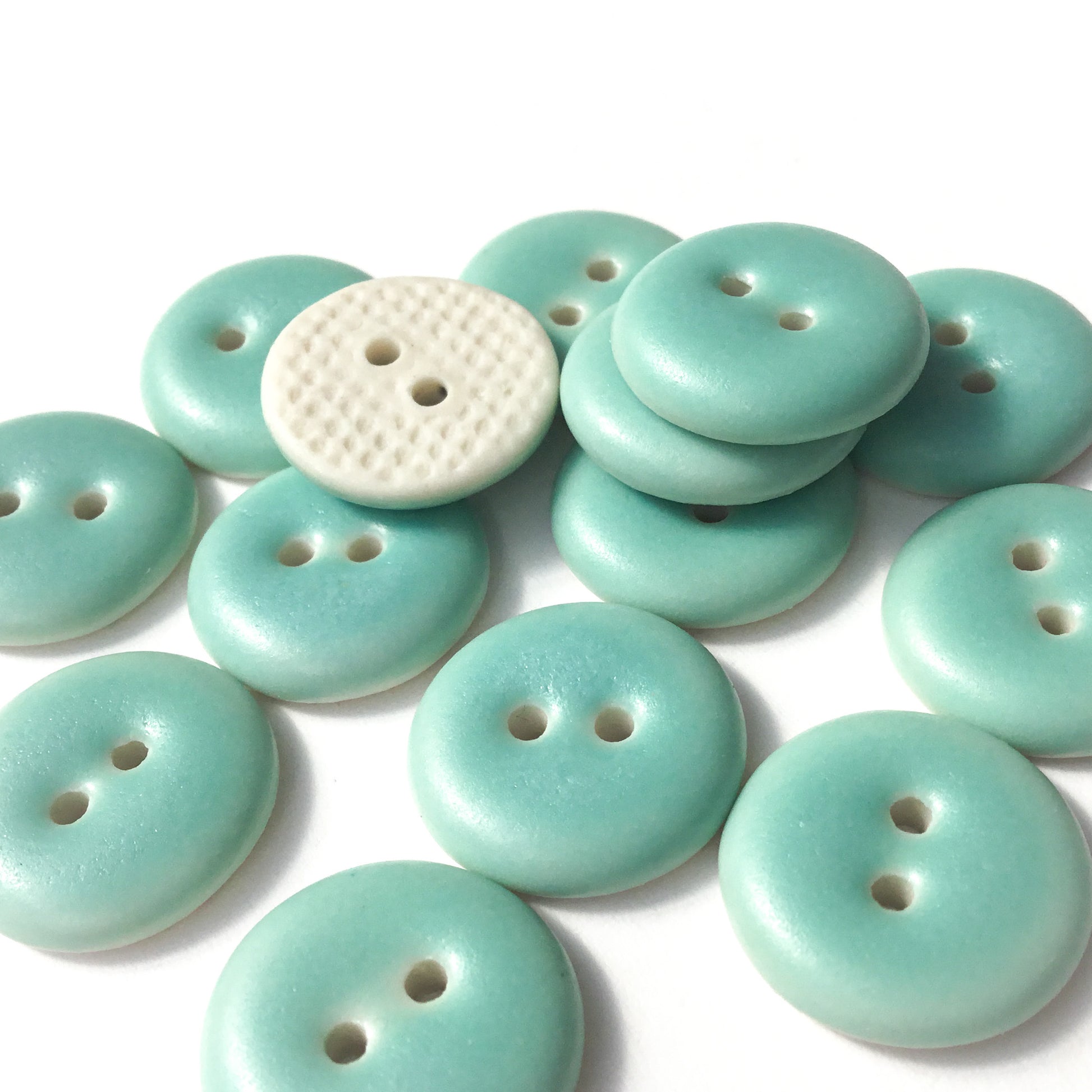 These porcelain buttons have been glazed in a sweetly colored blue-green. They'll add beautiful finishing touch to your handwork!