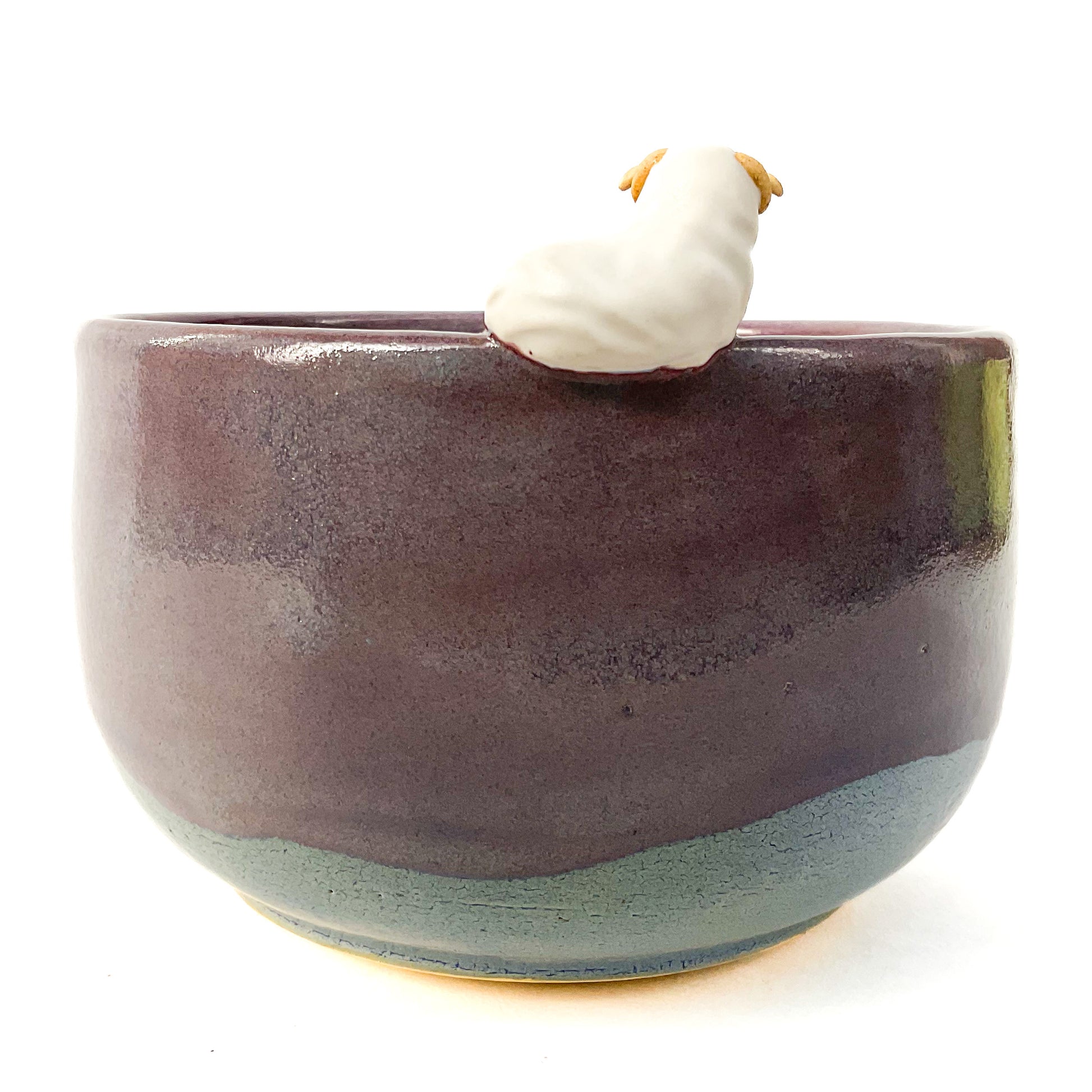 A one-of-a-kind stoneware clay yarn bowl with a special hand sculpted addition!