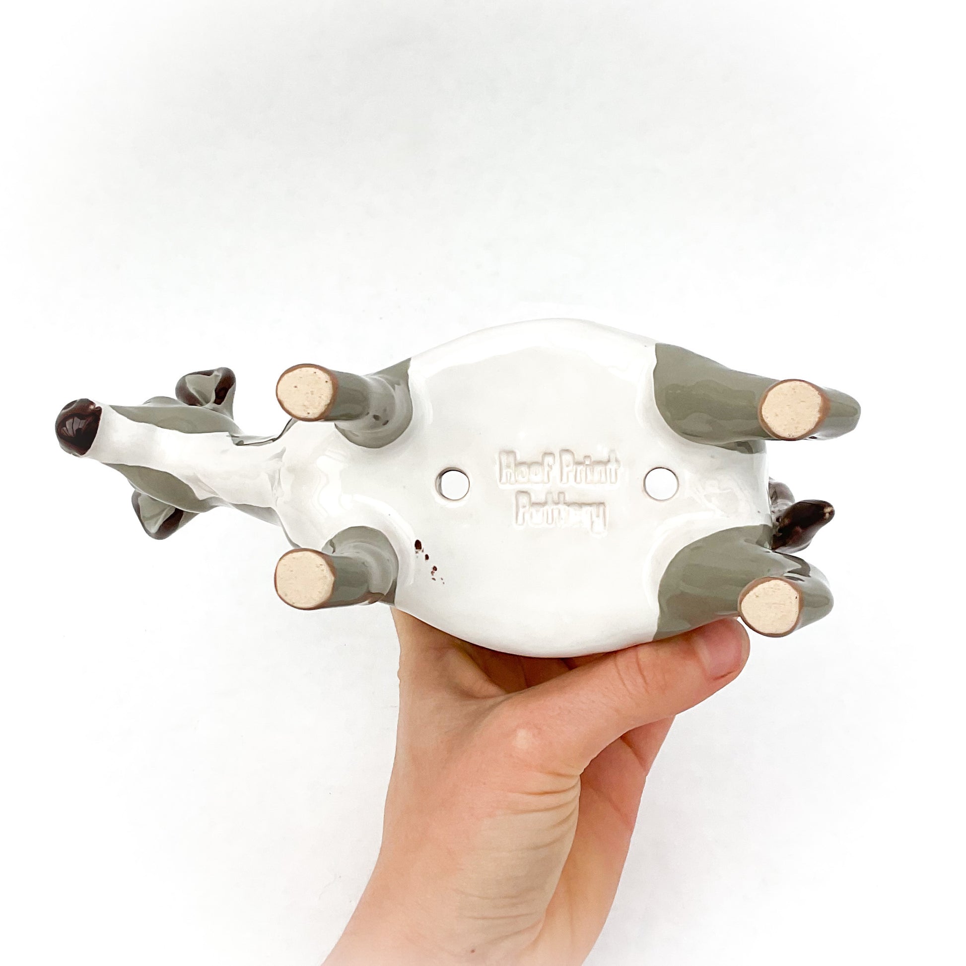 Measures - 7 1/2" from head to tail; stands 5 3/4" tall to tip of ears