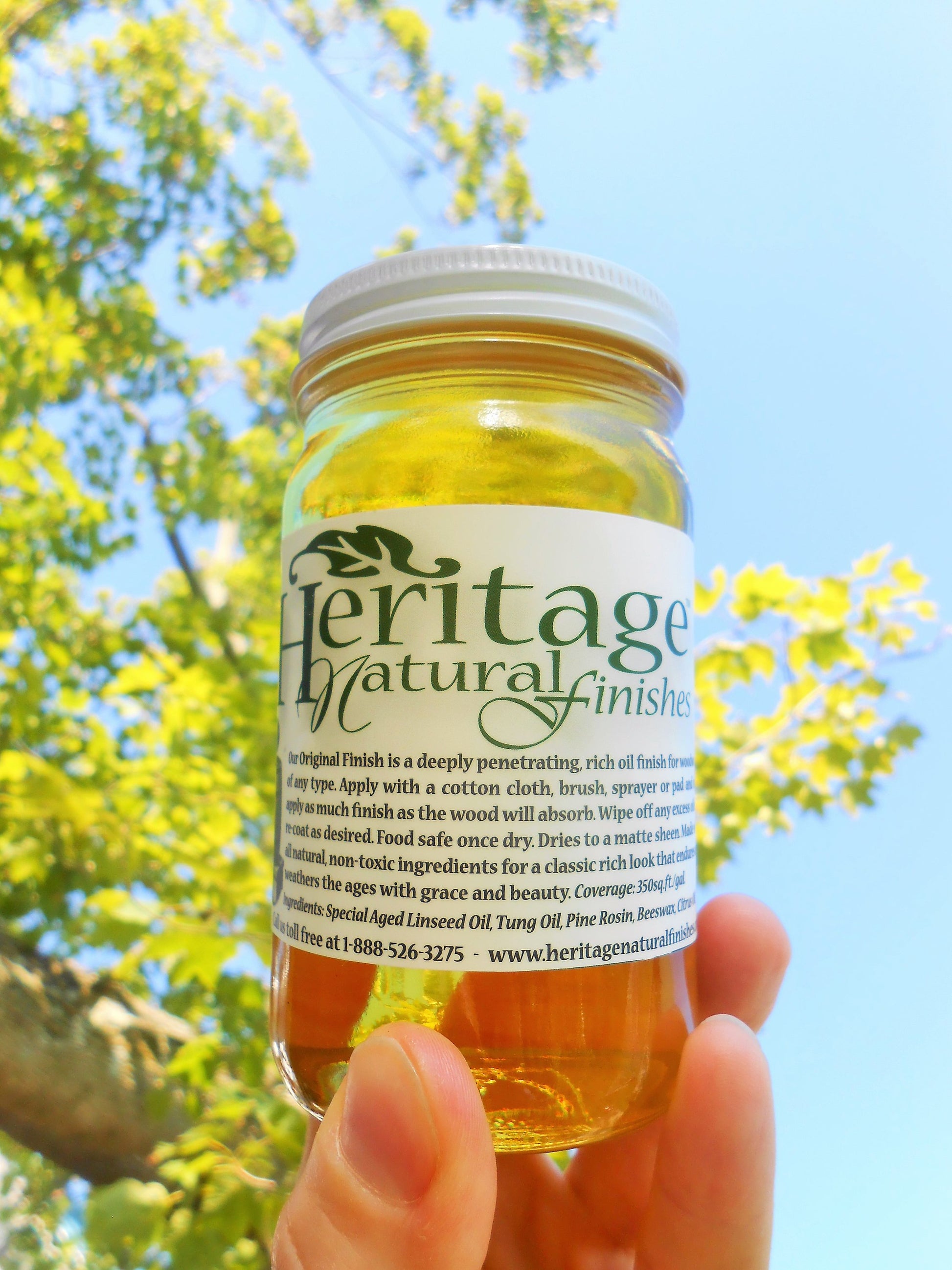 We're happy to offer the finishing oil we've been using for nearly 20 years, so you too can keep your items looking beautiful! We love this finish and the end product it produces. Handmade in small batches by Heritage Natural Finishes, in Philomath, Oregon, it contains NO petroleum products (yes, even food grade mineral oil is petroleum-based), and smells delightful!
