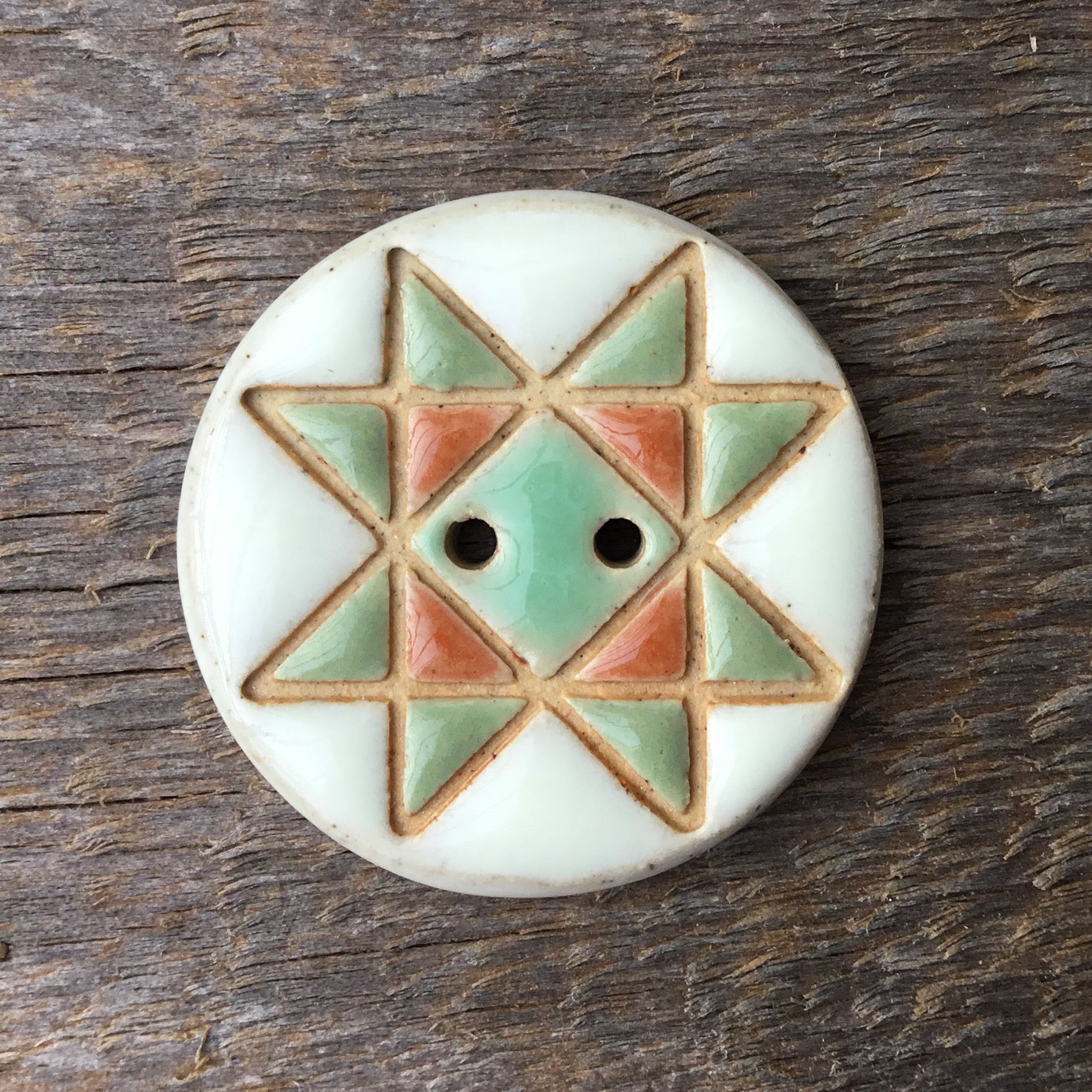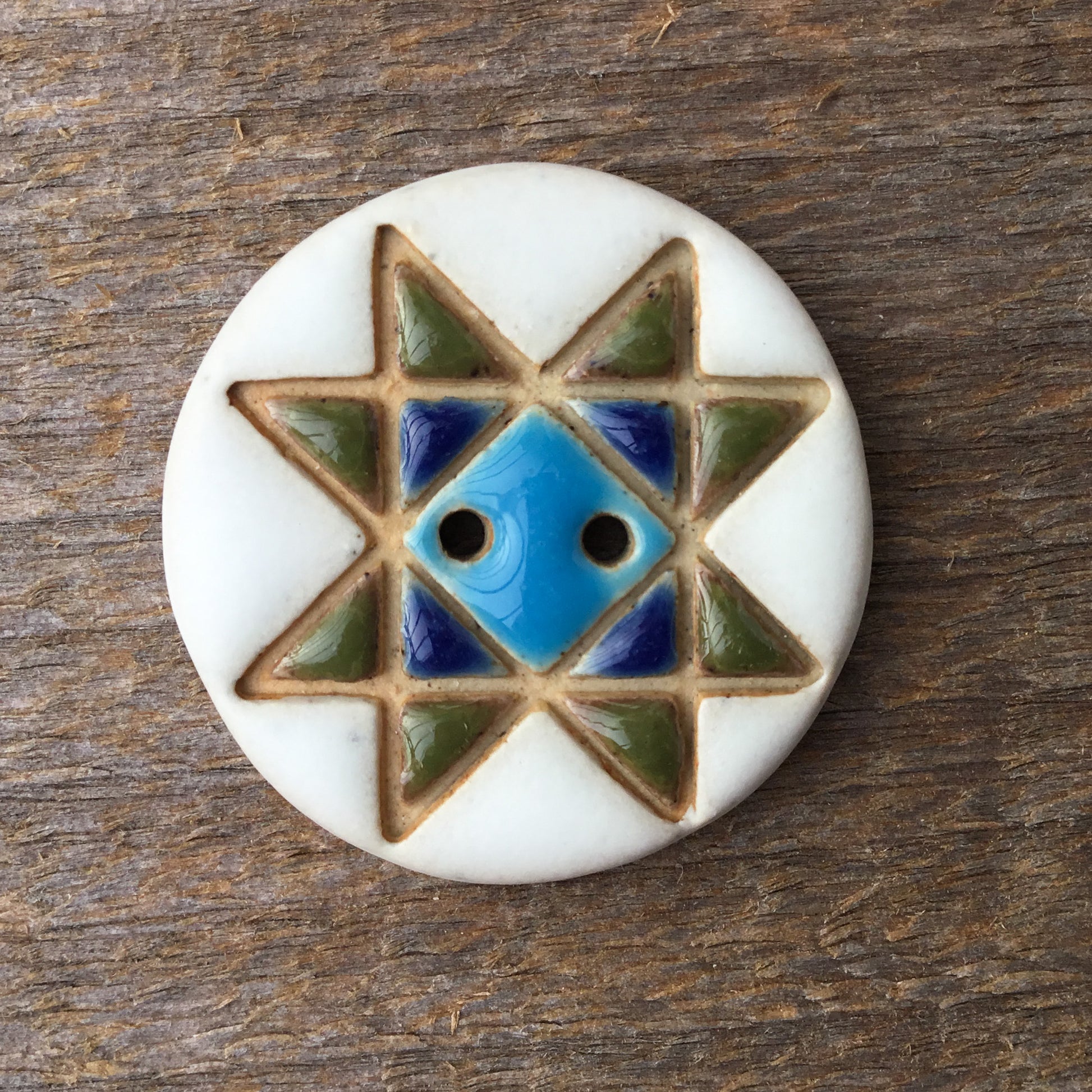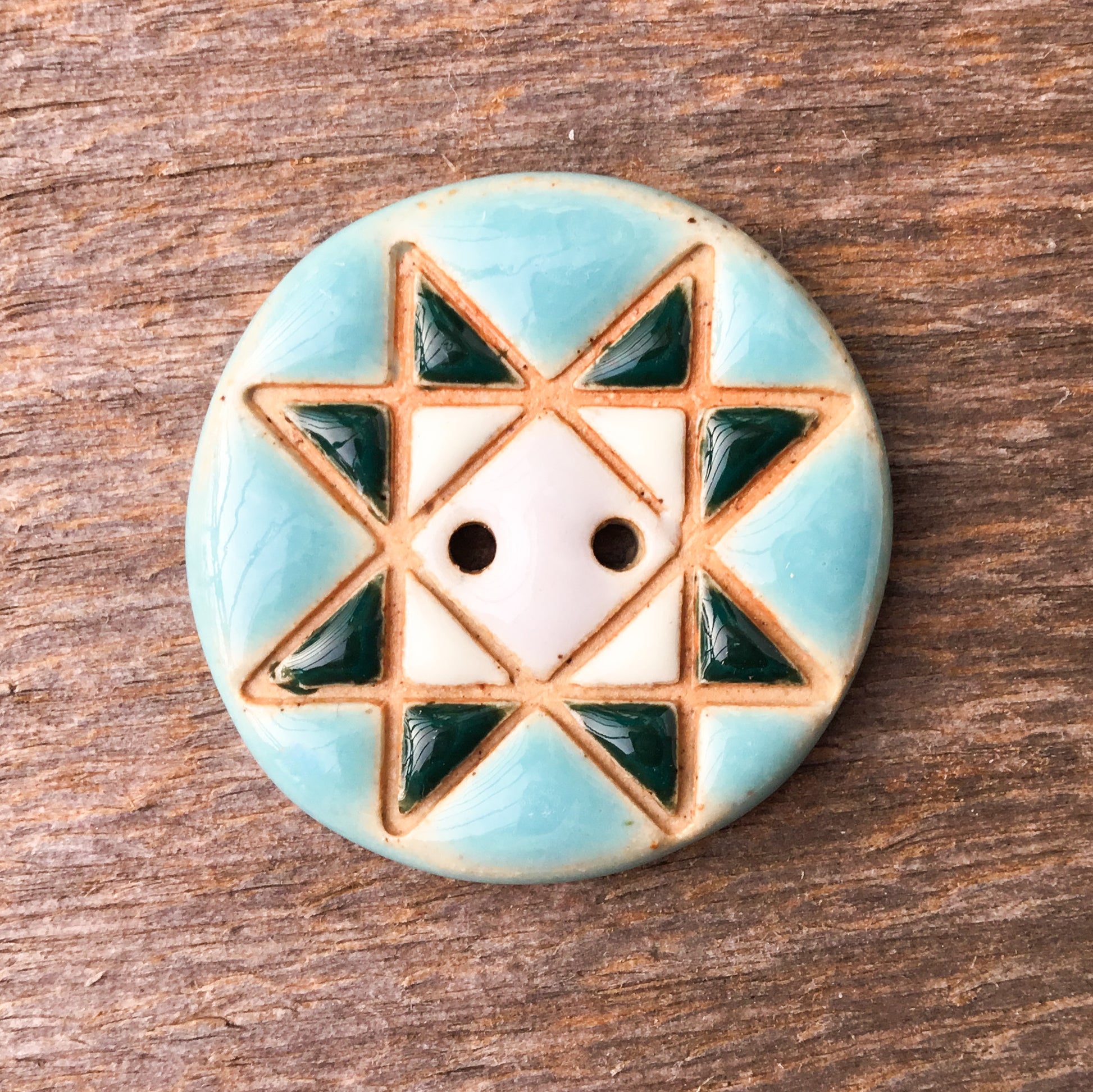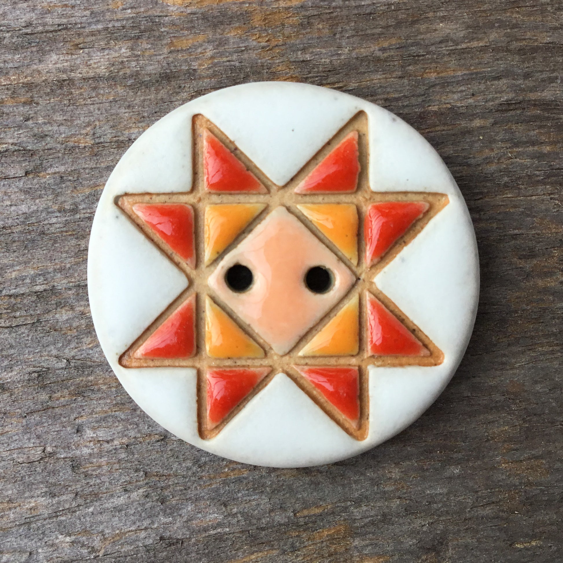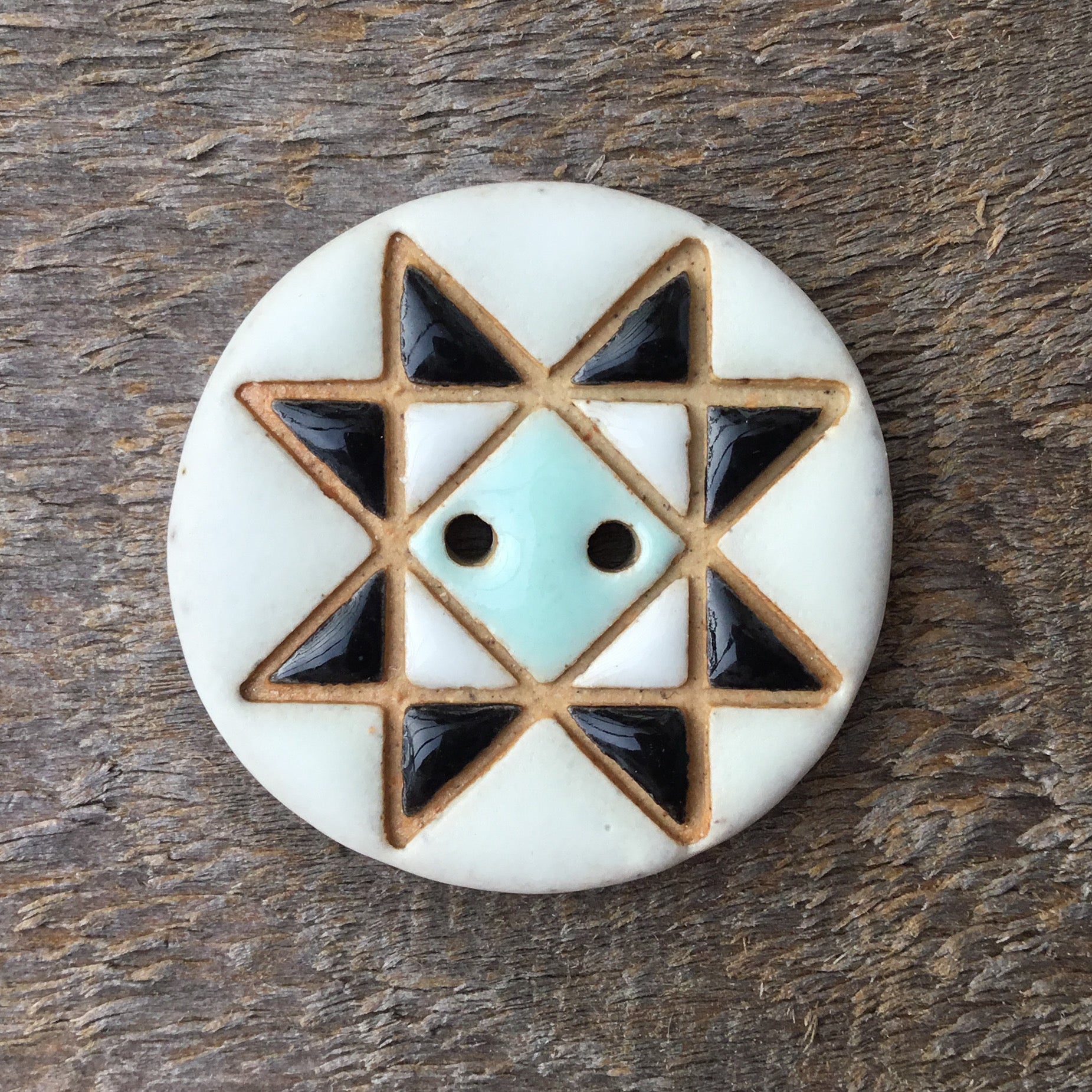 Ohio Star Quilt Block Stoneware Button 1-1/16"