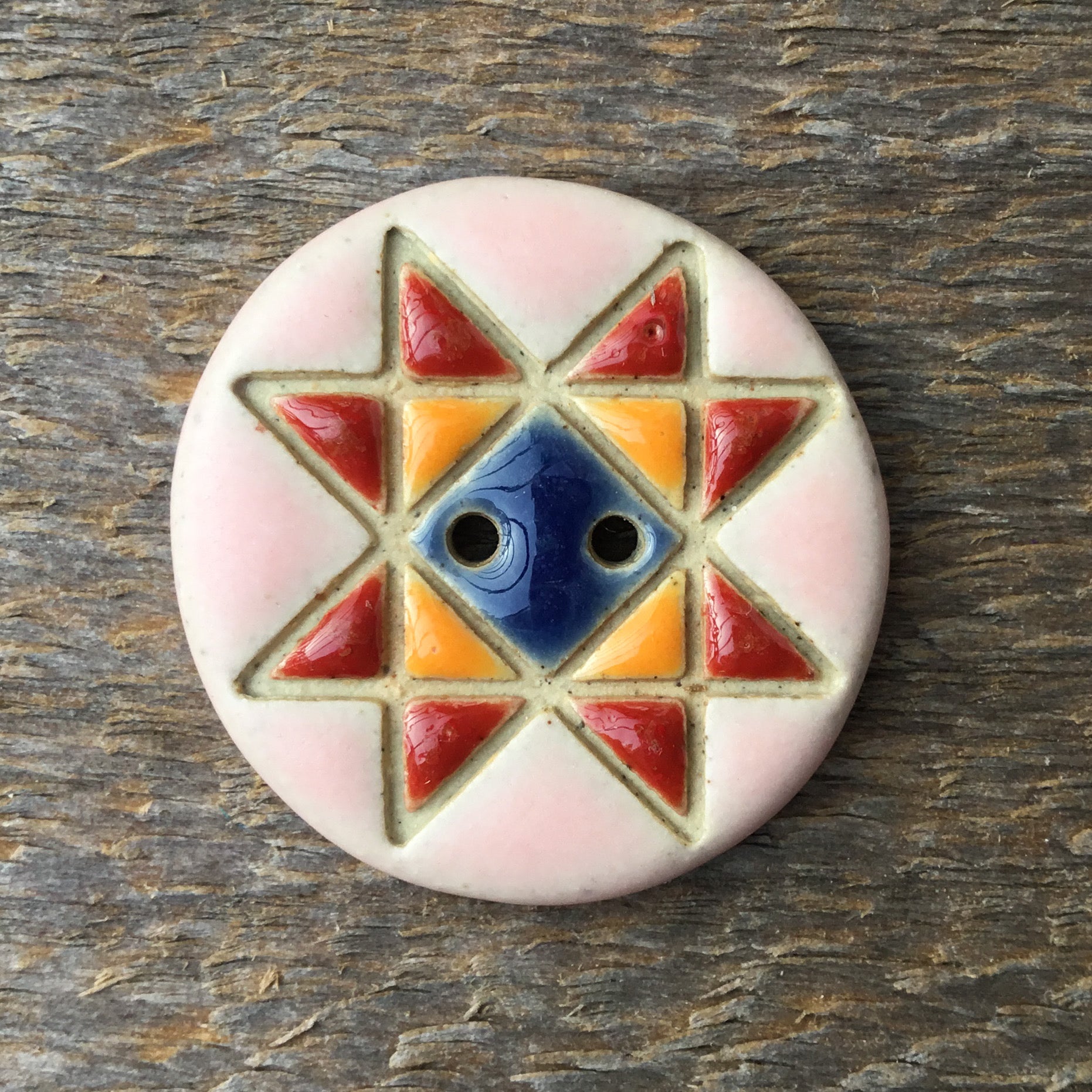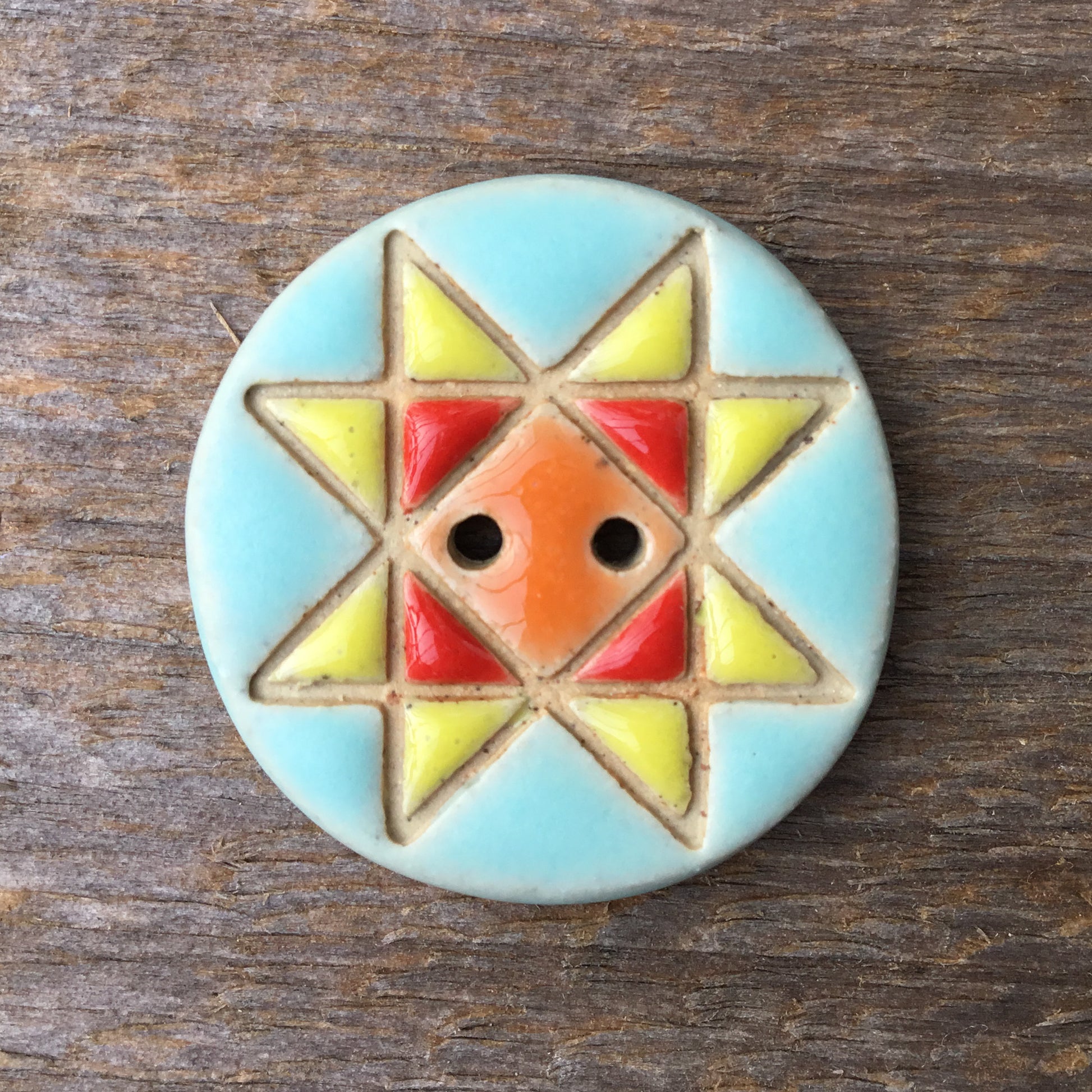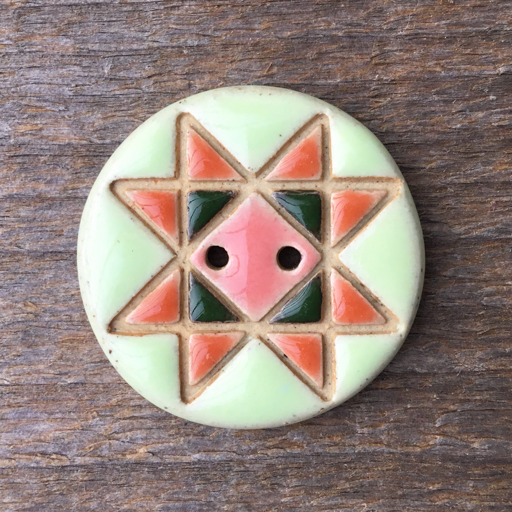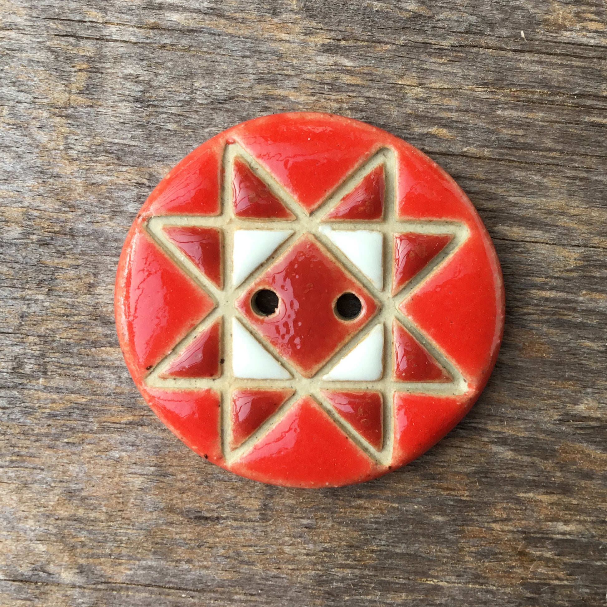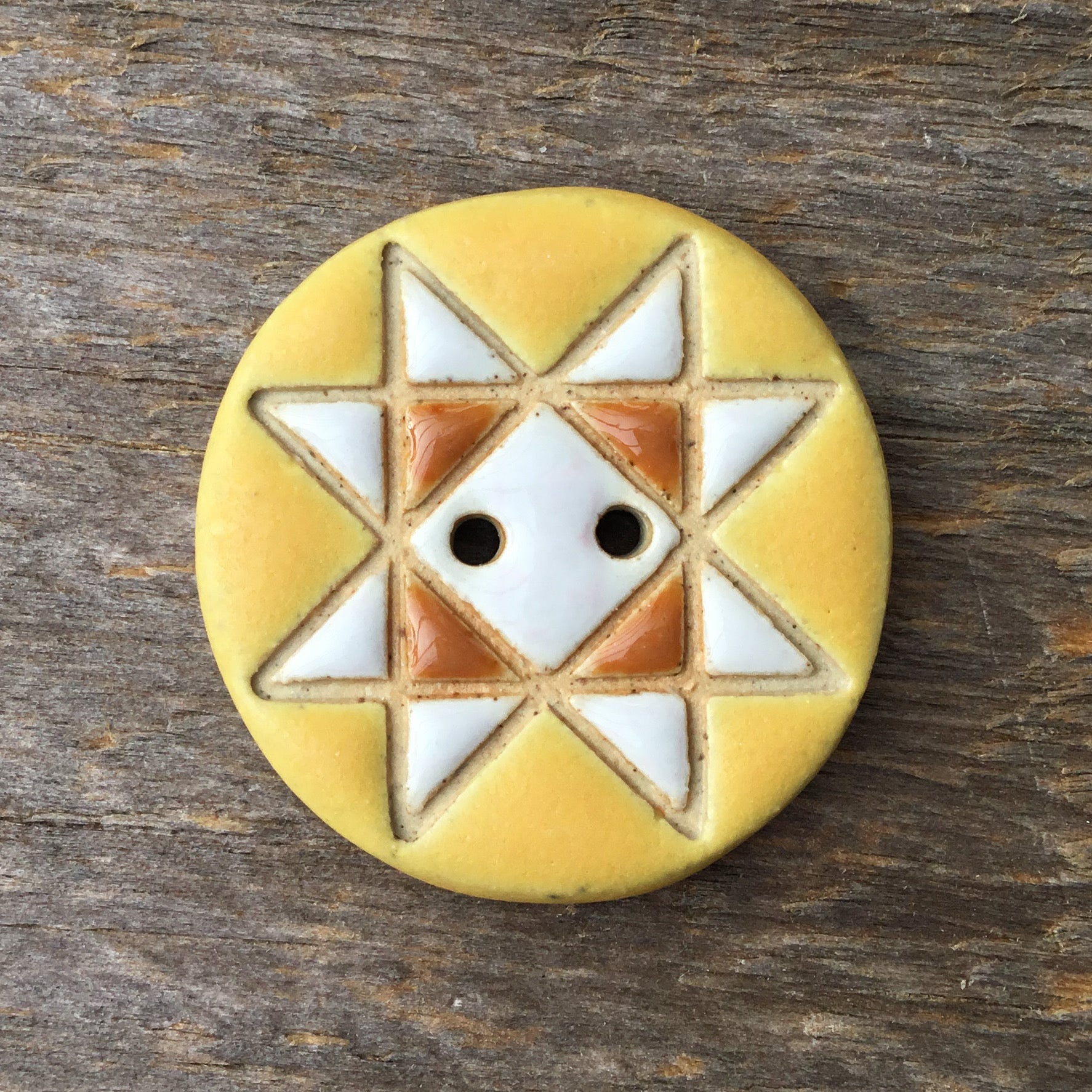 Ohio Star Quilt Block Stoneware Button 1-1/16"