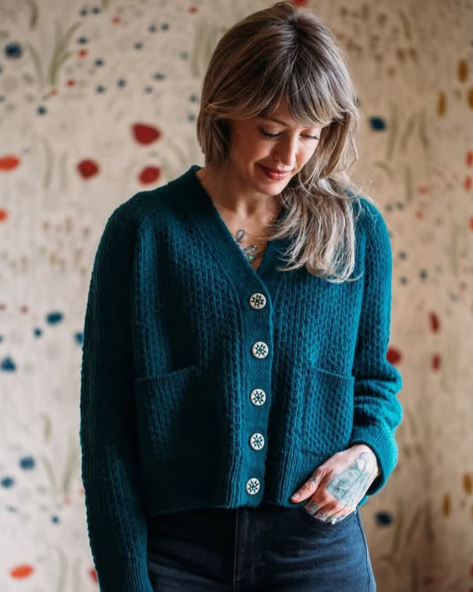 Find curated kits for Andrea Mowry's Combackigan Cardigan from North Bay Fiber Company here.
