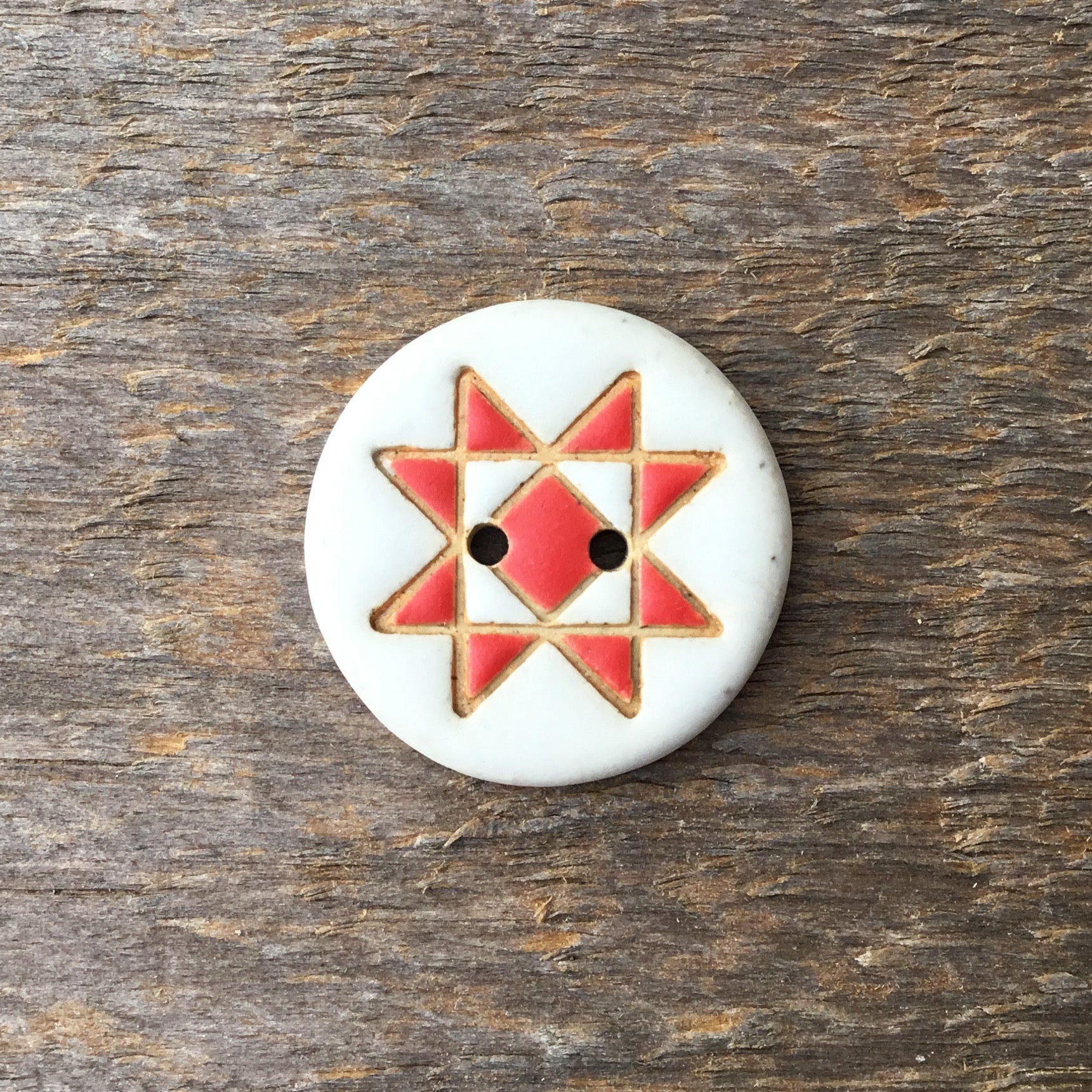 Ohio Star Quilt Block Stoneware Button ‘Solid Mattes’ 7/8”