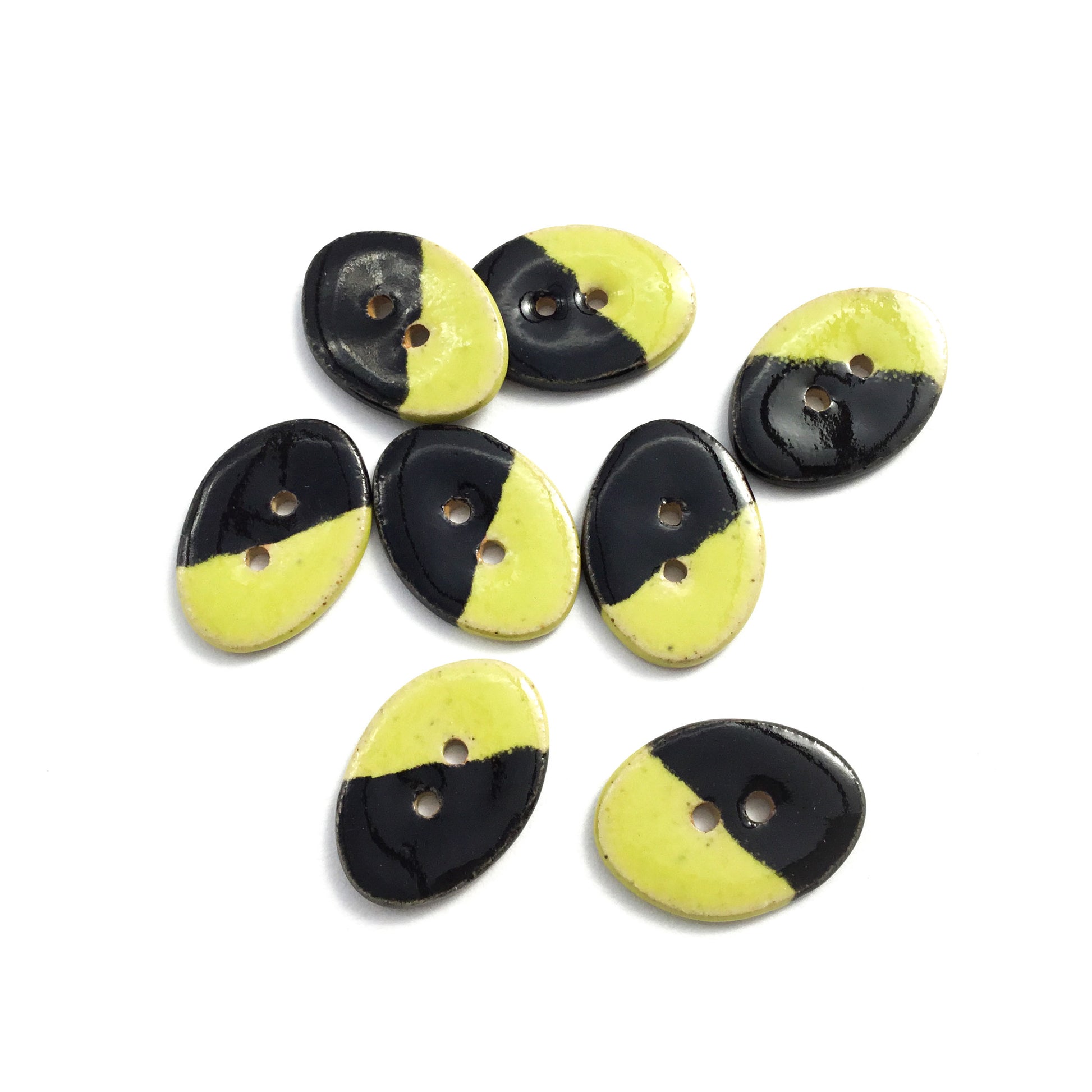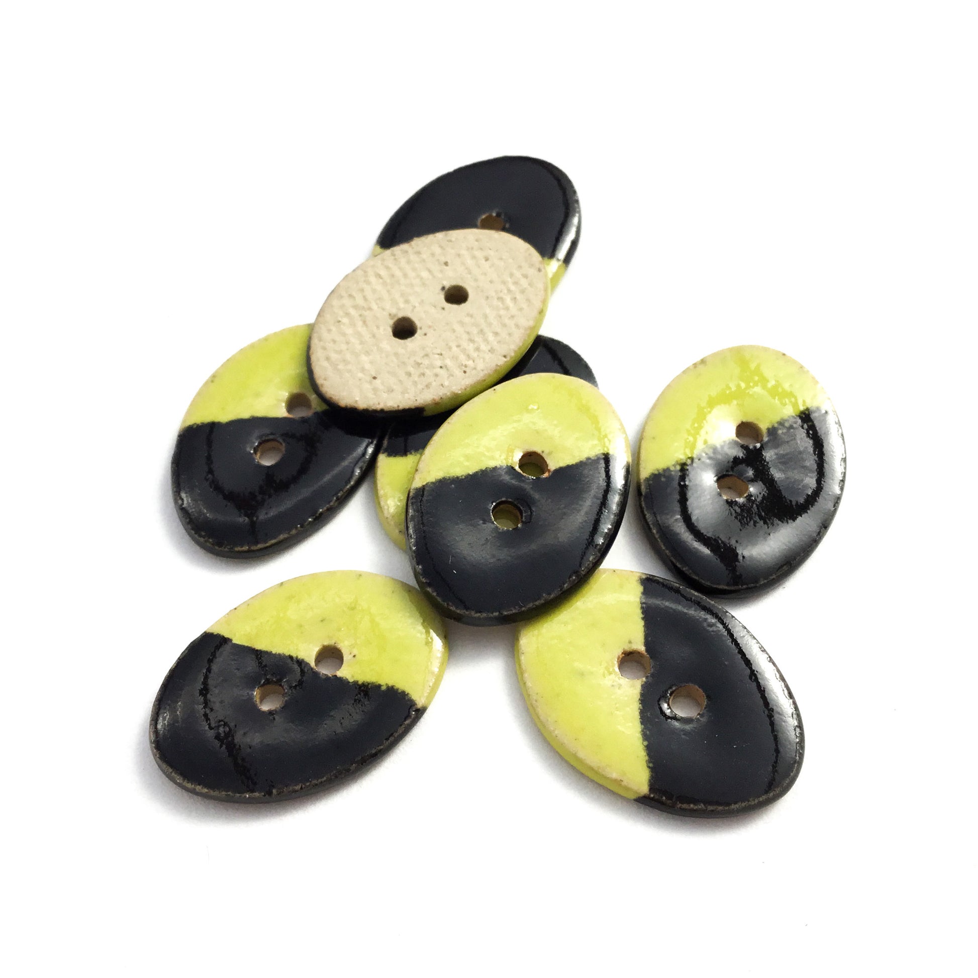 These oval ceramic buttons will certainly pop on any garment. The contrasting colors in a diagonal pattern are bright and bold!