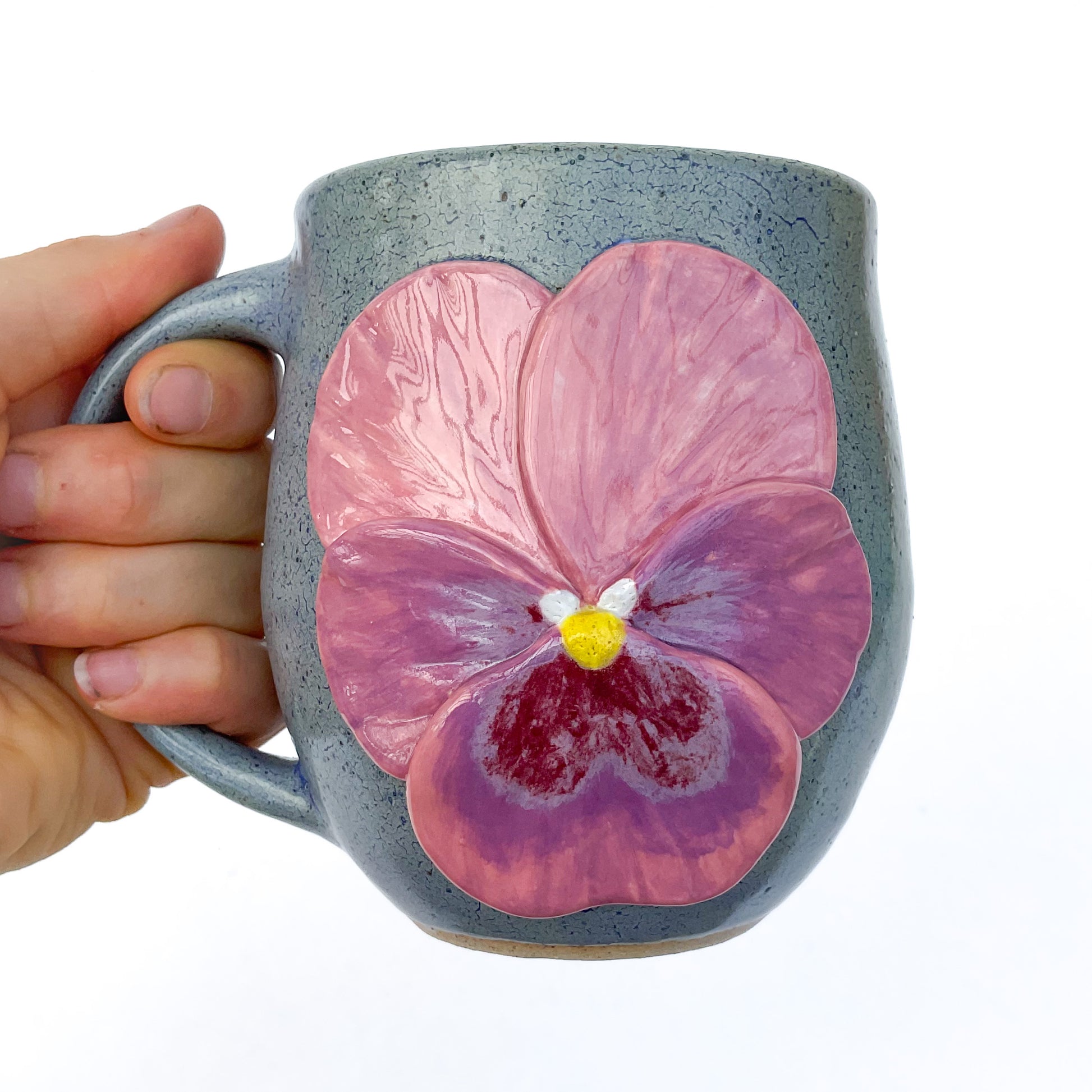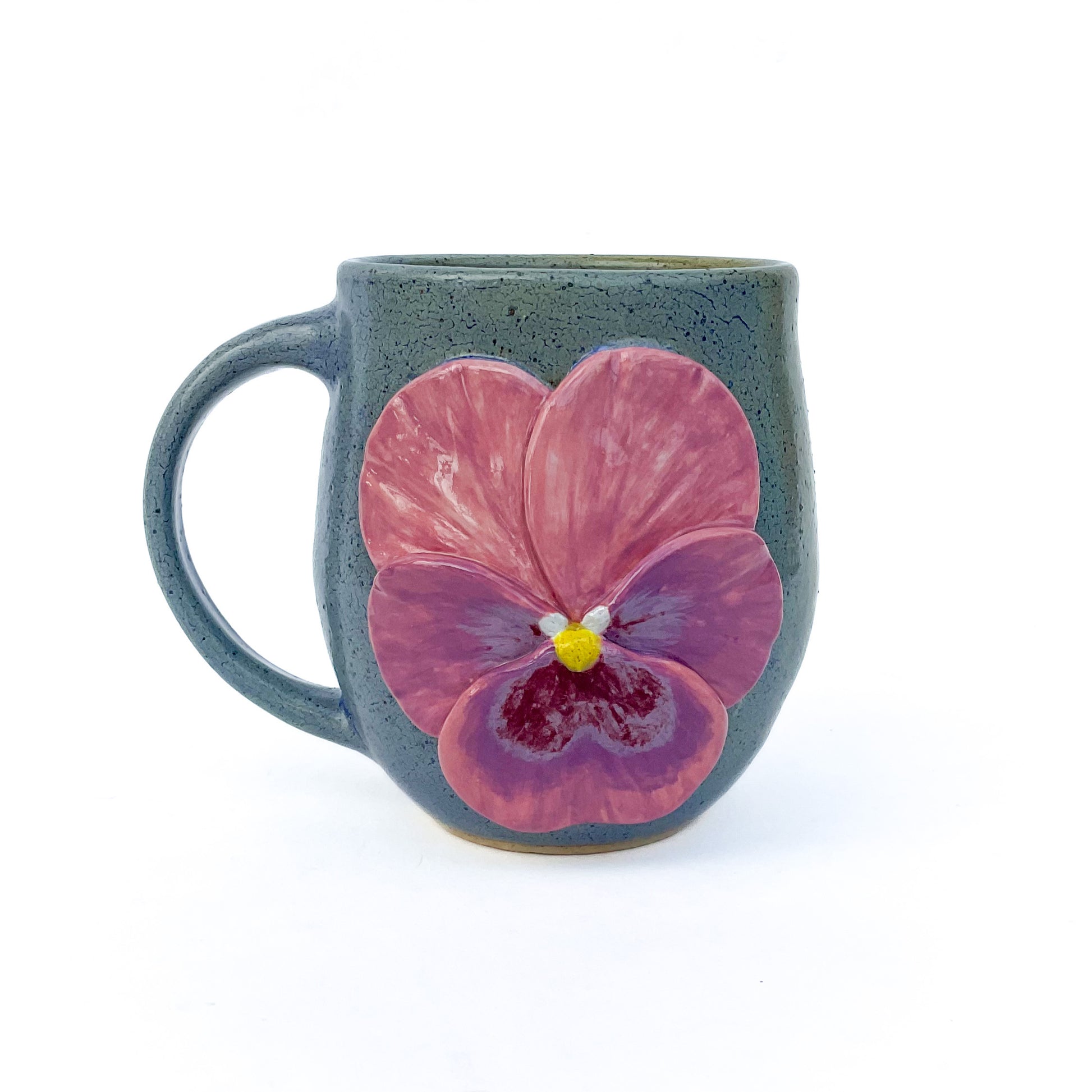 Pansy Hand Sculpted Stoneware Mug 16 oz
