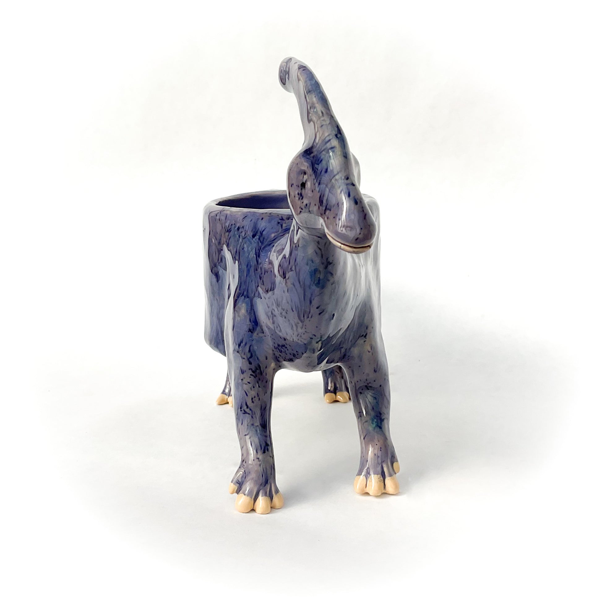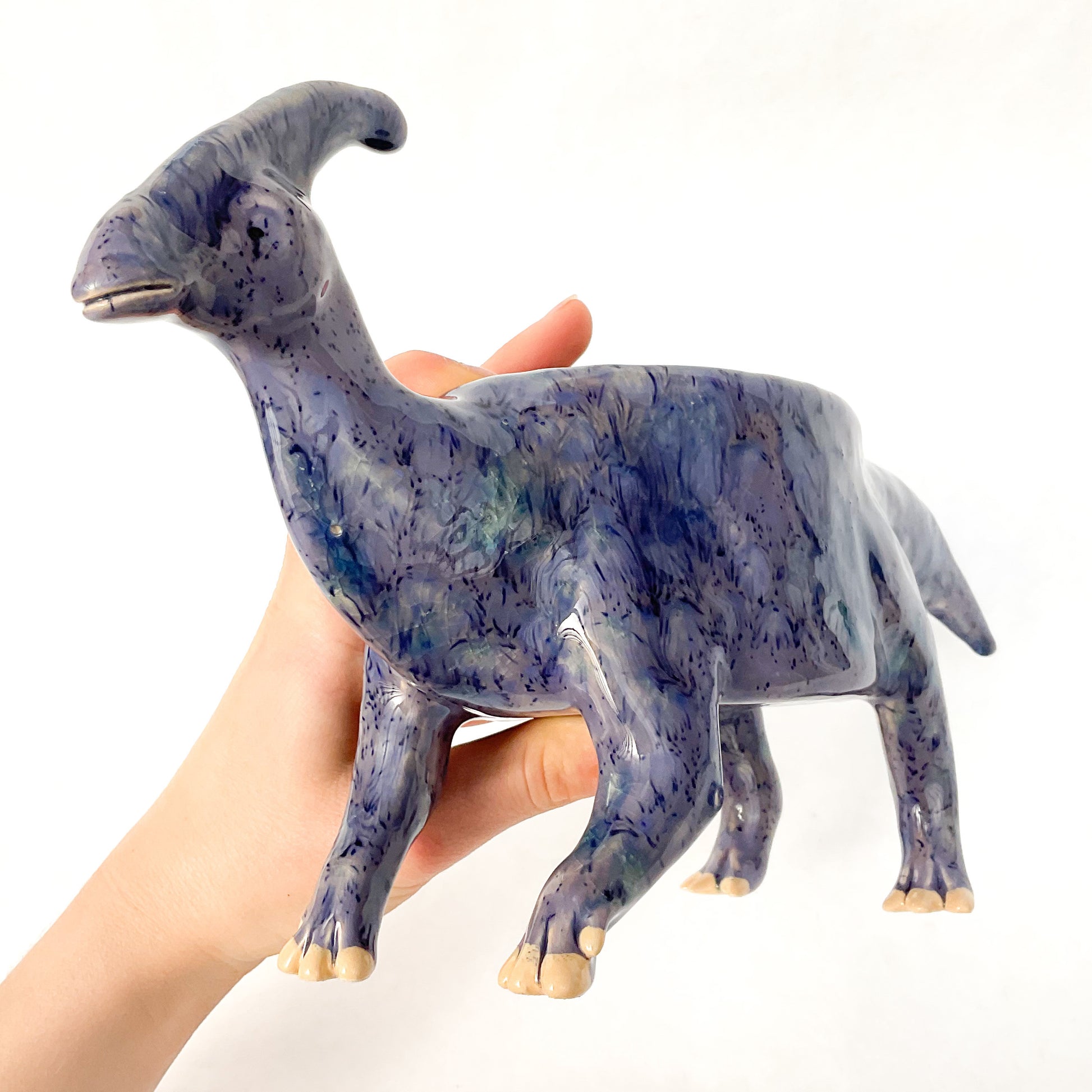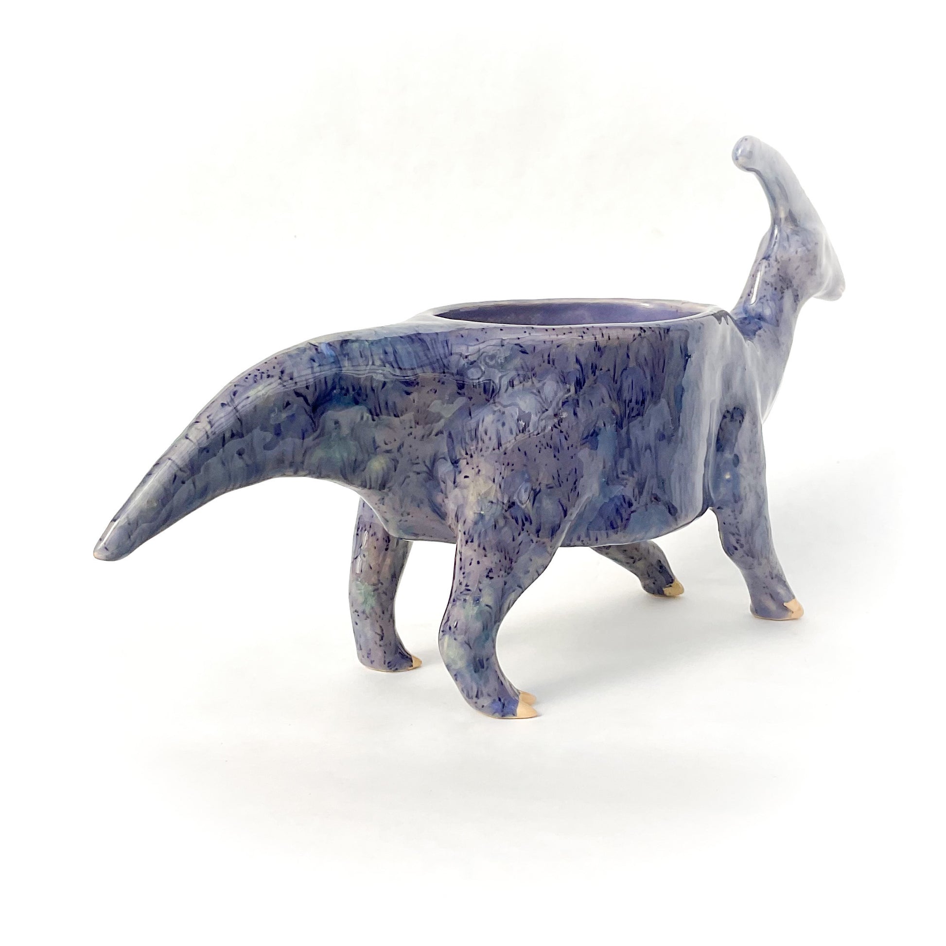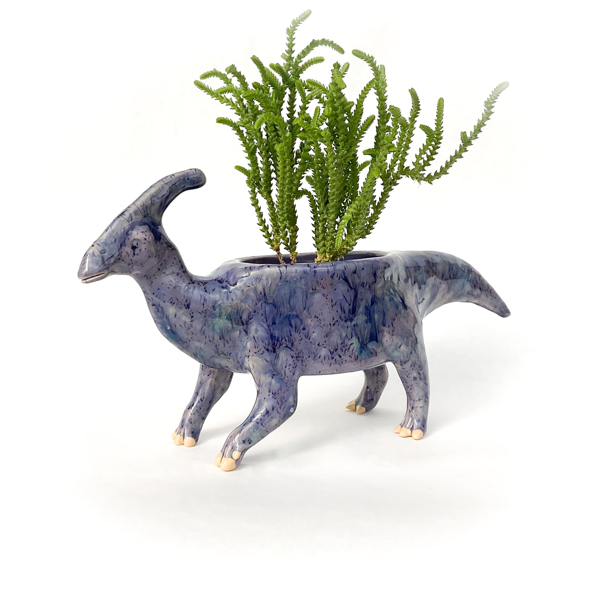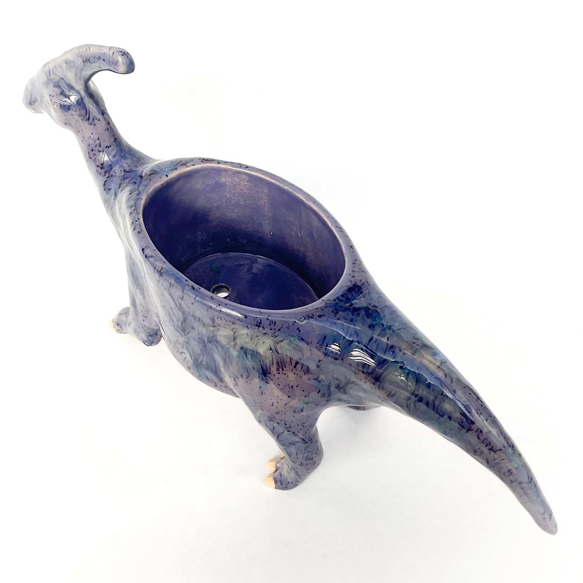 A ceramic Parasaurolophus planter to pot up your favorite plant or set out as a fun candy dish!