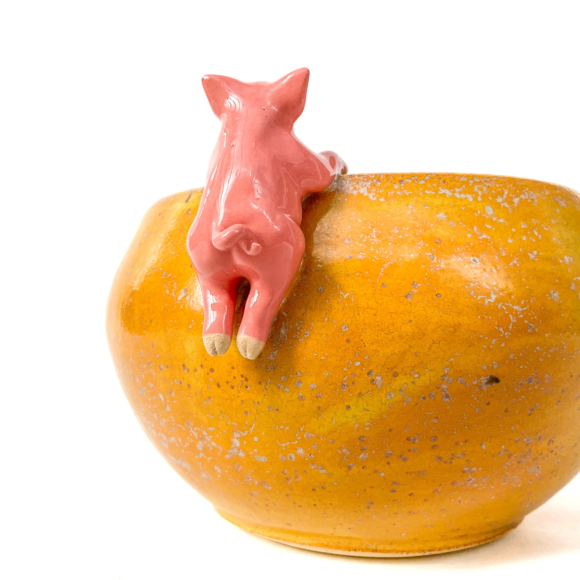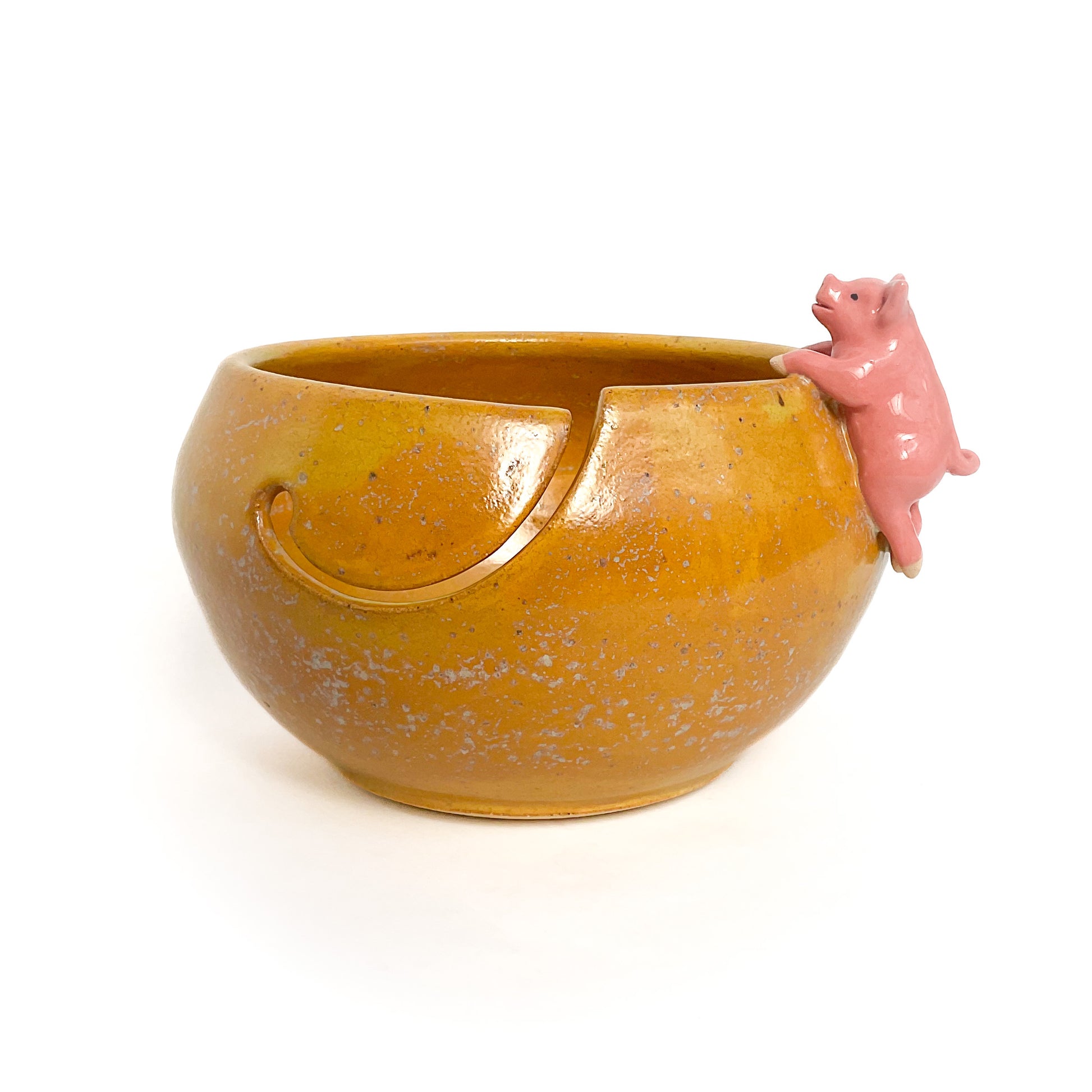 A one-of-a-kind stoneware clay yarn bowl with a special hand sculpted addition!