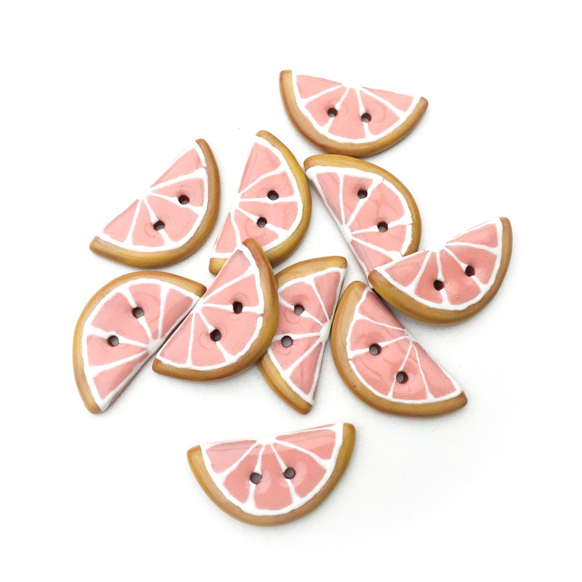 These pink grapefruit slice buttons are bright and glossy. Sure to add a unique & sweet addition to your handwork!