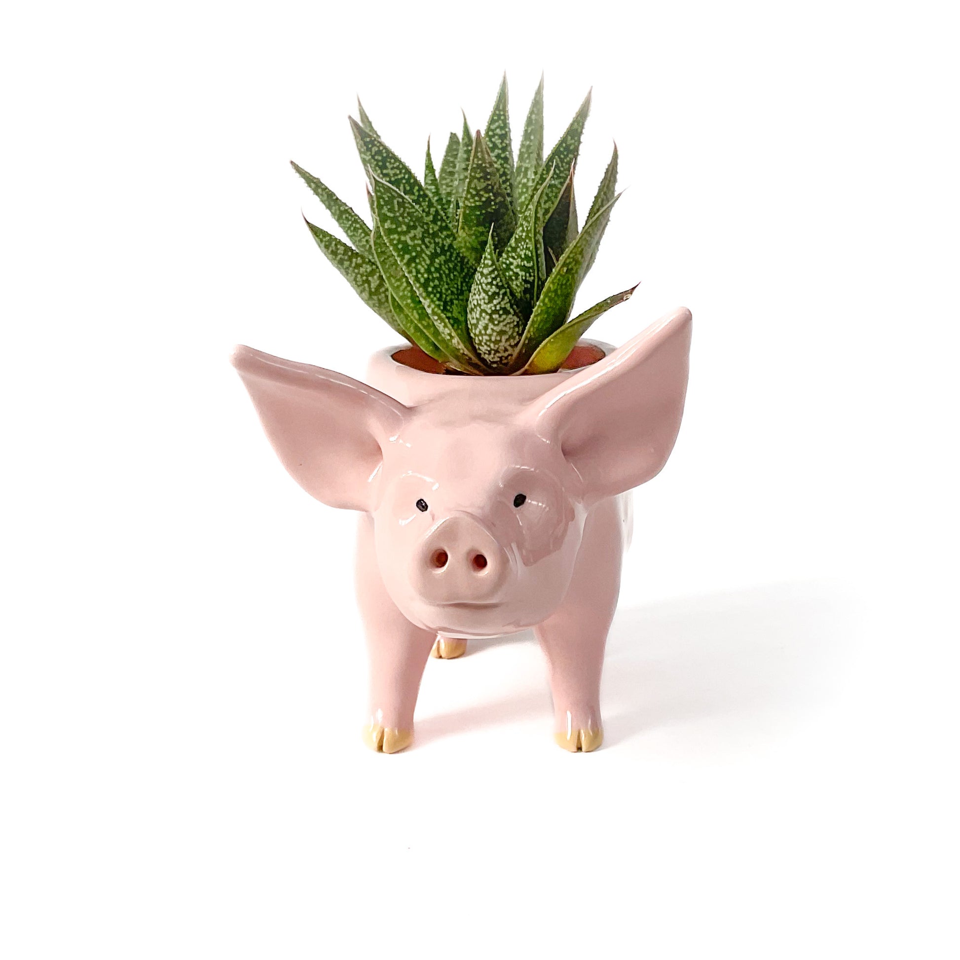 A cute little ceramic pig planter to pot up your favorite succulent or use as a dish for sweet little candies!