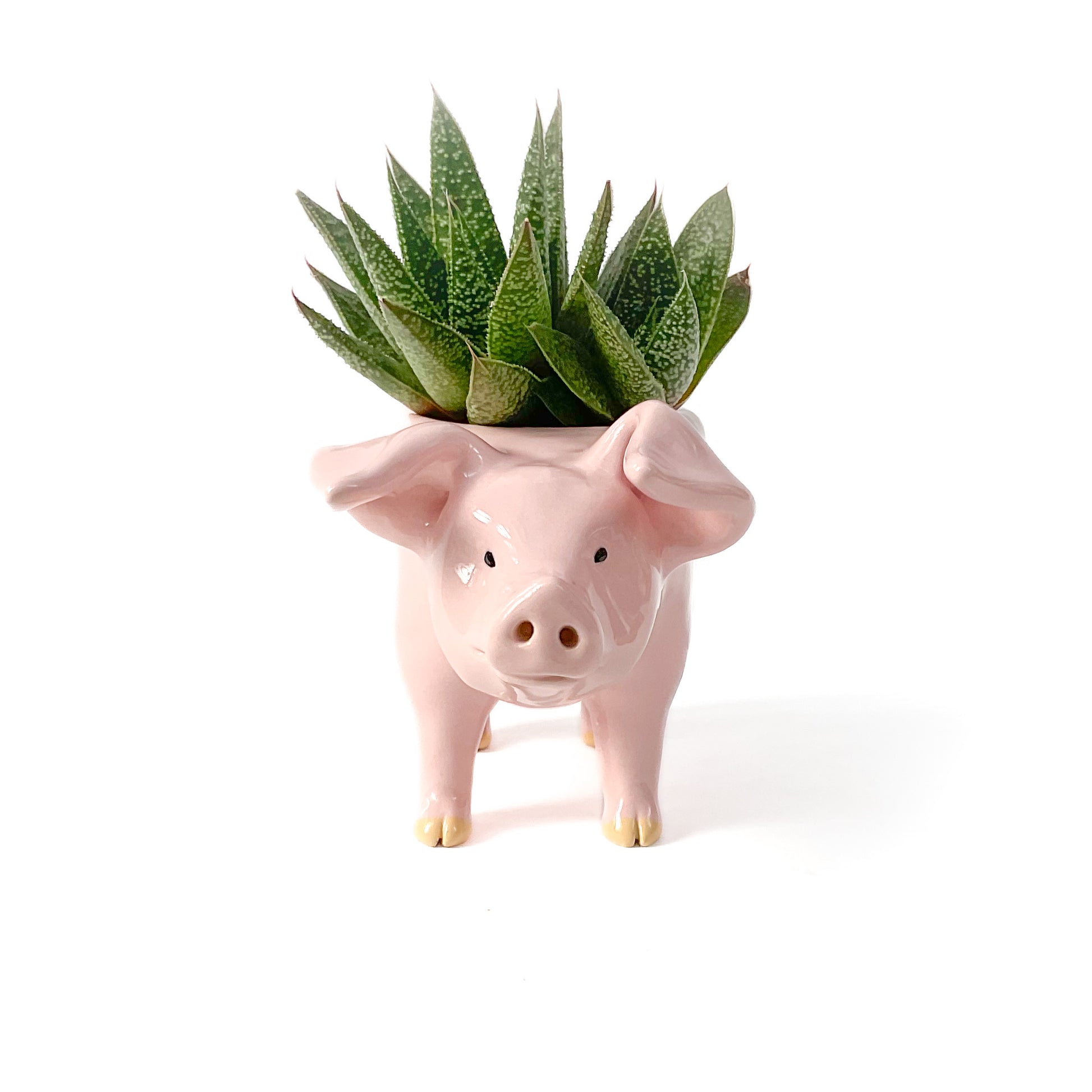 A cute little ceramic pig planter to pot up your favorite succulent or use as a dish for sweet little candies!