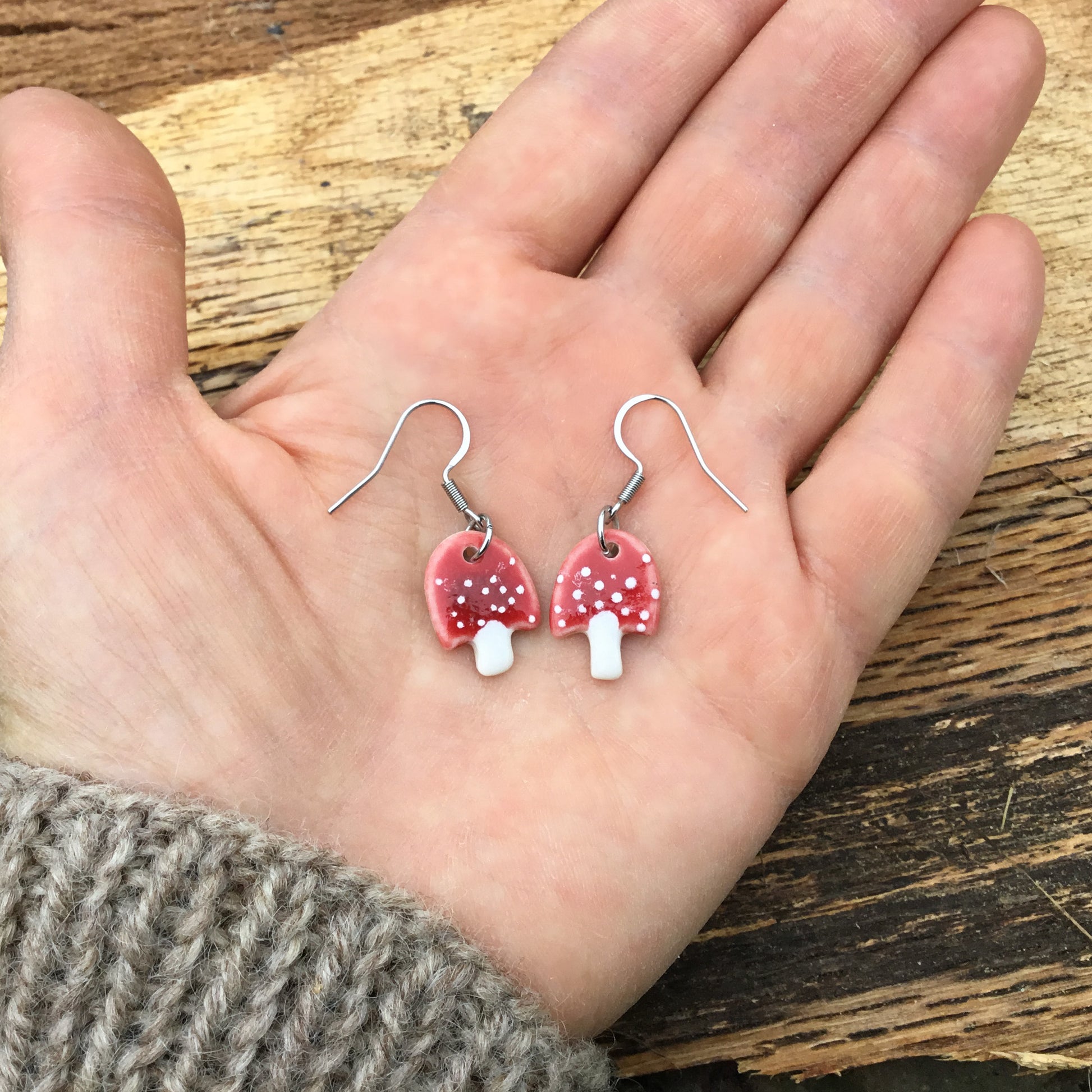 A fun pair of hand painted earrings made of porcelain clay and non-toxic glaze.