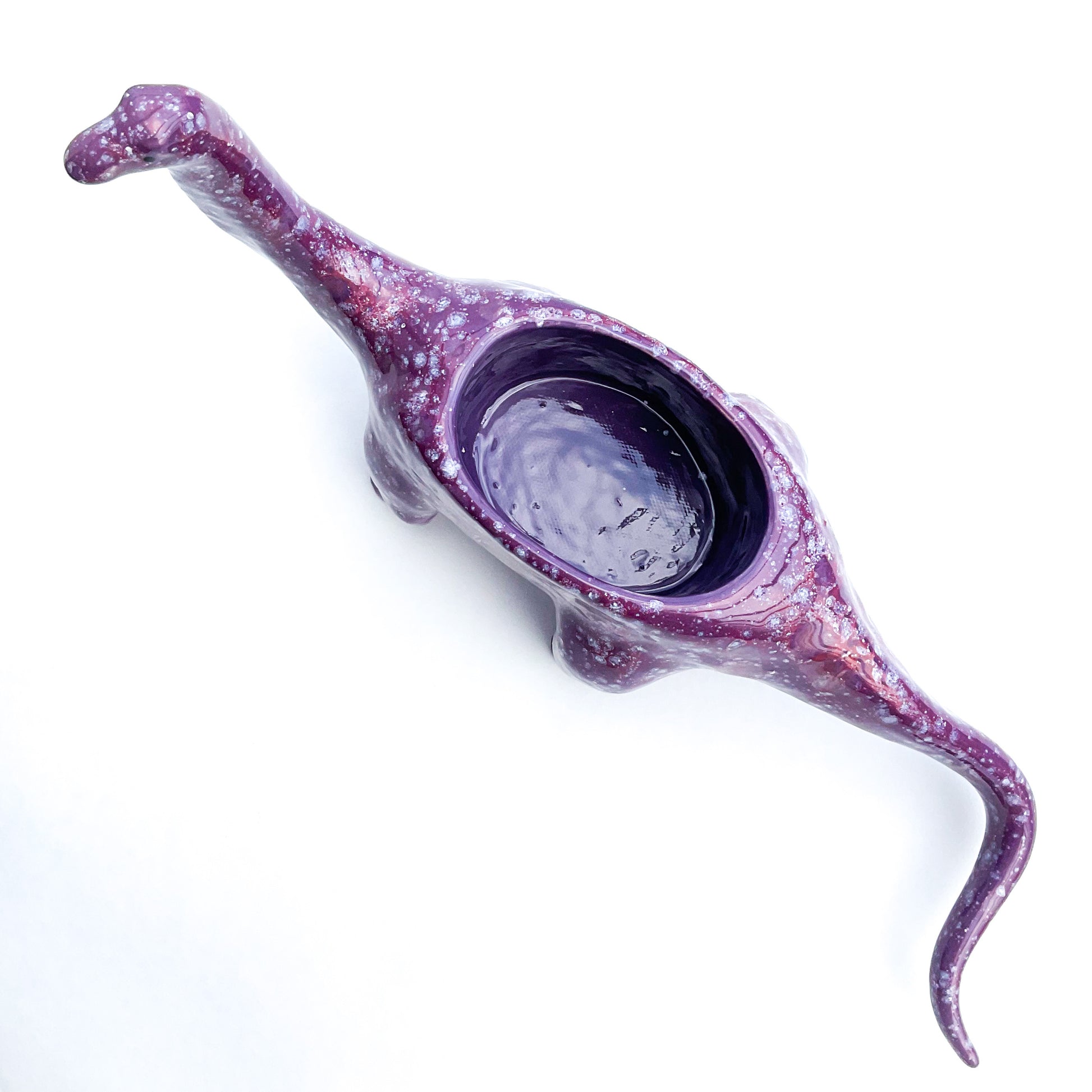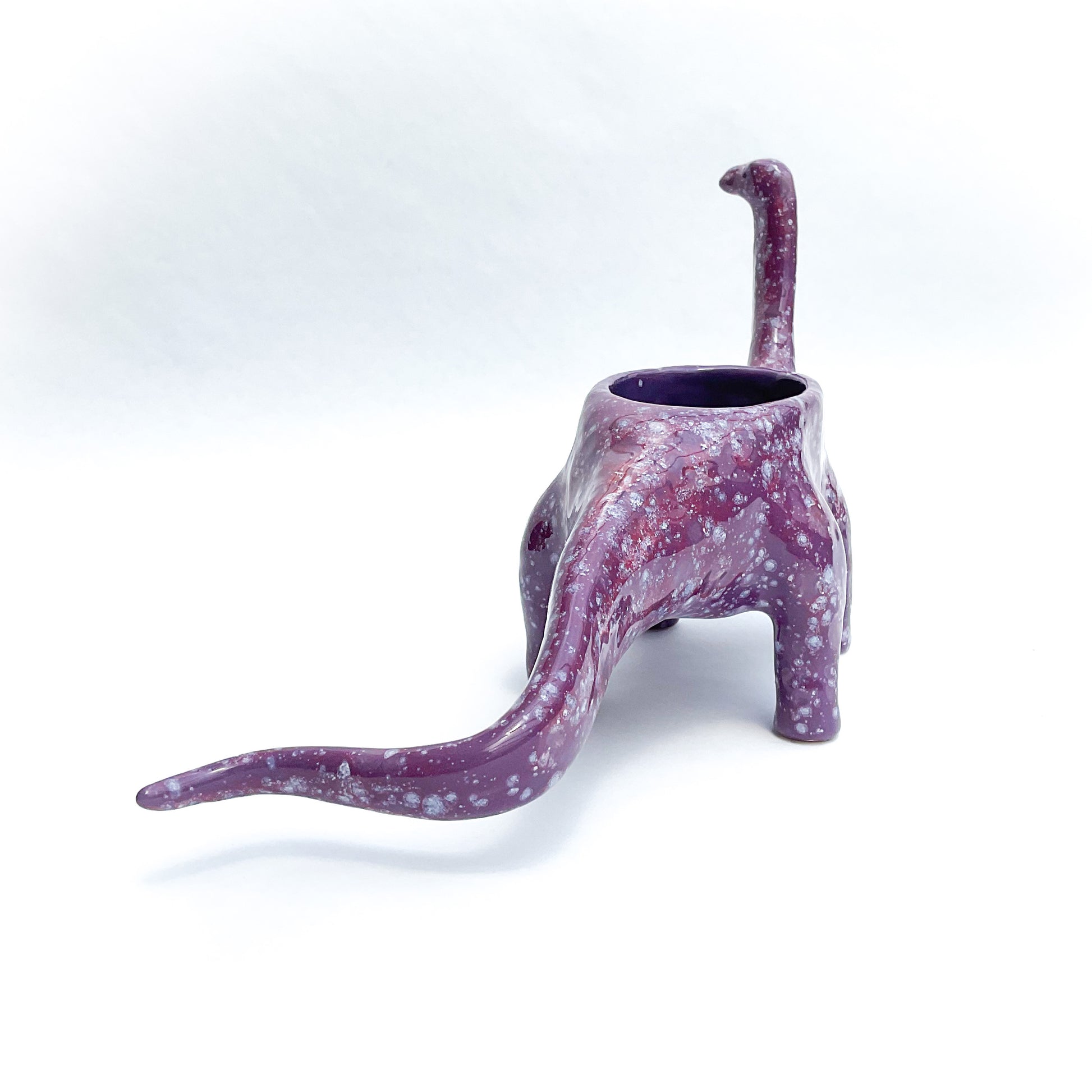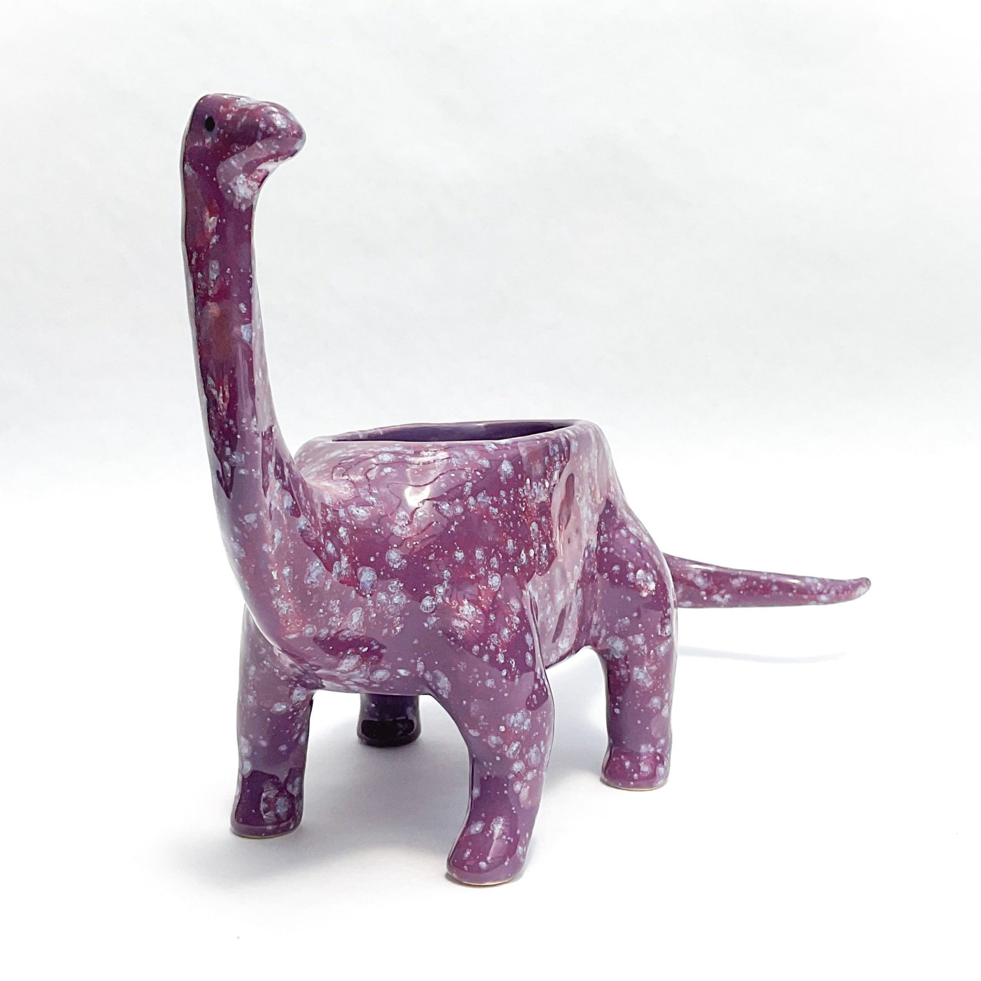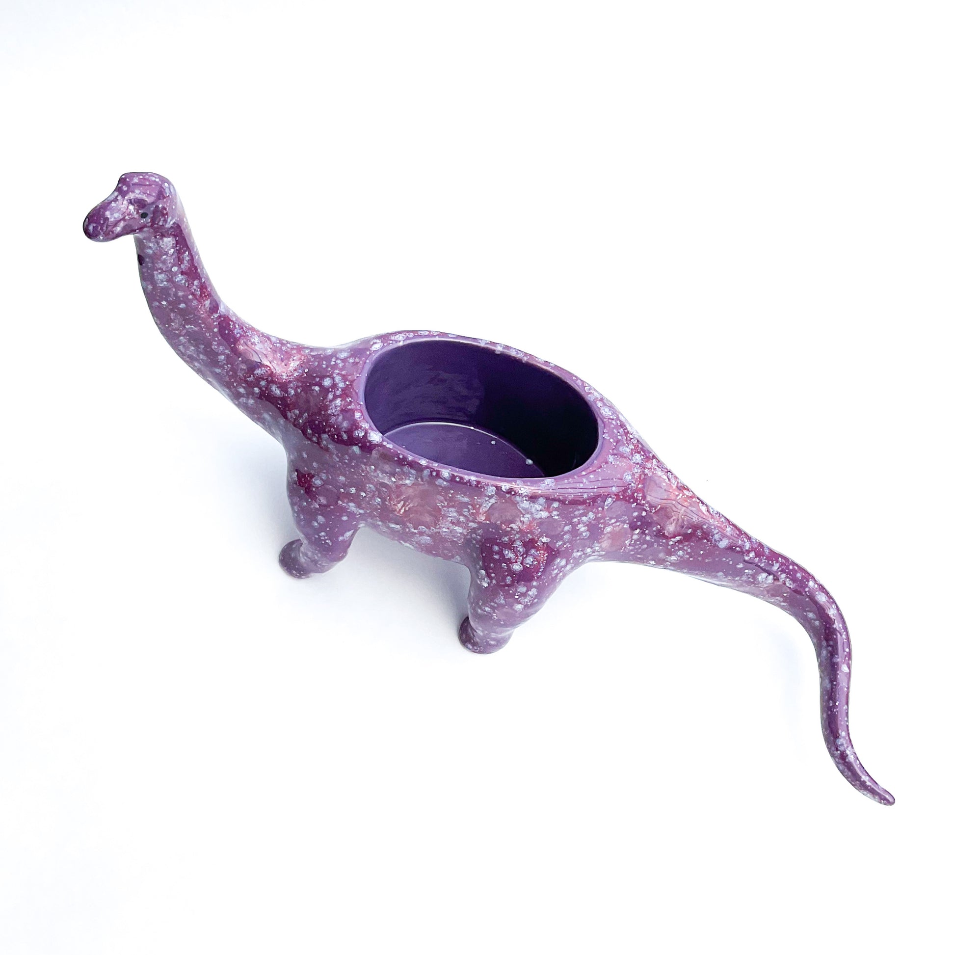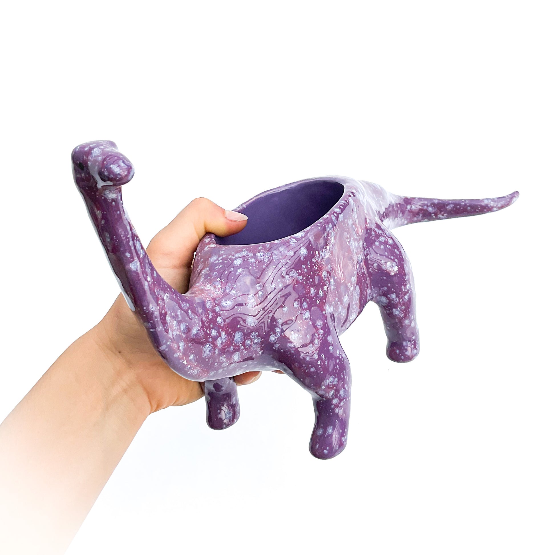 A ceramic Brontosaurus planter to pot up your favorite plant or set out as a fun candy dish or use as a business card holder!