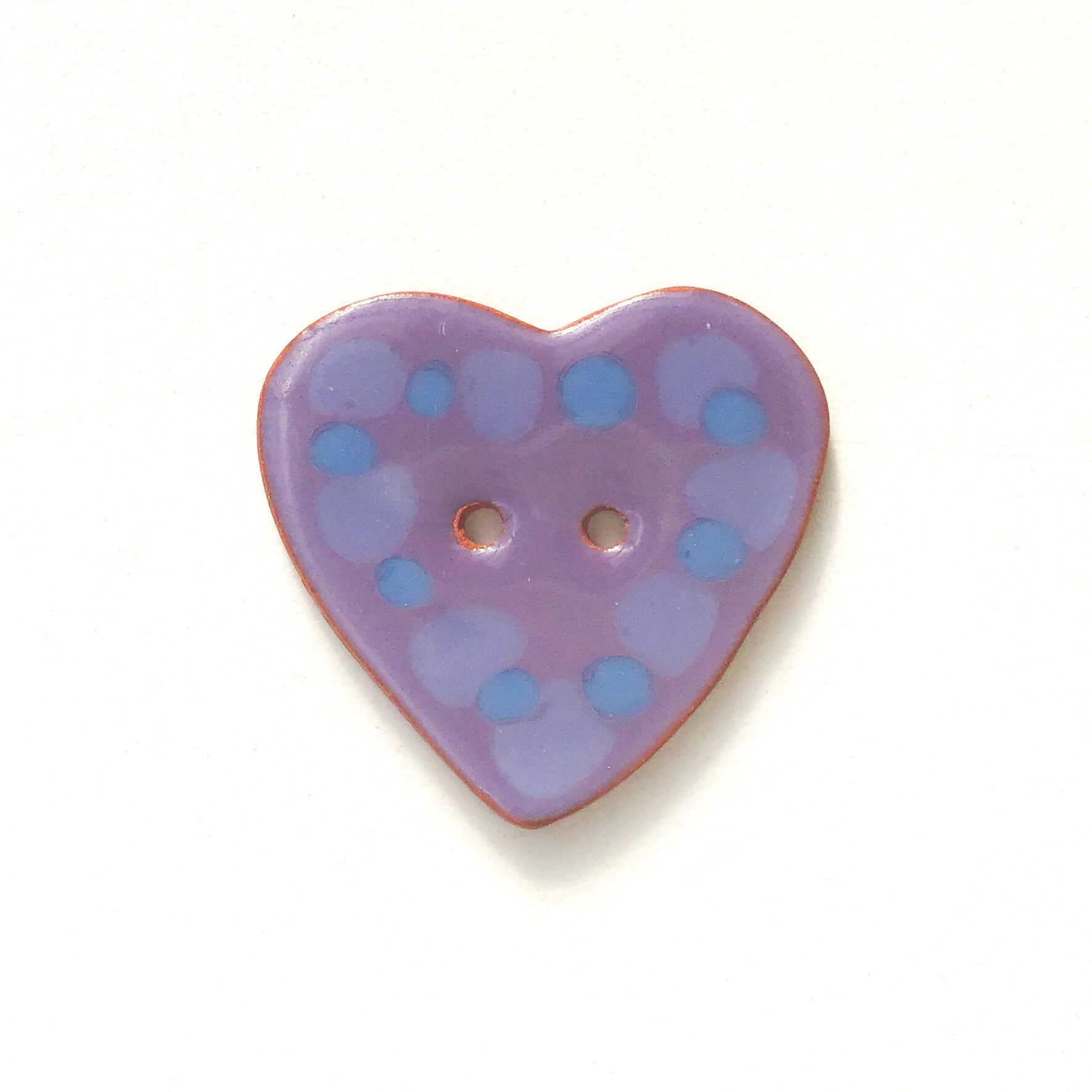 Purple Dotted Heart Button - Ceramic Heart Button - Purple Heart - 1 1/4"