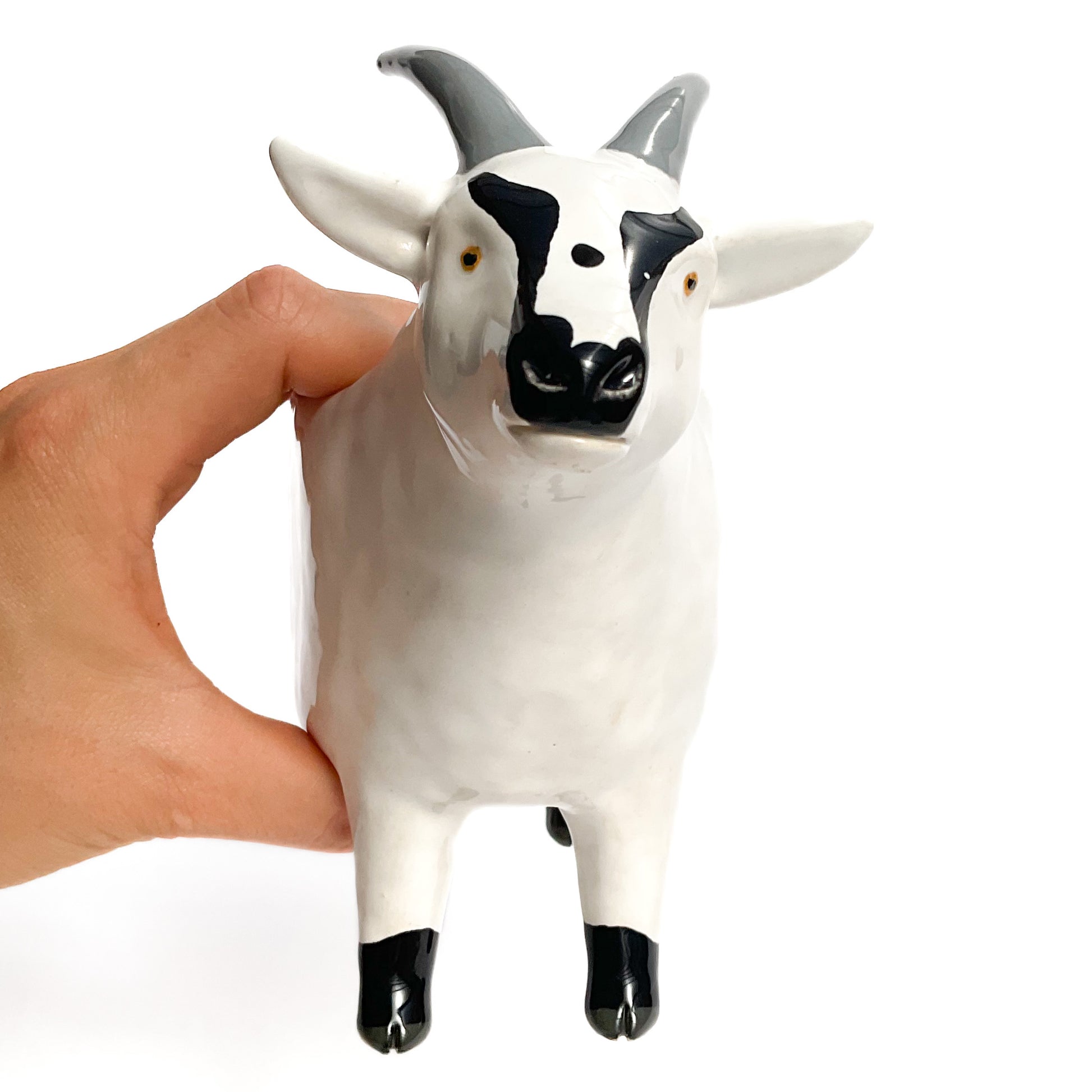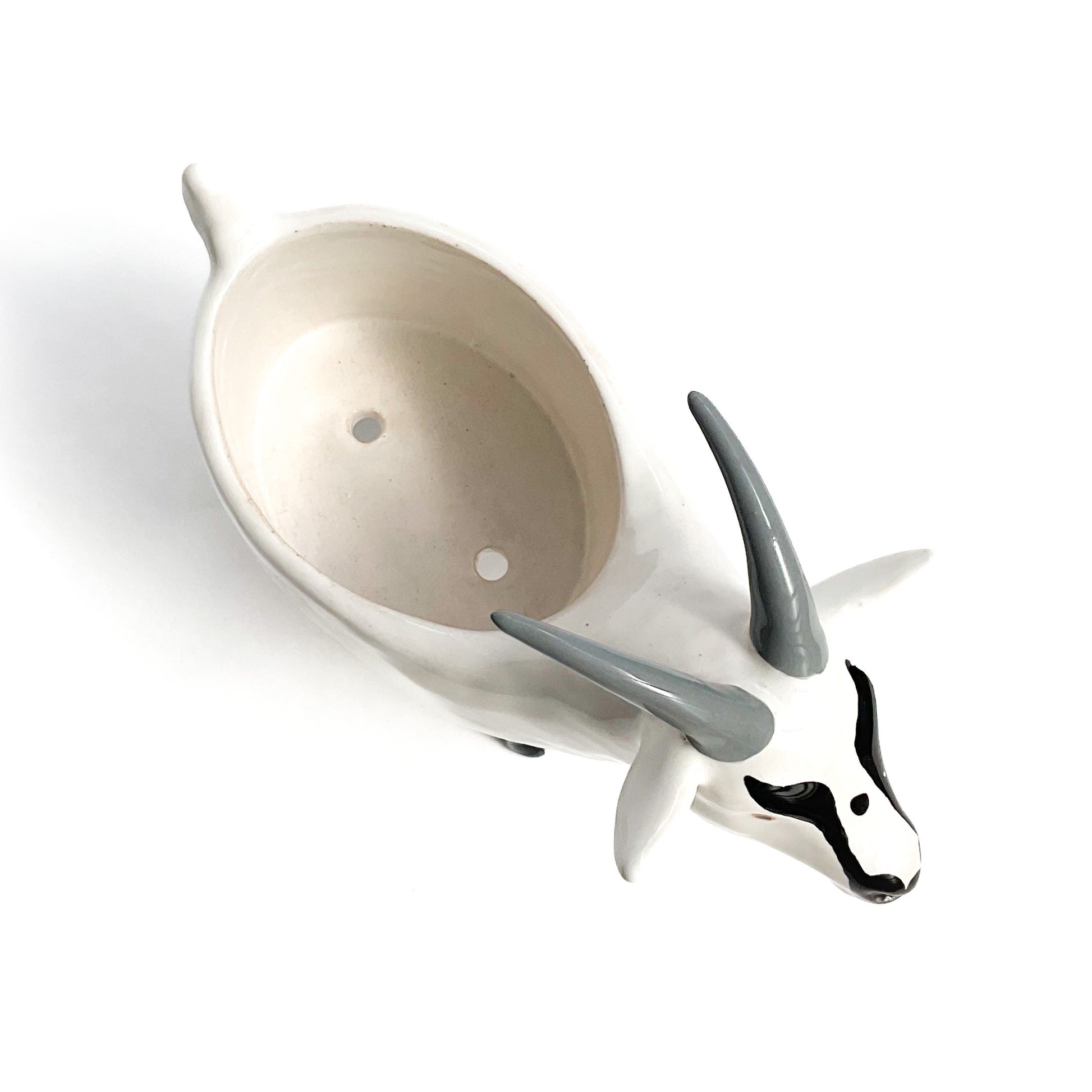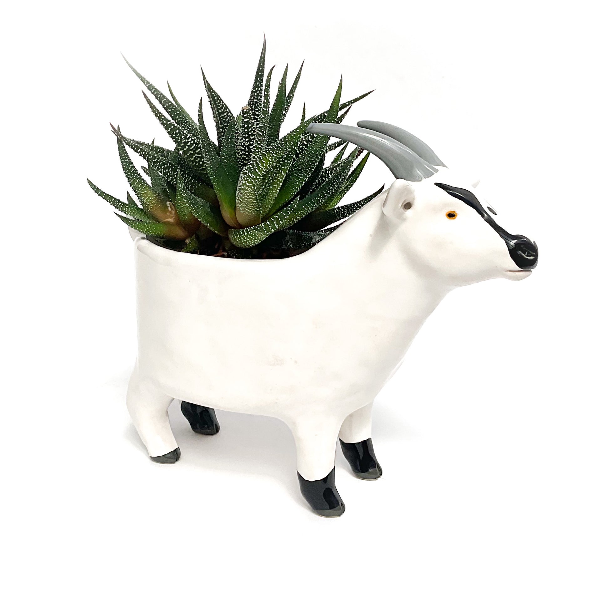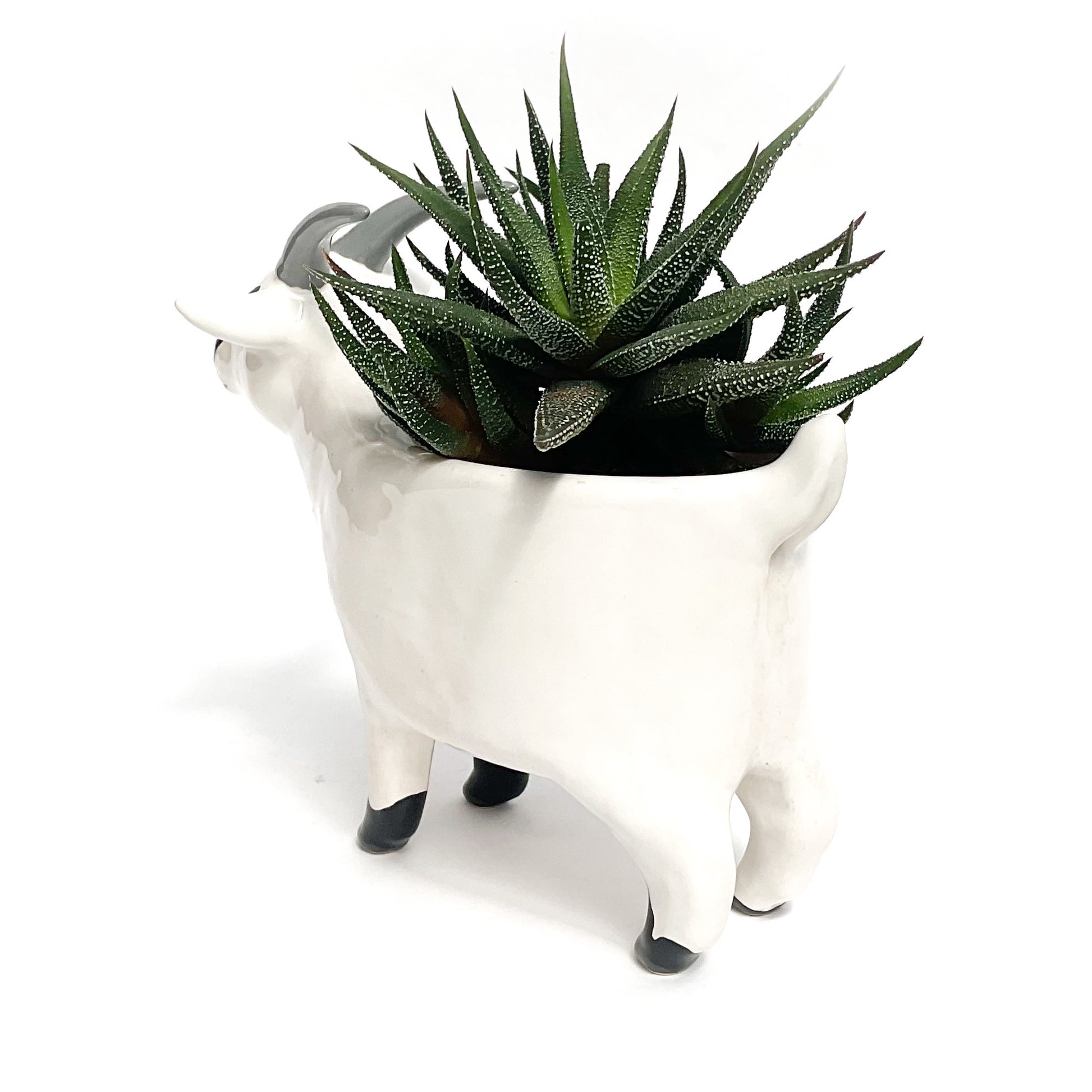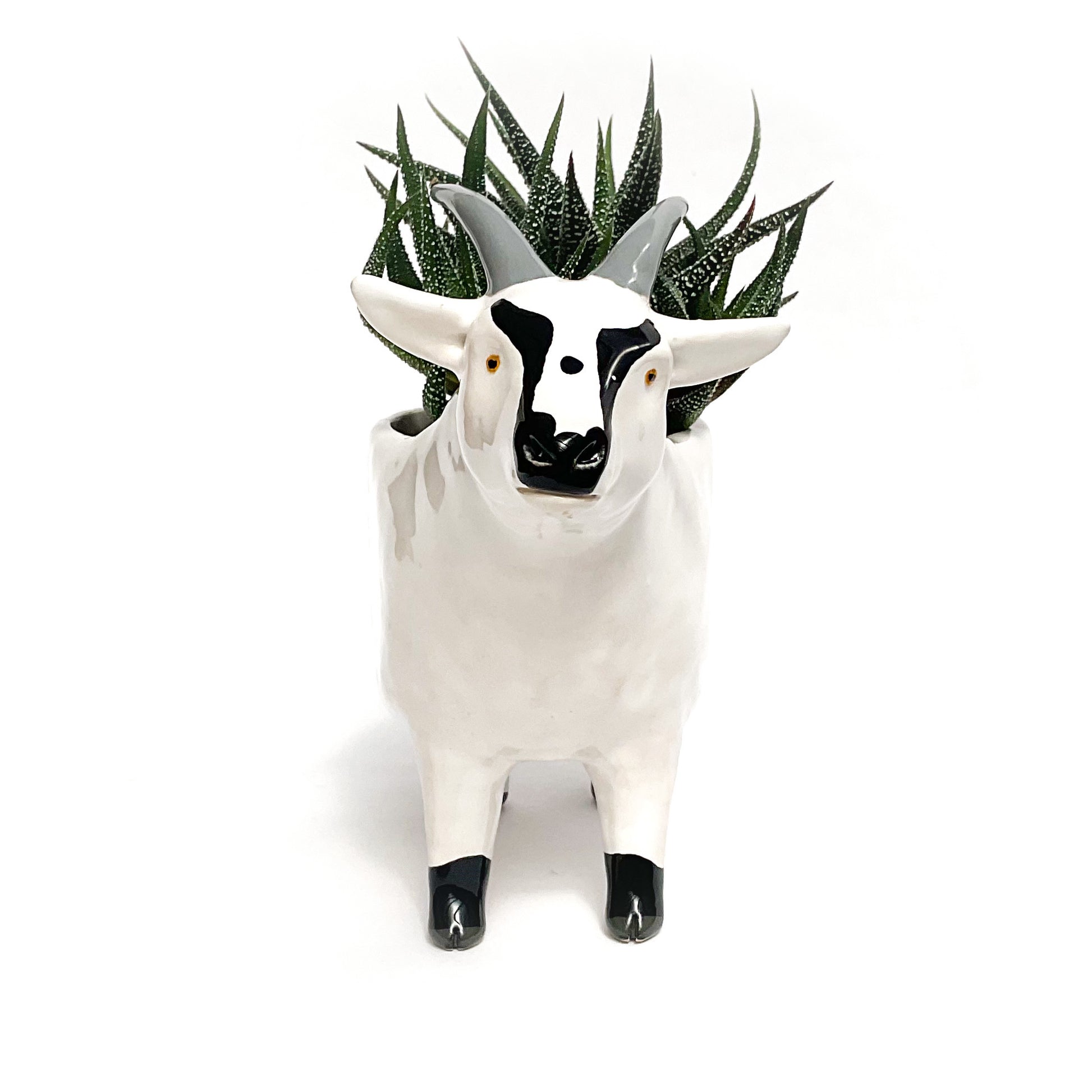 A little ceramic pygmy goat planter to pot up your favorite succulent.