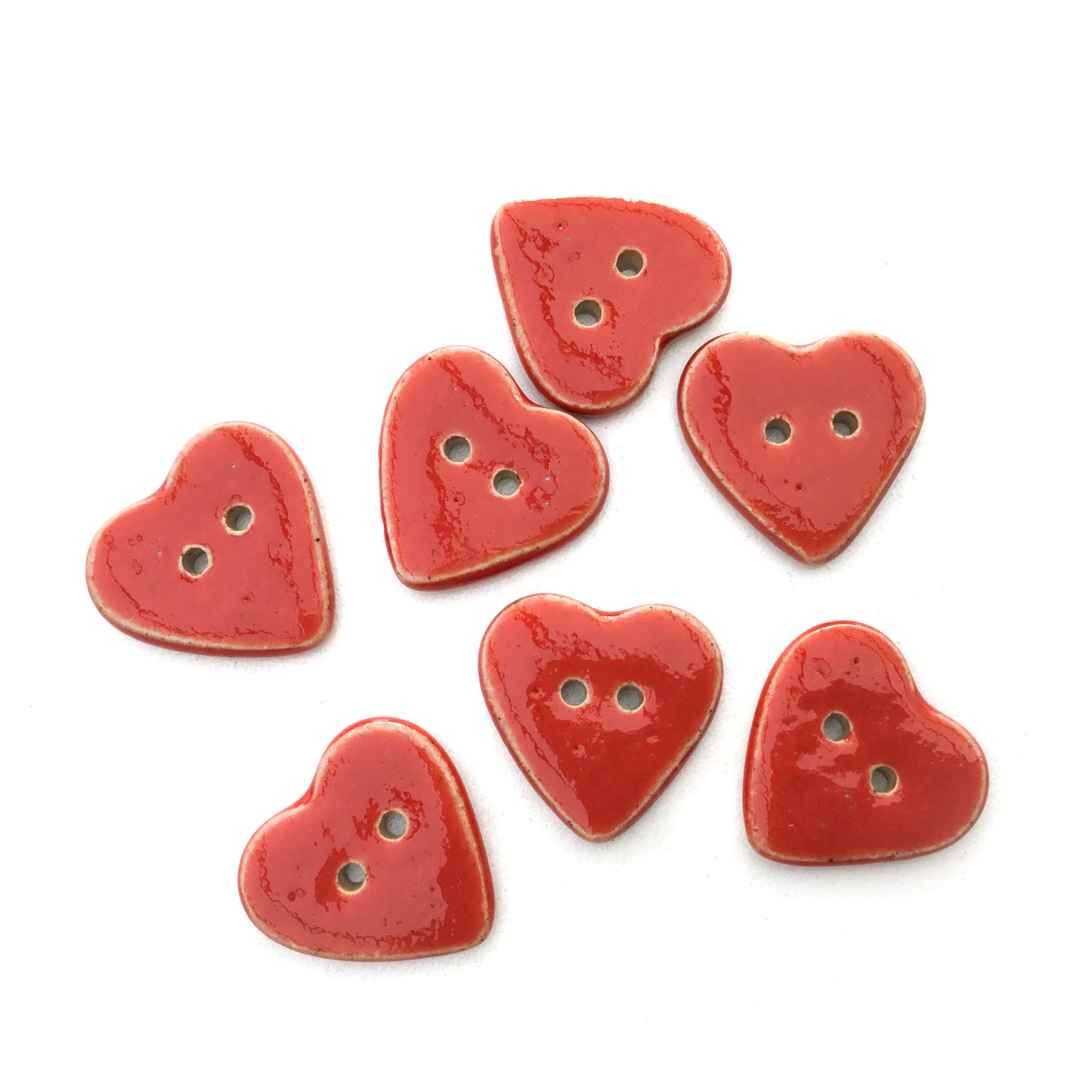 These ceramic heart buttons are stunning in a bright shade of red. The sides have been glazed giving each one a little added depth to their appearance. They'd make a beautiful addition to your handwork!