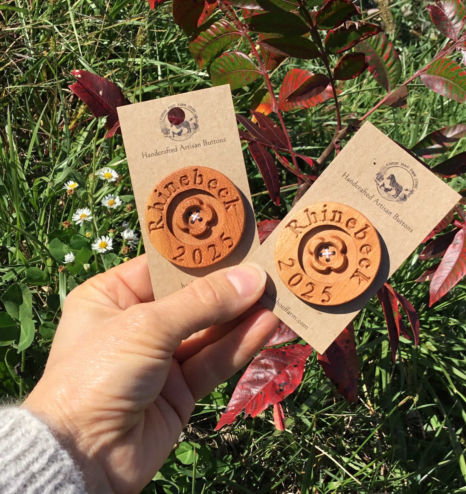 These Rhinebeck 2025 'Forest Flower' buttons are made from cherry wood harvested on our family farm in Ohio using sustainable techniques. They're the perfect size to sew onto a tote to show your love for this wonderful event!
