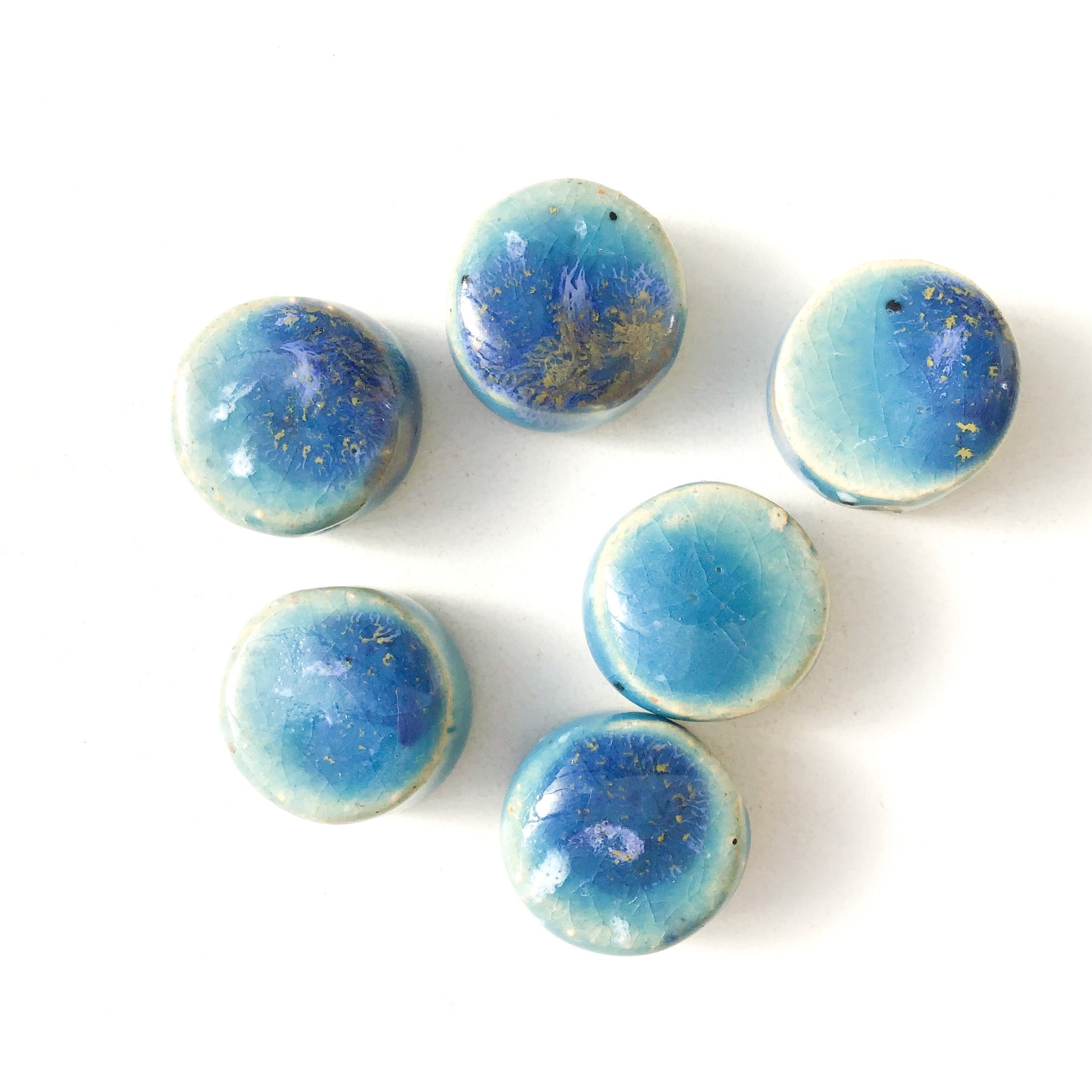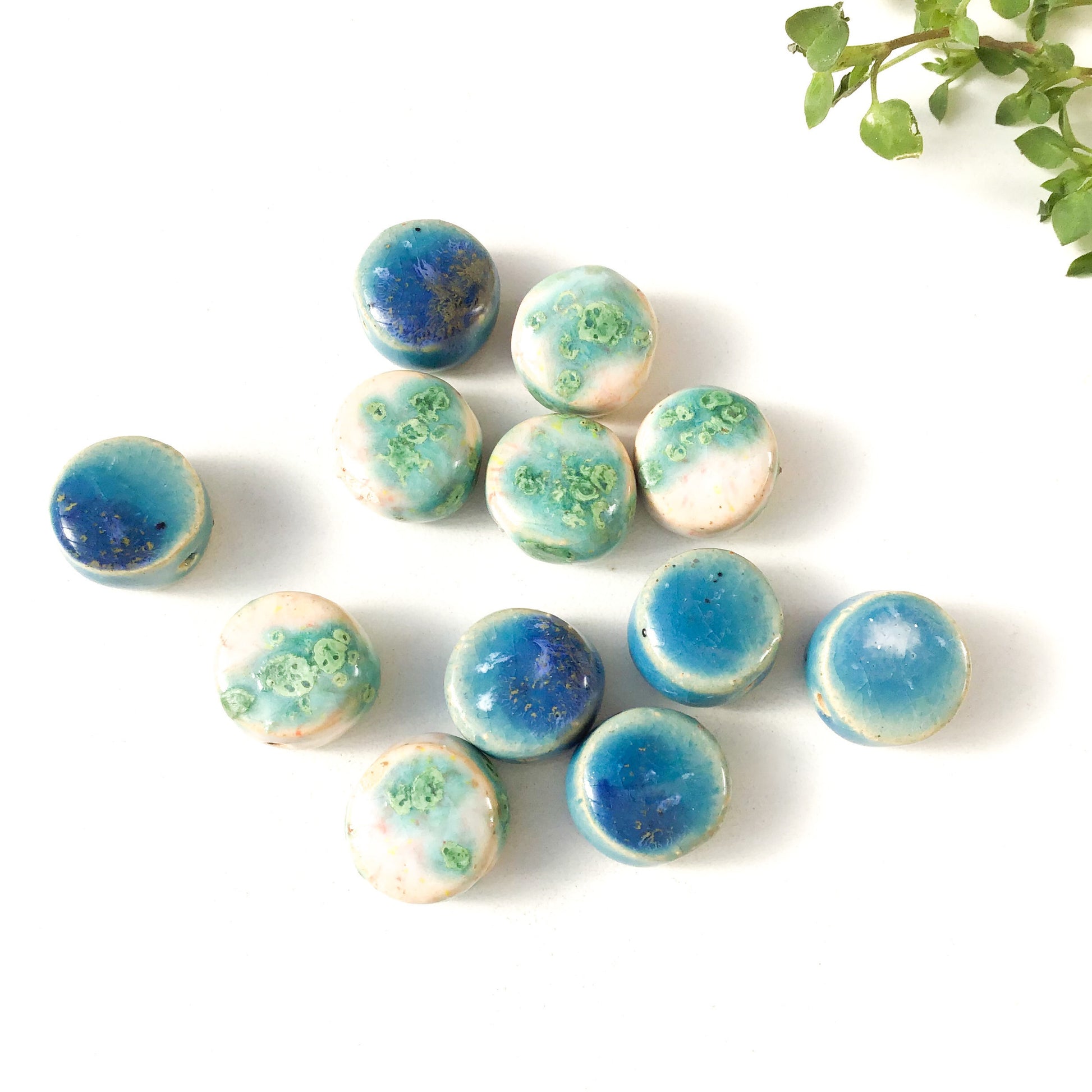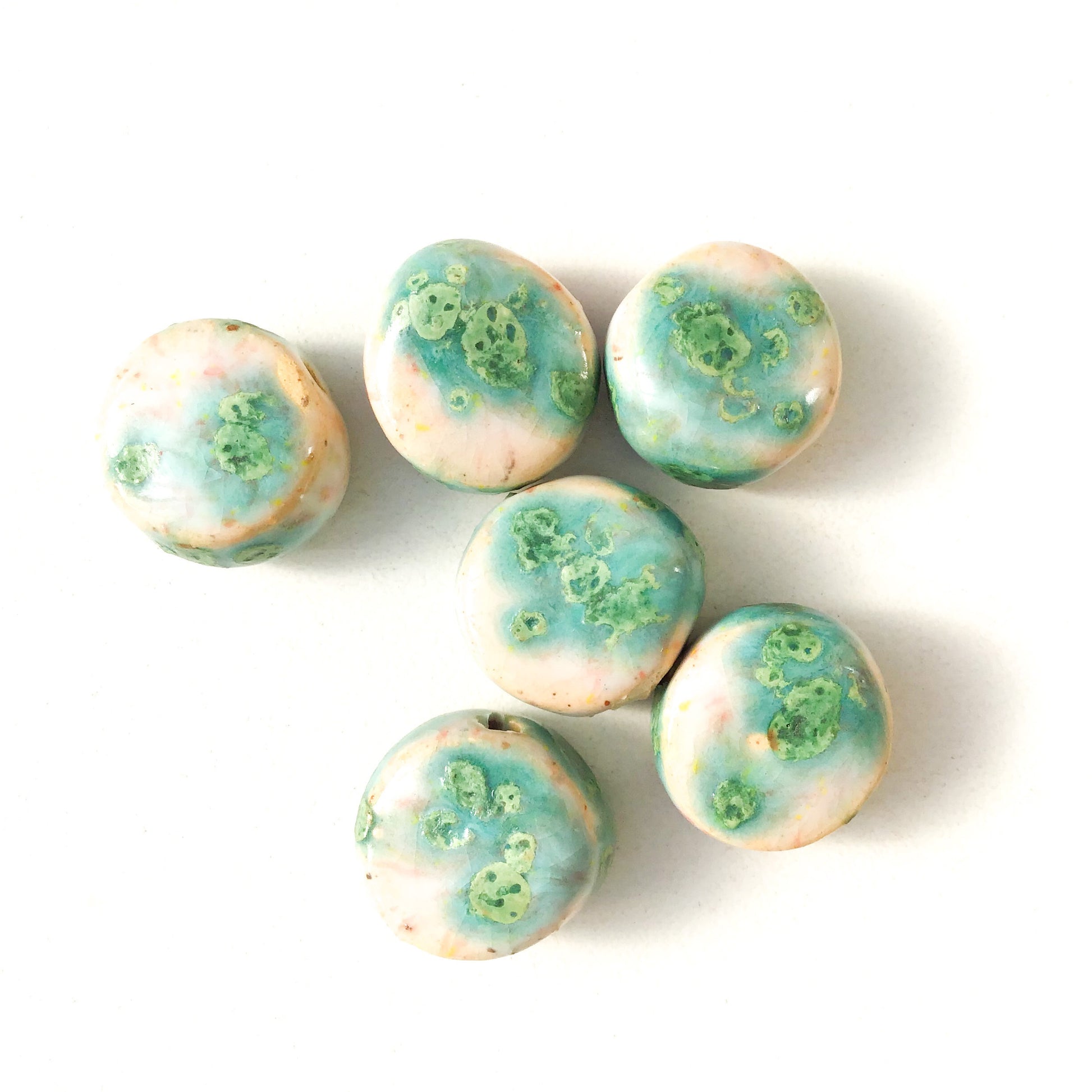 Round Handmade Clay Beads - Turquoise, White, and Ocean Blue Ceramic Beads - 9/16" x 1/4"
