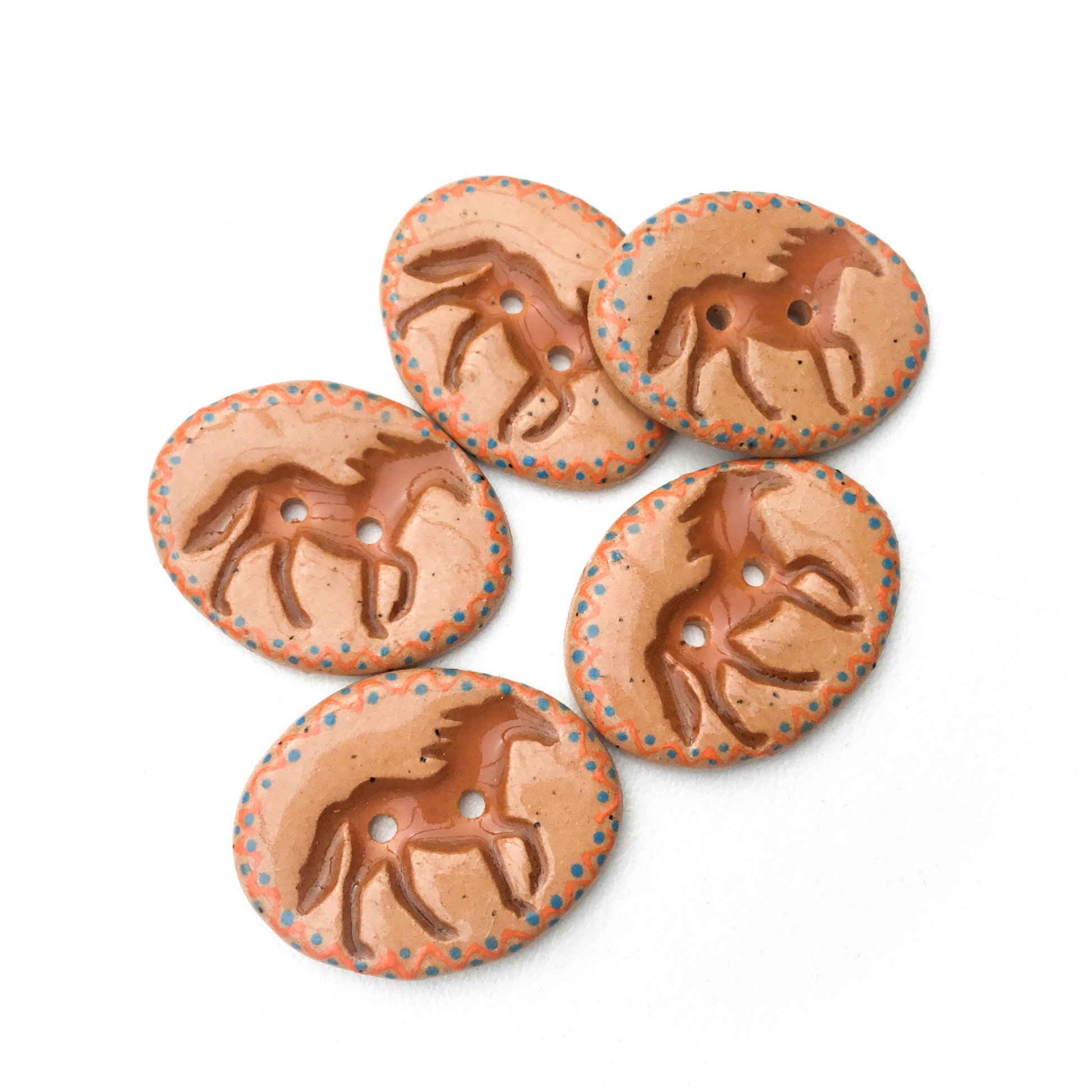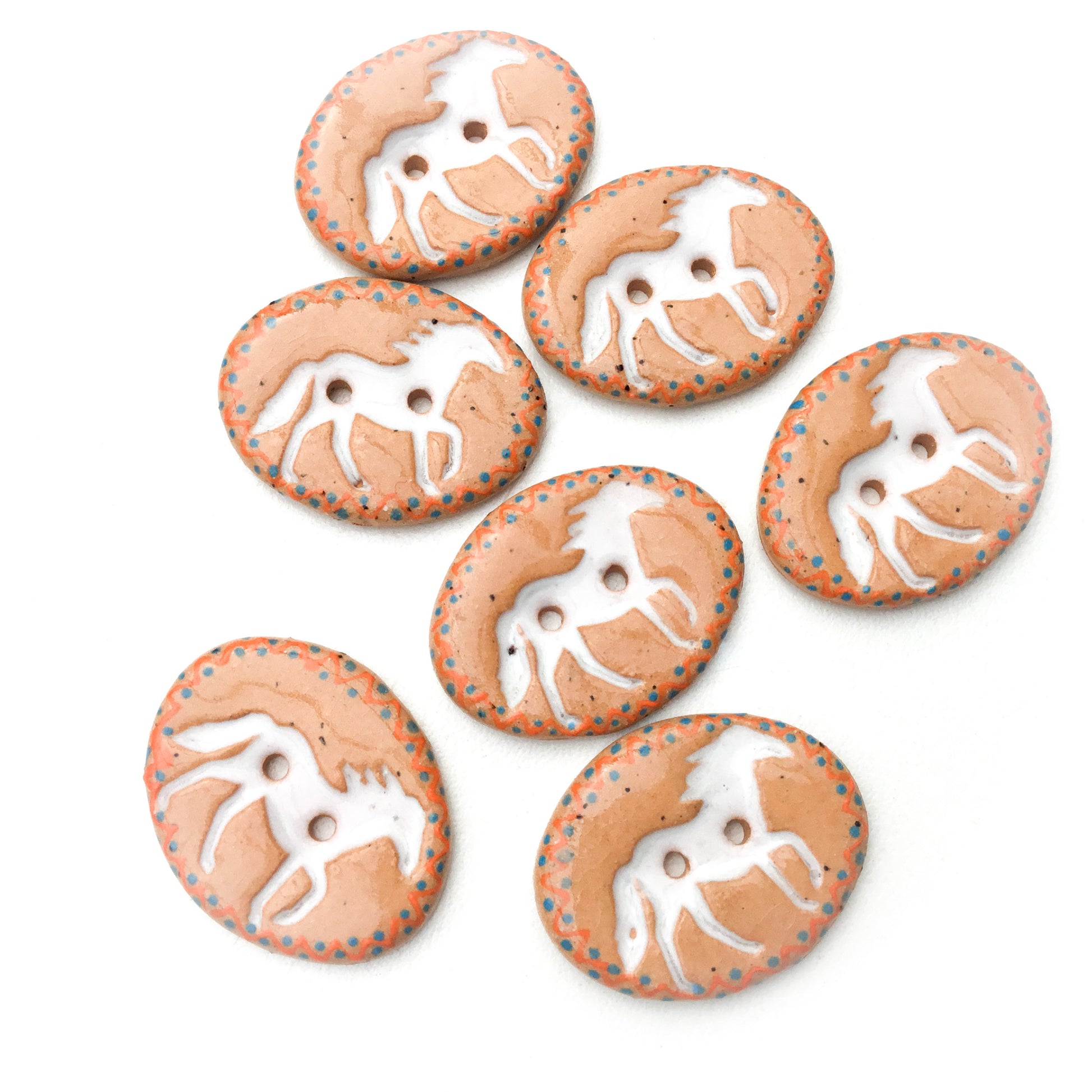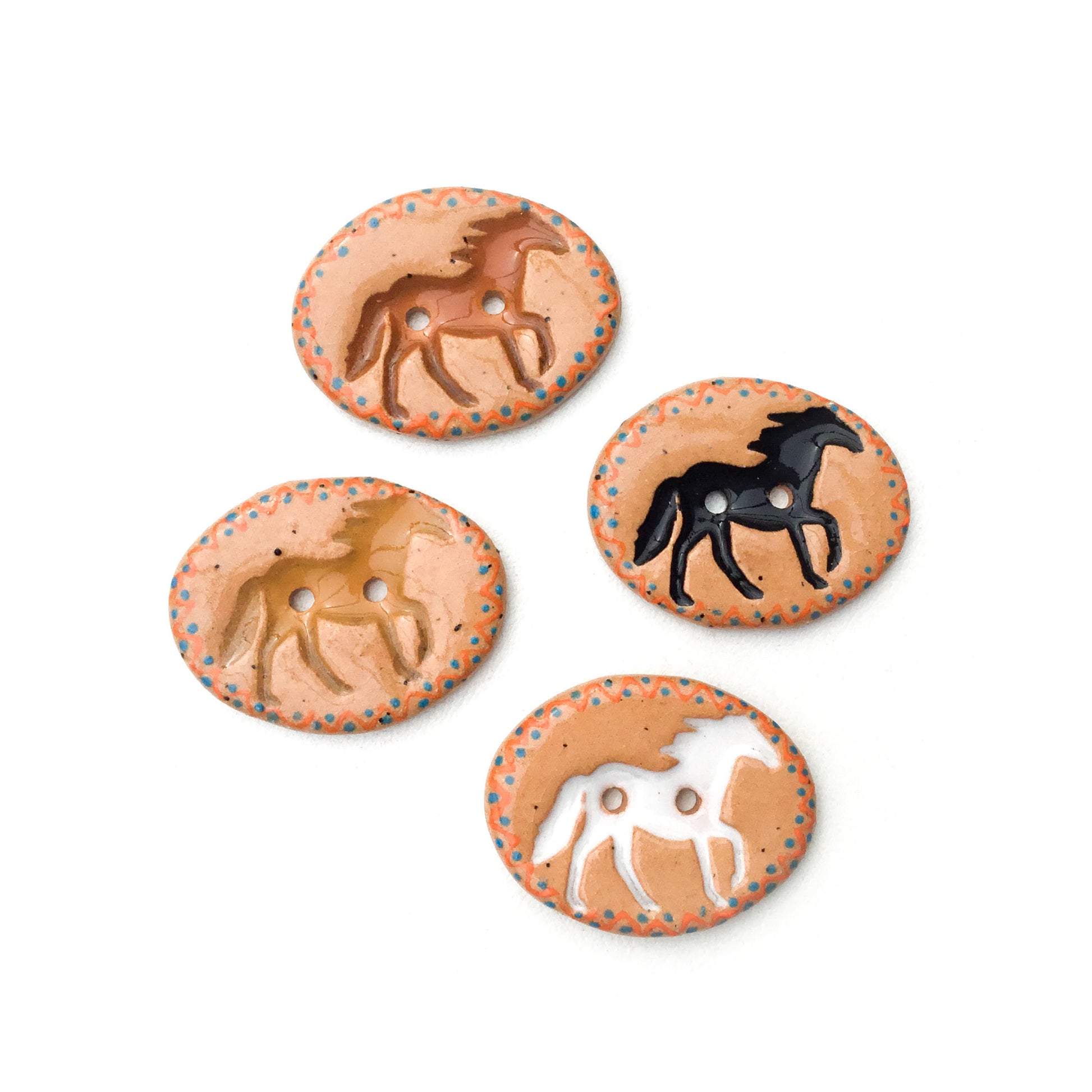 'Running Horses' Ceramic Buttons 1-1/16" x 13/16"